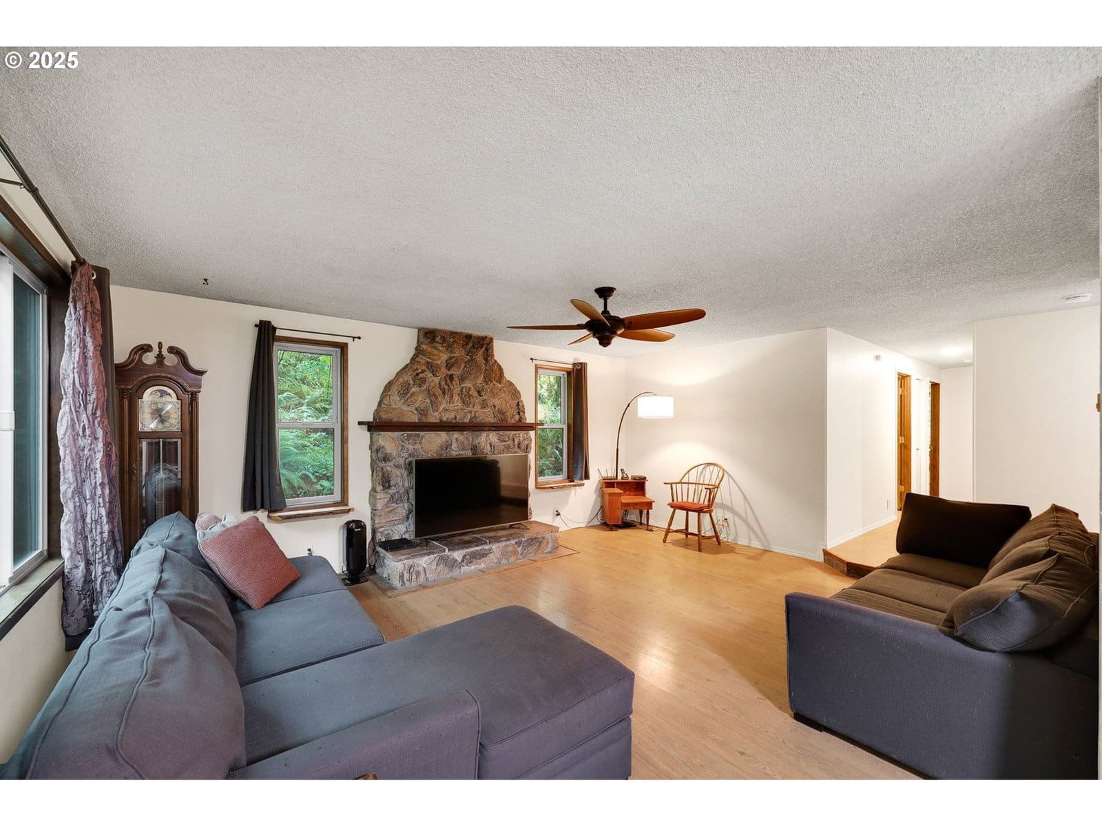 Welcome to this beautifully updated 3-bedroom, 2-bathroom home offering over 1,200 square feet of comfortable living space on a picturesque 0.35-acre treed lot. Located in a welcoming community, this home combines country charm with modern upgrades, including newer windows and corrected insulation in the crawlspace for improved efficiency and comfort. The spacious living room features a cozy wood-burning fireplace and efficient ductless heating and cooling. The open-concept kitchen and dining area includes a generous breakfast bar/peninsula, freestanding range and refrigerator, built-in microwave, and dishwasher – perfect for everyday living and entertaining. Enjoy the convenience of a dedicated laundry room with a sink and extra storage. Throughout most of the home, you'll find updated flooring and modernized bathrooms. The large primary suite offers a private ensuite bath and plenty of space to relax. Outside, enjoy a covered patio, fire pit, toolshed, and a well-maintained lawn. There's ample parking with an attached 2-car garage, carport, and space for an RV or boat – complete with a 30-amp hookup. Just steps from Deerhorn Park and McKenzie River access, this home offers the best of peaceful living with outdoor adventure nearby. Don’t miss this opportunity!