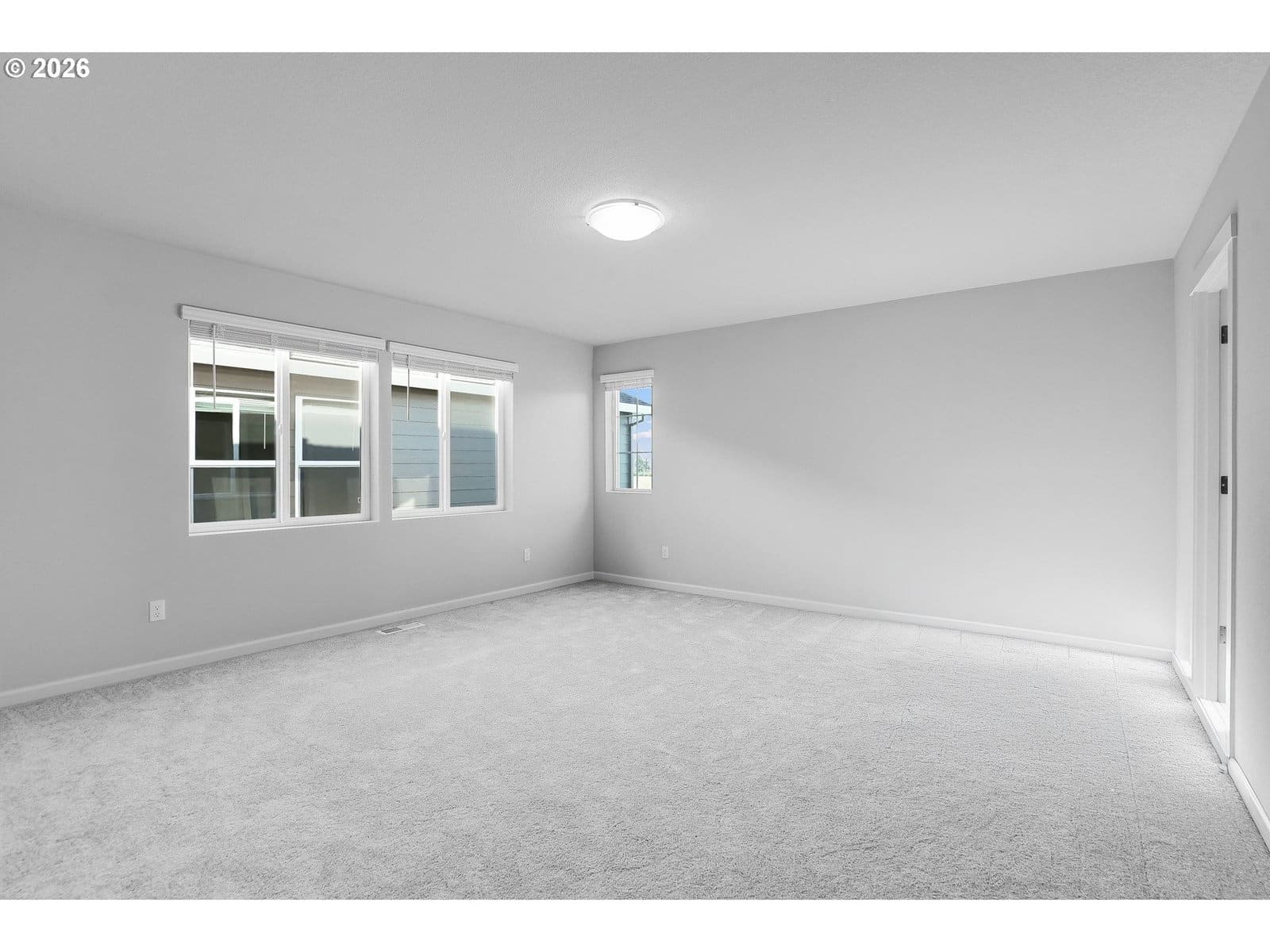 Welcome to Brynhill by Lennar and the Chambrey floorplan in beautiful North Plains. Multitasking and entertaining is made simple in this two-story 3 bedroom, 2.5 bath single-family home. An open floorplan is shared between the great room, kitchen and nook on the first level of the home. Sliding glass doors behind the nook lead to the outdoor space. All three bedrooms are located upstairs, including the primary suite with an en-suite bath featuring double vanities with separate bath and shower plus a spacious walk-in closet. The two secondary bedrooms share a convenient Jack-and-Jill style bathroom in between them. Interior highlights include quartz countertops, shaker-style cabinets, LVP flooring in kitchen/entry way, LVT flooring in baths, a cozy fireplace in the great room and much more. This home also includes central air conditioning, a refrigerator, washer and dryer, and blinds—all at no extra cost! This brand new community is loaded with amenities including multiple onsite parks featuring pickleball, basketball, a putting green, a cornhole area, playgrounds, and picnic areas. Move in ready! Homesite 447. Flex credit/closing cost incentive available when financing with preferred lender! Use towards rate buydown and closing costs. Photos are of actual home.