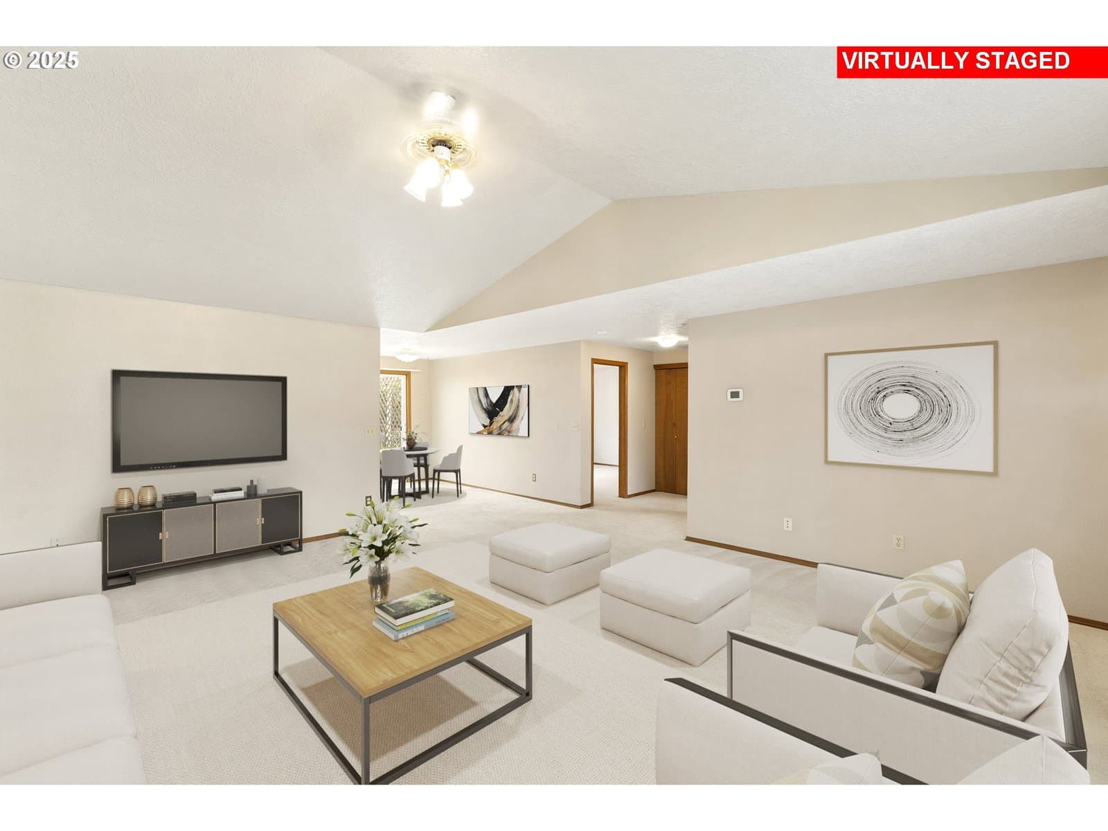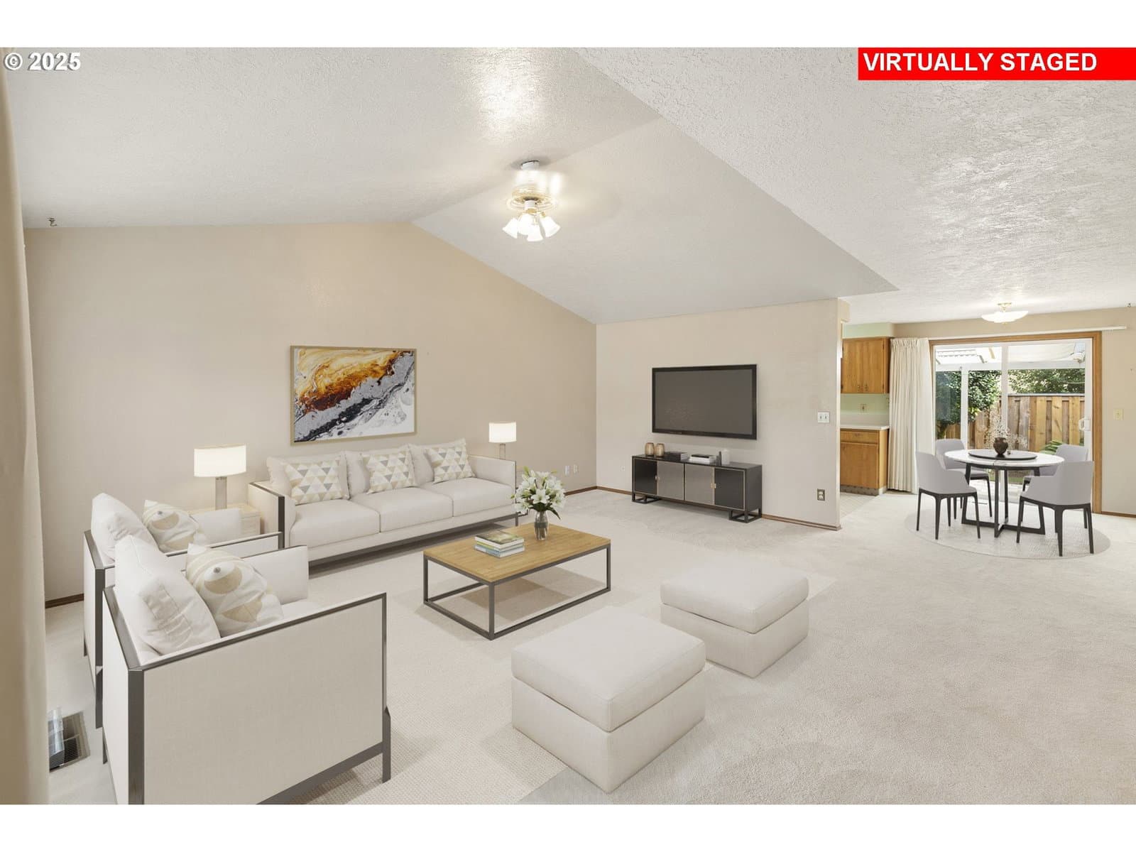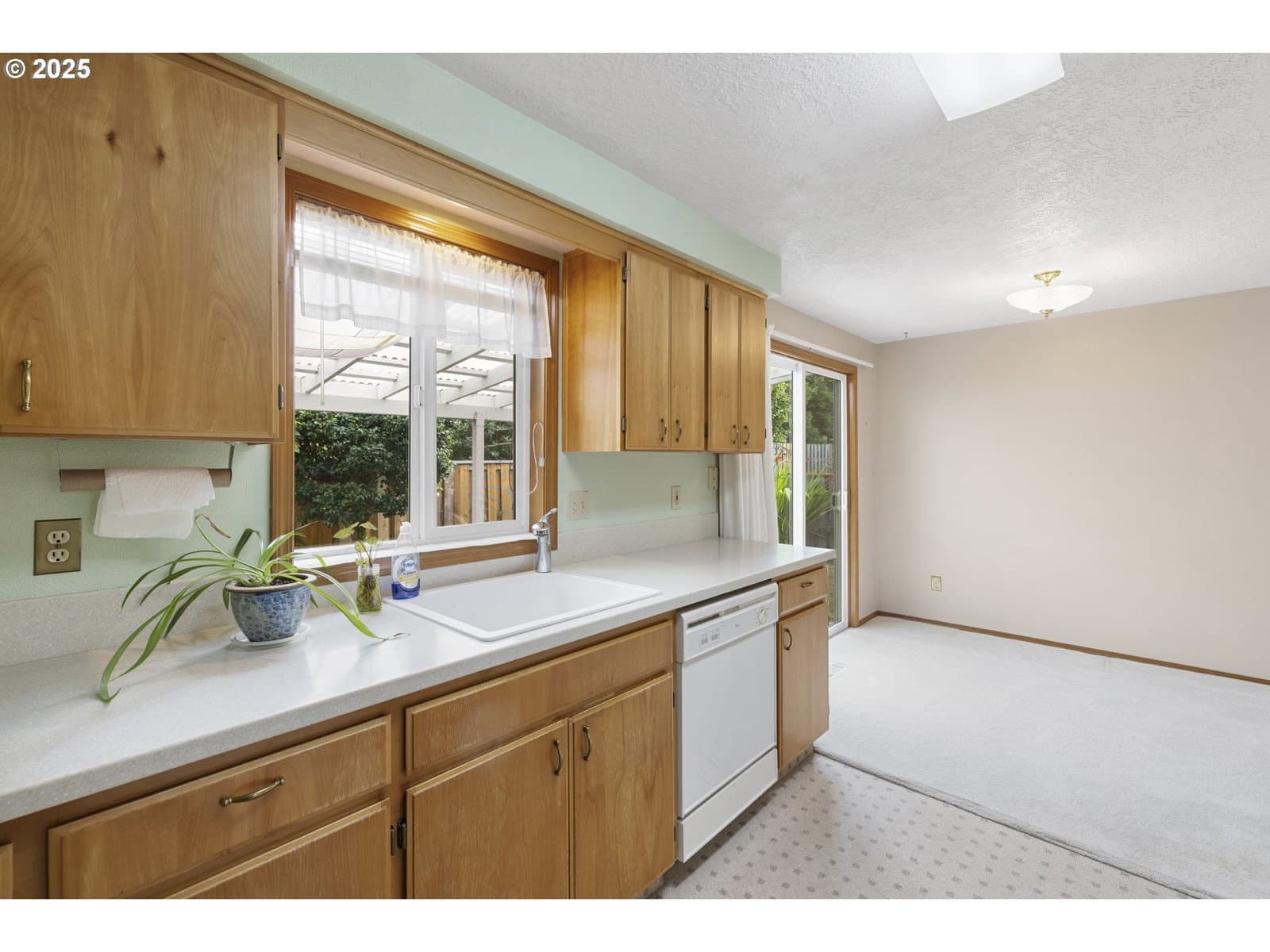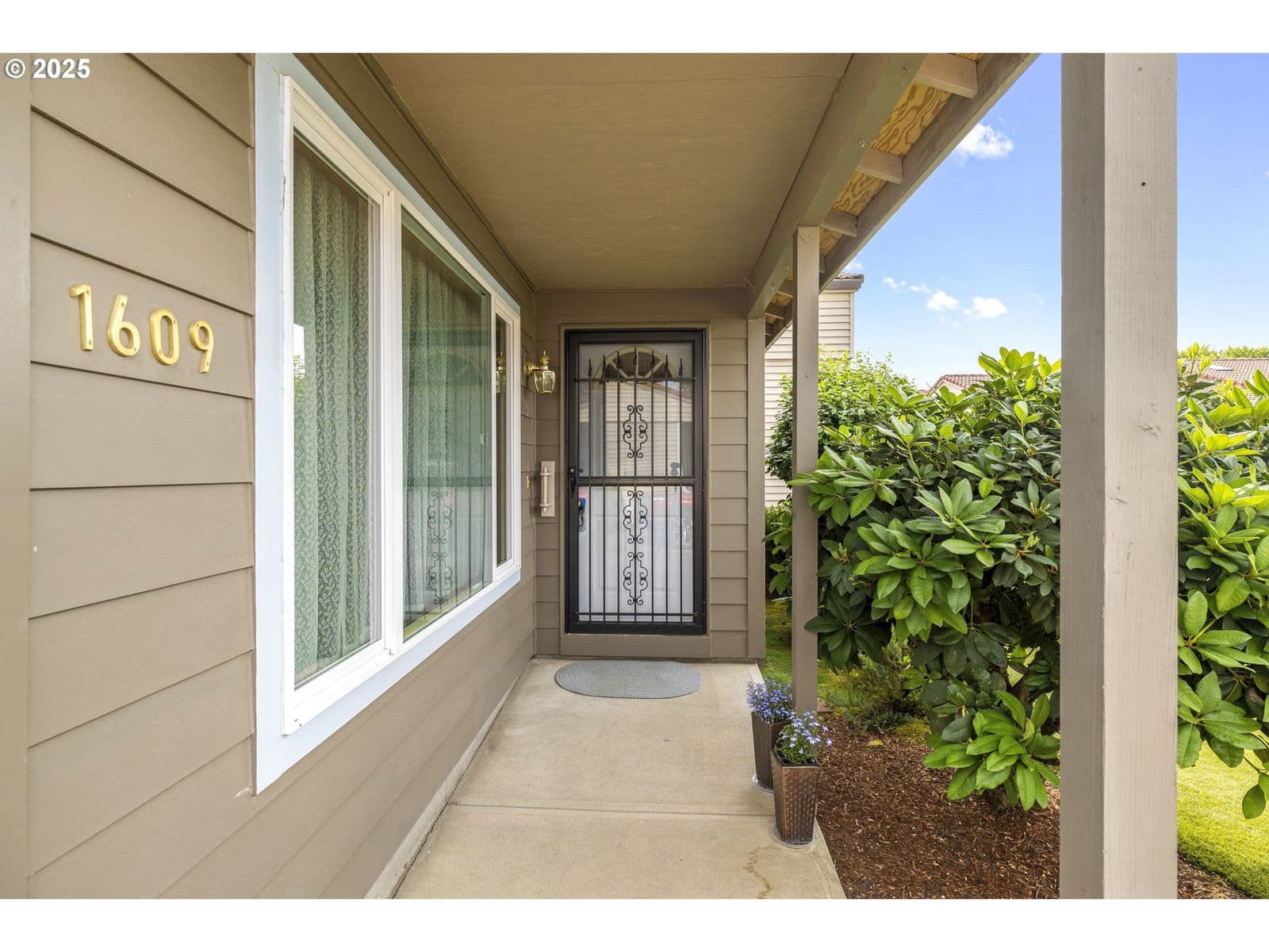 Lovingly maintained, this welcoming single-level home offers serene living in the Crestview Manor 55+ community. Enjoy peace of mind with the comfort and privacy provided by its location nestled between common wall neighbors. From the charming porch, the interior opens to a vaulted great room awash in natural light. The bright dining area which adjoins offers a meditative site for meals overlooking the covered patio. Beautifully finished with elegant marble pavers, installed around 2010, the patio offers a lush setting for enjoying the beauty of the seasons. The yard is also designed for low-maintenance with year-round greenery thanks to artificial turf. Thoughtful finishes extend inside as well, including sliding shelves in the kitchen and bathroom for convenient access and the added accessibility of a higher commode and walk-in shower. Subtle touches, like hooks around the bedroom and living room windows, make it easy to add seasonal lighting. The extra-deep garage features built-in storage for dedicated shop or hobby space while the electric car charging station provides an environment-friendly update for energy conscious living. Combining functionality with ease of maintenance, along with the convenient location near shops and services, this beautiful residence awaits to welcome a new homeowner appreciative of its warmth and thoughtful finishes. Garage door replaced in Feb 2018; garbage disposal replaced Sept 2018; Patio roof replaced Dec 2018. $1000 Transfer fee for new owners.