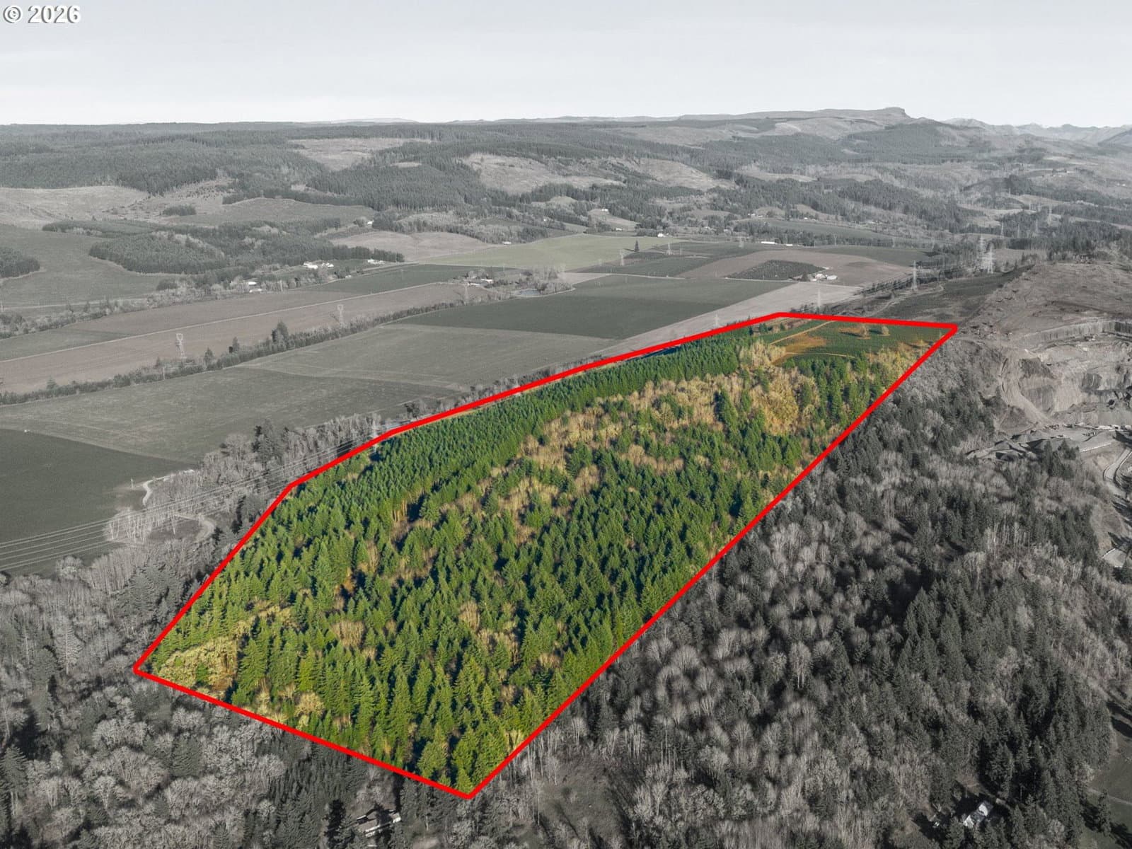 ±110-ac ideal for agricultural/timber uses & long-term investment purposes. Features productive mix of Jory and Nekia soils with ±27 tillable acres planted to Christmas trees and leased, providing stable rental income. The remaining land has predominately been utilized for timber production. The recent timber cruise (Sept 2025) indicates 1,817 MBF with a net value of $723,000. The property offers beautiful views of surrounding farms and foothills with elevations ranging from ±760 to ±1,200 feet above sea level. While the property does not include a home site, there may be potential through EFU zoning regs via farm income (any property uses and/or home site potential is to be verified by interested parties). Info pkg available for more details! DO NOT ENTER w/out appt.