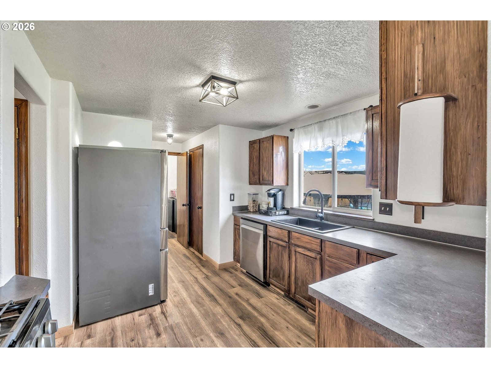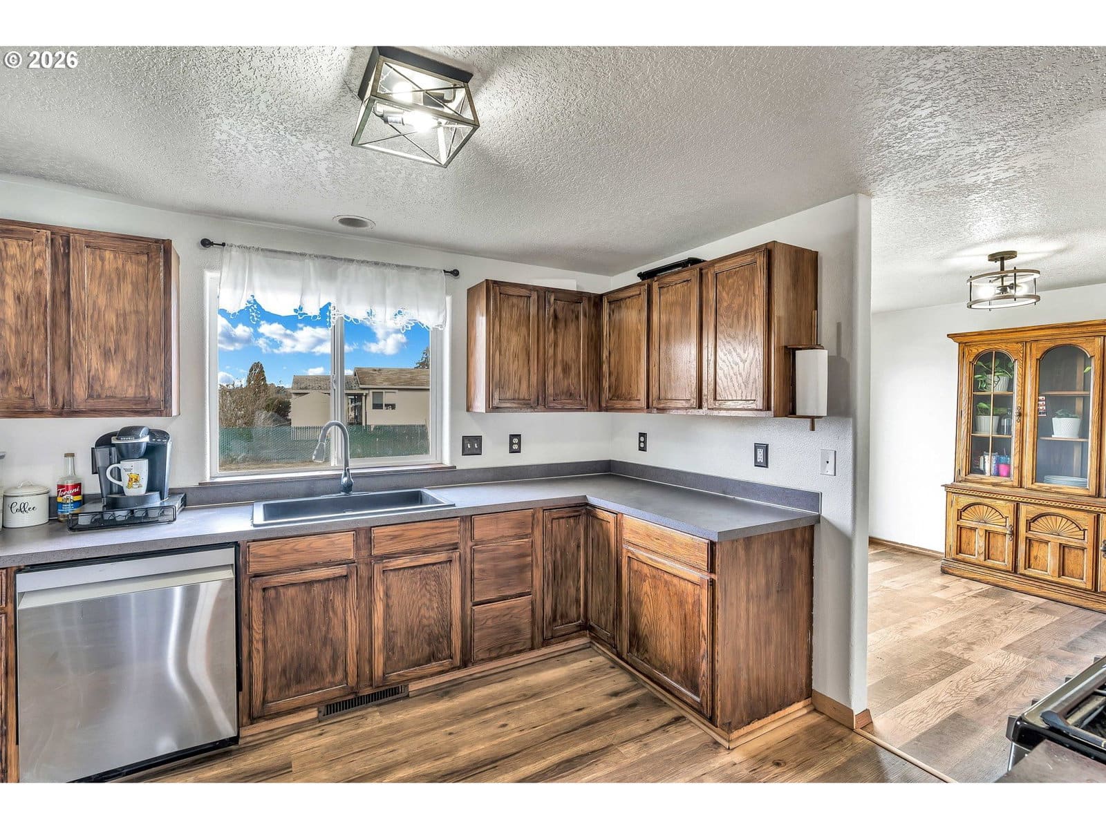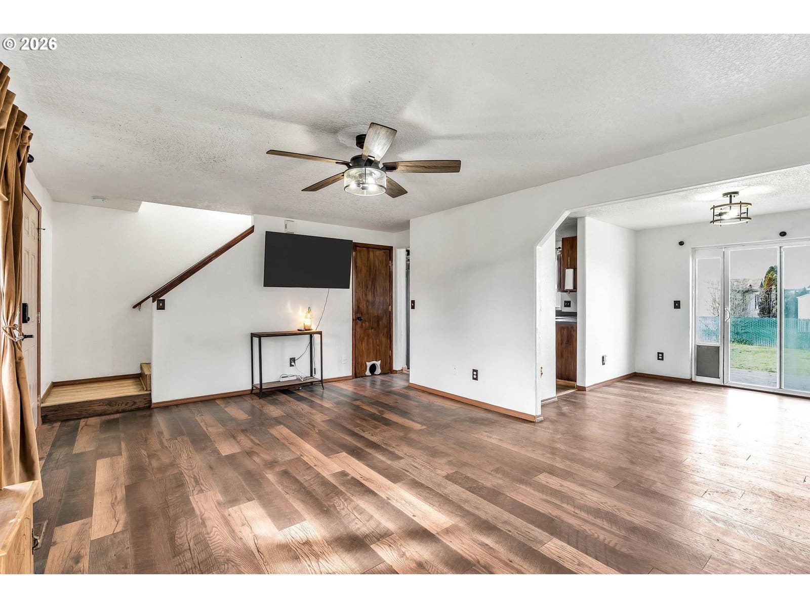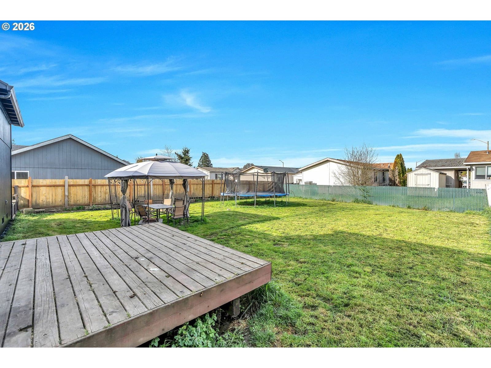 This inviting 4-bedroom, 2.5-bath home offers a spacious and functional layout with all bedrooms conveniently located upstairs. Hardwood floors throughout add warmth and durability, while thoughtful features create a comfortable living environment.The open-concept living and dining areas are perfect for everyday living and entertaining. The living room features a ceiling fan for added comfort, and the dining area includes sliding doors that open to the back deck and fully fenced yard, creating a seamless indoor-outdoor flow.The kitchen is well-equipped with new stainless steel appliances, a built-in microwave, dishwasher, and an oversized sink, offering both style and functionality. Upstairs, all bedrooms include ceiling fans, and the primary suite provides a private retreat with an ensuite bathroom featuring a walk-in shower.Recent updates provide peace of mind, including a new roof (2026), new HVAC system with central A/C and heat (2024), front windows replaced with double-pane vinyl, a front deck added in 2022, and fresh interior and exterior paint. The washer and dryer are included, adding everyday convenience.Step outside to enjoy the large fenced backyard with a deck, perfect for entertaining, relaxing, or outdoor activities. The property also features a gazebo and trampoline included, plus a side yard previously converted for RV parking, offering flexibility for parking or additional use.With its practical layout, numerous upgrades, and versatile outdoor space, this home is move-in ready and built for comfortable living.