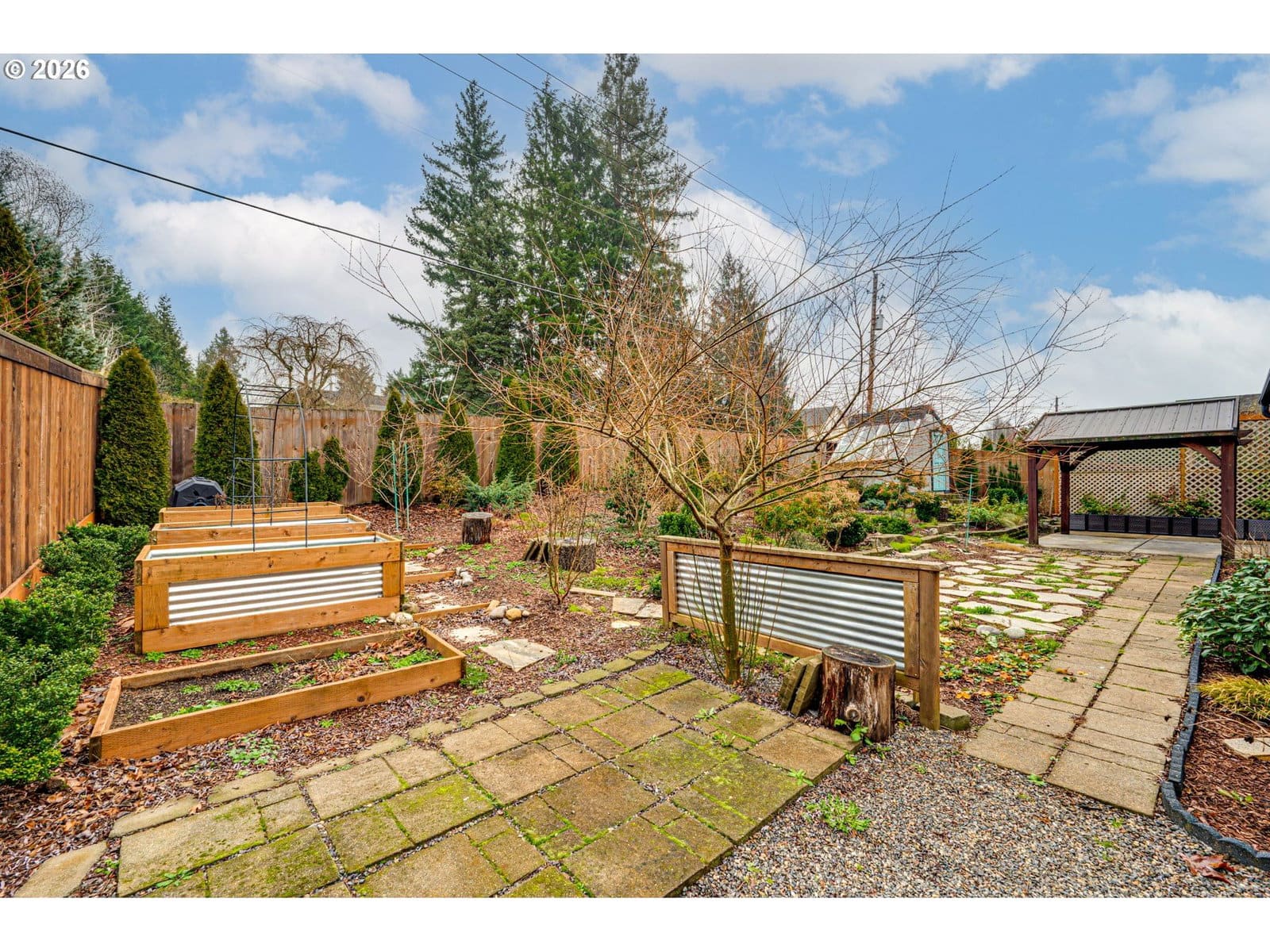 Timeless Craftsman character meets vaulted ceilings, engineered hardwood floors, and a main-level primary suite in this beautifully executed home, set within a quiet neighborhood close to parks, schools, and everyday conveniences. The great room design brings together the living, dining, and kitchen spaces, creating an open and inviting atmosphere. The kitchen is both striking and functional, featuring granite countertops, a statement tile backsplash, stainless steel appliances, a built-in range and double ovens, pantry, island with eat bar, and a built-in desk area. The living room is anchored by a gas fireplace and enhanced by vaulted ceilings and hardwood flooring. The primary suite on the main level offers a walk-in closet with custom organizer, double sinks, soaking tub, and walk-in shower. A dedicated office and laundry room with built-in storage and utility sink complete the main floor. Upstairs, three additional rooms (or two additional bedrooms and a bonus space) with ceiling fans provide flexibility. Outdoor spaces are thoughtfully designed for enjoyment, featuring a fully fenced and landscaped yard with irrigation front and back, raised garden beds, and a 23’x9’ covered patio/gazebo. A large outbuilding with windows offers excellent potential for a greenhouse, studio, or creative space, along with an additional tool shed for storage. A well-balanced home offering Craftsman charm, functional living spaces, and inviting outdoor areas in a desirable setting.