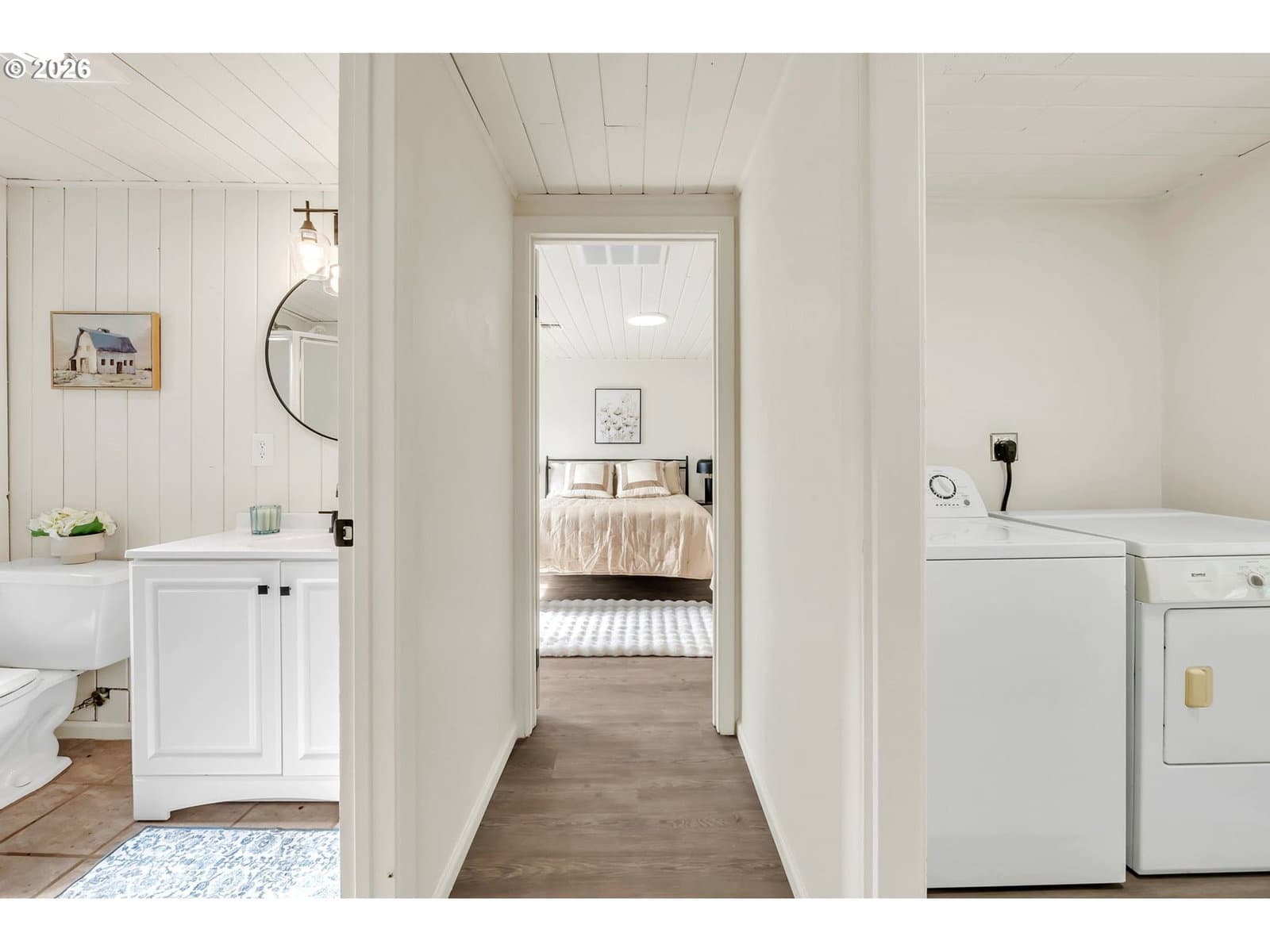 A rare opportunity to own a truly special piece of Oregon countryside! Where functionality, flexibility, and natural beauty come together. Set on 11+ fully usable acres in Monroe,OR. This thoughtfully designed property offers the ideal setup for a horse property, hobby farm, or multi-generational living. Surrounded by a stunning mountain backdrop and tucked into a peaceful, serene setting, the land features fenced pastures, a 5-stall barn with tack room, and space to live, work, and grow. At the heart of the property sits a beautifully renovated 1,600 sqft main home, offering 3 bedrooms & 2 bathrooms with a layout designed for both comfort and connection. The home has been fully updated with new flooring, fresh interior paint, updated fixtures and lighting, and brand new appliances. The open-concept kitchen features a large island with new granite countertops & flows seamlessly into multiple living spaces. All positioned to take in the surrounding country views. The primary suite is a true retreat, complete with a walk-in closet & an updated ensuite featuring a soaker tub and step-in shower. Additional improvements include all new decking across three decks, a newer roof (2022), and a new septic system (2023).A creek runs through the center of the property, creating a natural division between the two homes. Offering both privacy and a unique sense of connection.The second residence is a charming, fully renovated 900 sqft bungalow. This 2 bedroom, 1 bath home has been fully updated with an improved kitchen, refreshed bathroom, new fixtures & lighting, fresh interior and exterior paint, new roof, and all new decking. The layout includes a light-filled living and dining space, designated laundry room, and a separate mudroom ideal for storage and everyday functionality.Each home has its own power and septic system while sharing a well, offering flexibility for multi-generational living, guest space, or rental income.