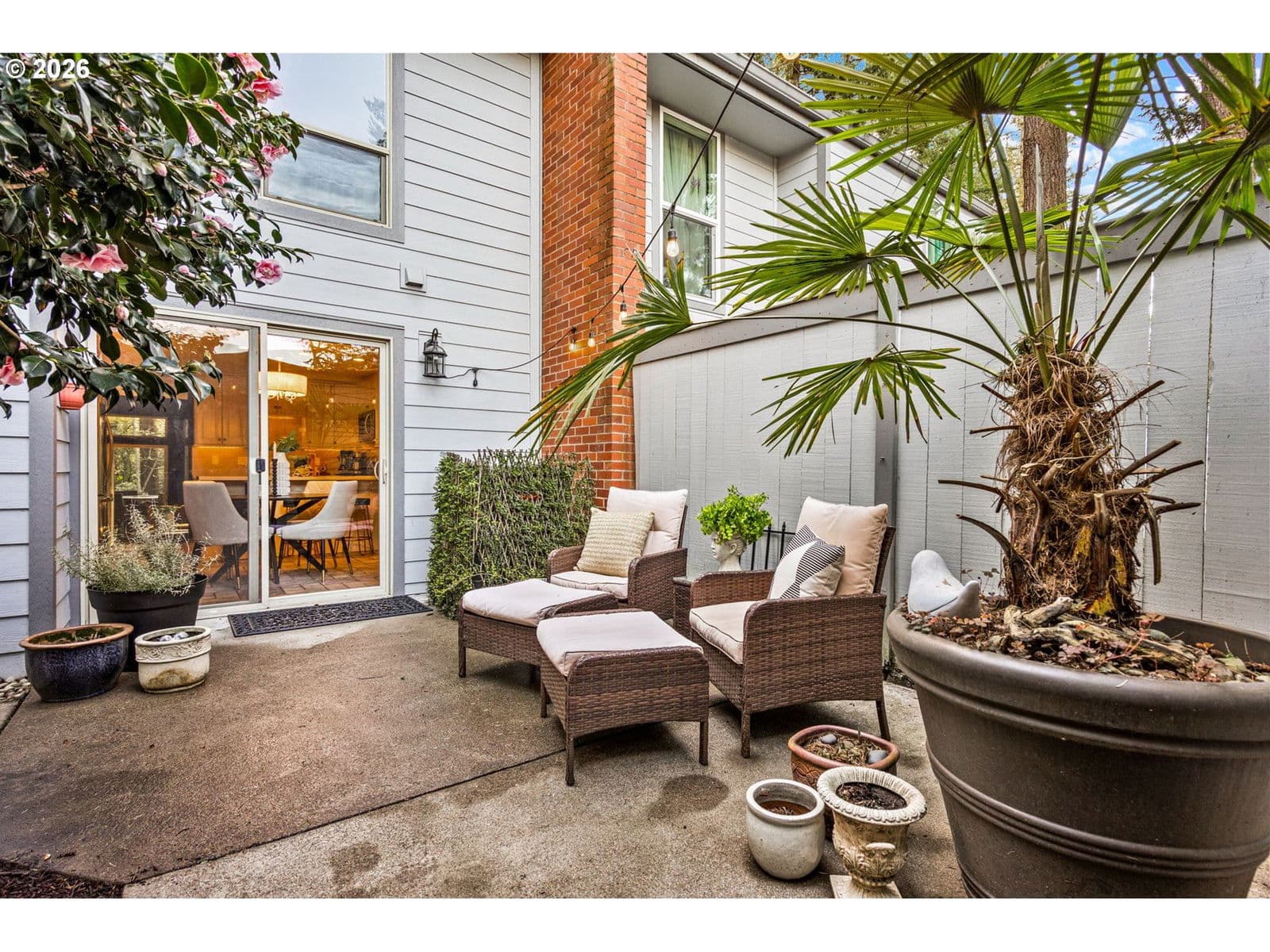 OPEN Sat 3/28 @ 12-2pm! Tucked among the trees in the sought-after Willamette Green community, this spacious 4-bedroom, 2.5-bath townhome offers 1,660 square feet of comfortable living with a rare blend of privacy, amenities and flexibility. The sunken living room features a wood-burning fireplace, hardwood floors, built-in cabinetry storage, a wall of windows and a large slider leading to the patio that bring in natural light and peaceful wooded views. The remodeled kitchen is outfitted with quartz counters, stainless steel appliances, pantry storage with pull-out shelving, an eat bar and an easy connection to the dining area and private courtyard for everyday living or entertaining. Upstairs, the primary suite includes its own bathroom with walk-in shower & walk-in closet, while three additional bedrooms provide space for guests, hobbies or work-from-home needs. A detached oversized garage includes a partially converted bonus space of approximately 300 square feet (temp walls can be returned to a full 2 car garage) ideal for an office, studio, workout room or hangout space. Heat pump heating and cooling. Parking for 2 cars in the driveway. HOA amenities include landscaping, exterior maintenance, water, sewer, recreation facilities, party room, basketball court, commons and the large pool make for easy living in one of Canby’s most unique condo settings. Surrounded by towering tree, walking paths and park-like grounds, this home offers a peaceful retreat with resort-style community amenities!