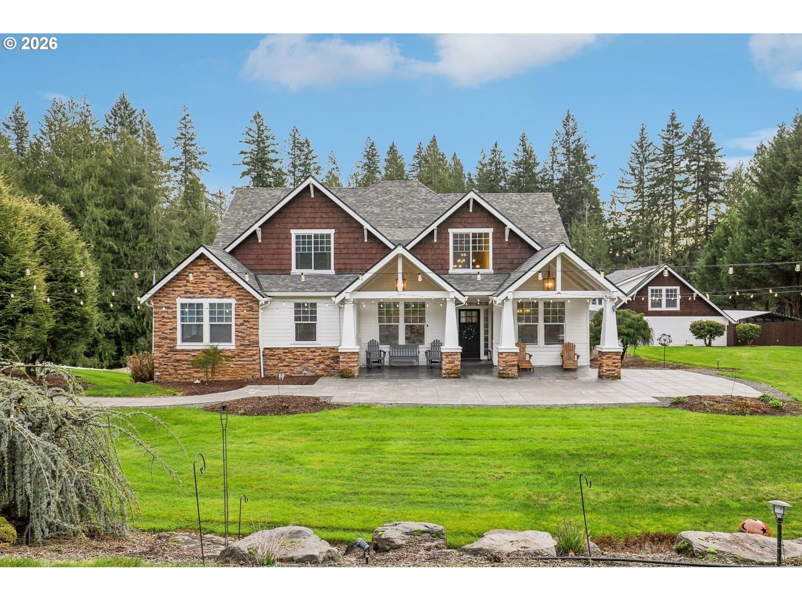 Experience breathtaking, panoramic views from this secluded custom Pioneer Log Home, gracefully perched above the Willamette Valley. Encompassing over 122 acres of rolling pasture and mature forest, this remarkable estate offers a rare blend of privacy, natural beauty, and tranquility—yet remains conveniently located just 21 miles from Eugene Airport and downtown Corvallis. Designed to embrace its stunning surroundings, the home features an expansive 2,400 sq. ft. wraparound deck—perfect for entertaining, relaxing in the hot tub, or simply taking in the sweeping valley vistas and abundant wildlife. Inside, the main level showcases a luxurious primary suite with soaring vaulted ceilings, a spacious walk-in closet, and a spa-inspired ensuite complete with an enclosed steam shower and jacuzzi tub. The thoughtfully designed layout also includes a full guest bathroom, walk-in pantry, dedicated office space, inviting dining area, and a well-appointed kitchen ideal for both everyday living and hosting. The lower level offers two generously sized bedrooms, a full bathroom, a comfortable additional living area, and a second pantry with ample storage. Upstairs, a private bedroom with a half bath provides a versatile retreat—perfect for guests, a home office, or creative studio. The land itself is equally impressive, featuring a charming orchard, yurt garden, and two separate parcels: a 42-acre homesite and an adjacent 80-acre tract. Both parcels offer marketable timber, with the larger tract also home to a pristine artisan spring.This one-of-a-kind estate seamlessly combines exceptional craftsmanship, stunning natural surroundings, and peaceful seclusion—an extraordinary opportunity that must be experienced in person to be fully appreciated.