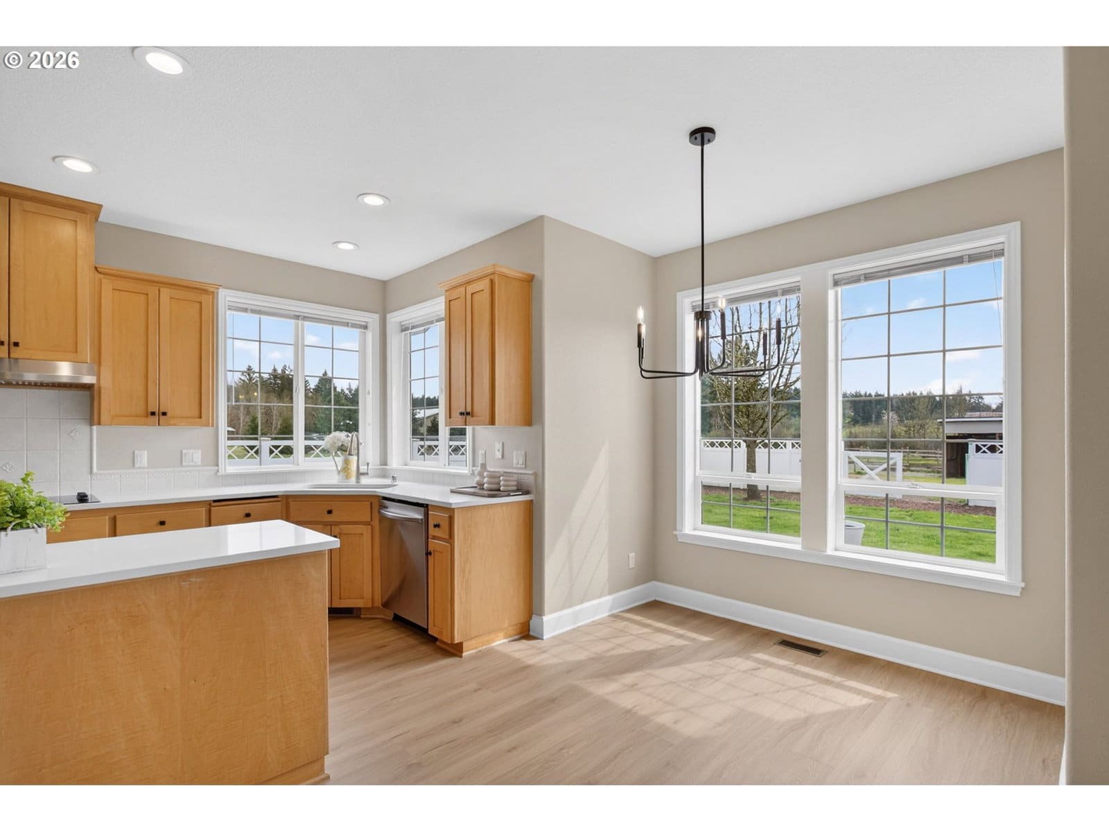 Charming one-level Mascord Craftsman featuring tall ceilings and expansive windows that fill the home with natural light. Thoughtfully updated throughout, this home offers new LVP flooring, fresh interior paint, stylish lighting, quartz countertops, and a brand-new architectural roof.The open-concept layout provides both comfort and functionality, with a formal living room, a spacious kitchen with dining area, and a welcoming family room complete with a cozy fireplace and sliding doors leading to the deck and backyard—perfect for indoor-outdoor living.The private en suite primary bedroom features a walk-in closet and a relaxing jetted tub, creating a true retreat.Set on over 5 flat, fully usable acres, the property is fully fenced and cross-fenced with attractive white vinyl fencing—ideal for animals or hobby farming. Enjoy the expansive deck, plus multiple outbuildings and a small barn for added versatility. Ample RV parking and a spacious 3-car garage provide plenty of room for vehicles, equipment, and storage.Experience the ease and comfort of one-level living in a peaceful, functional setting with room to grow. NO HOA!