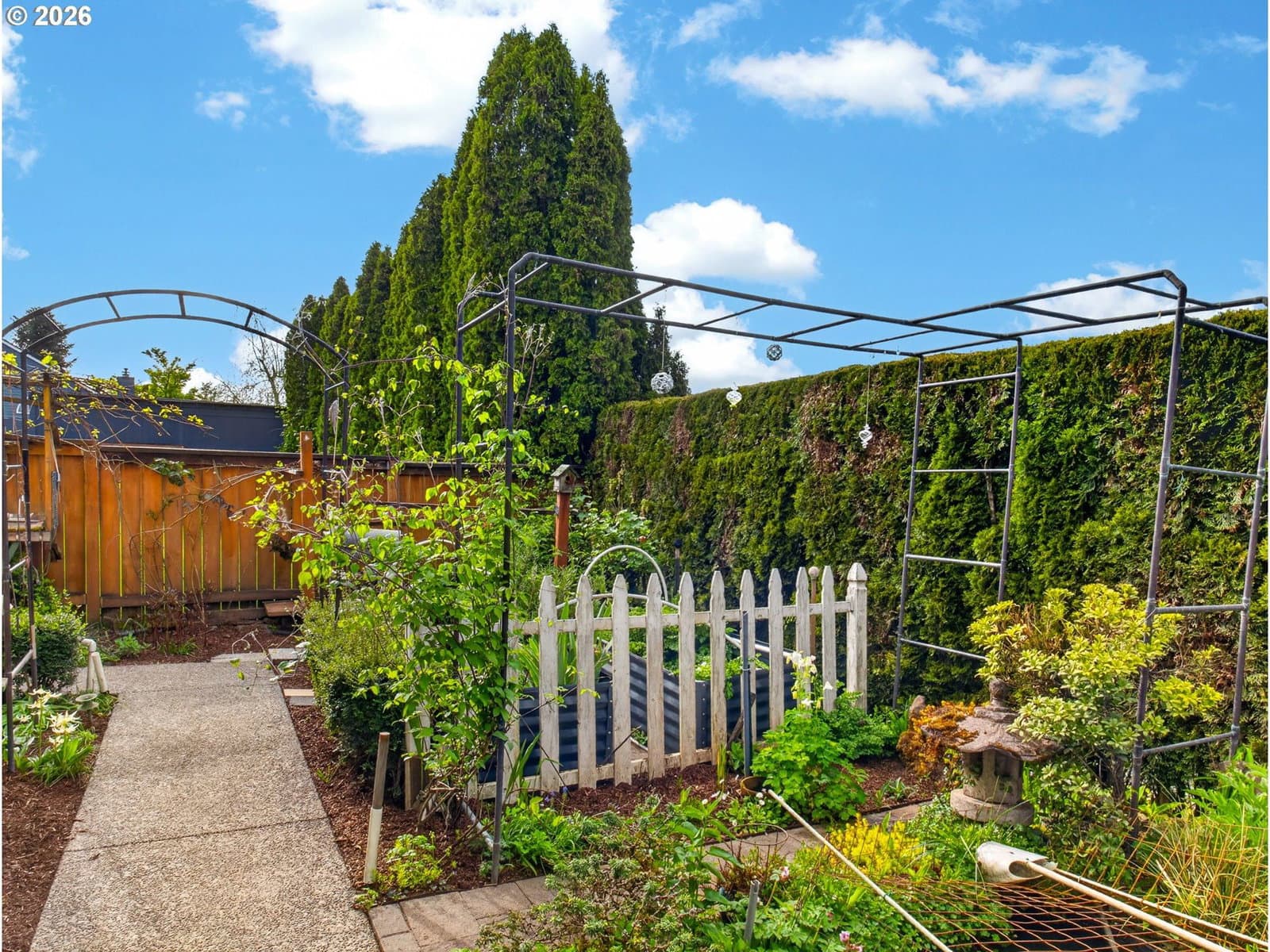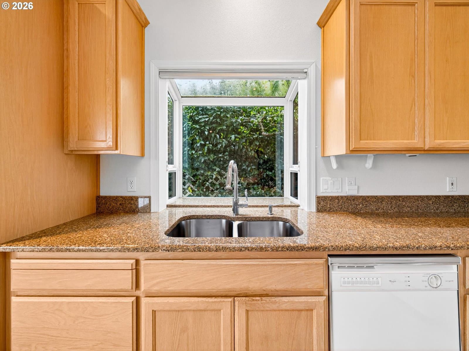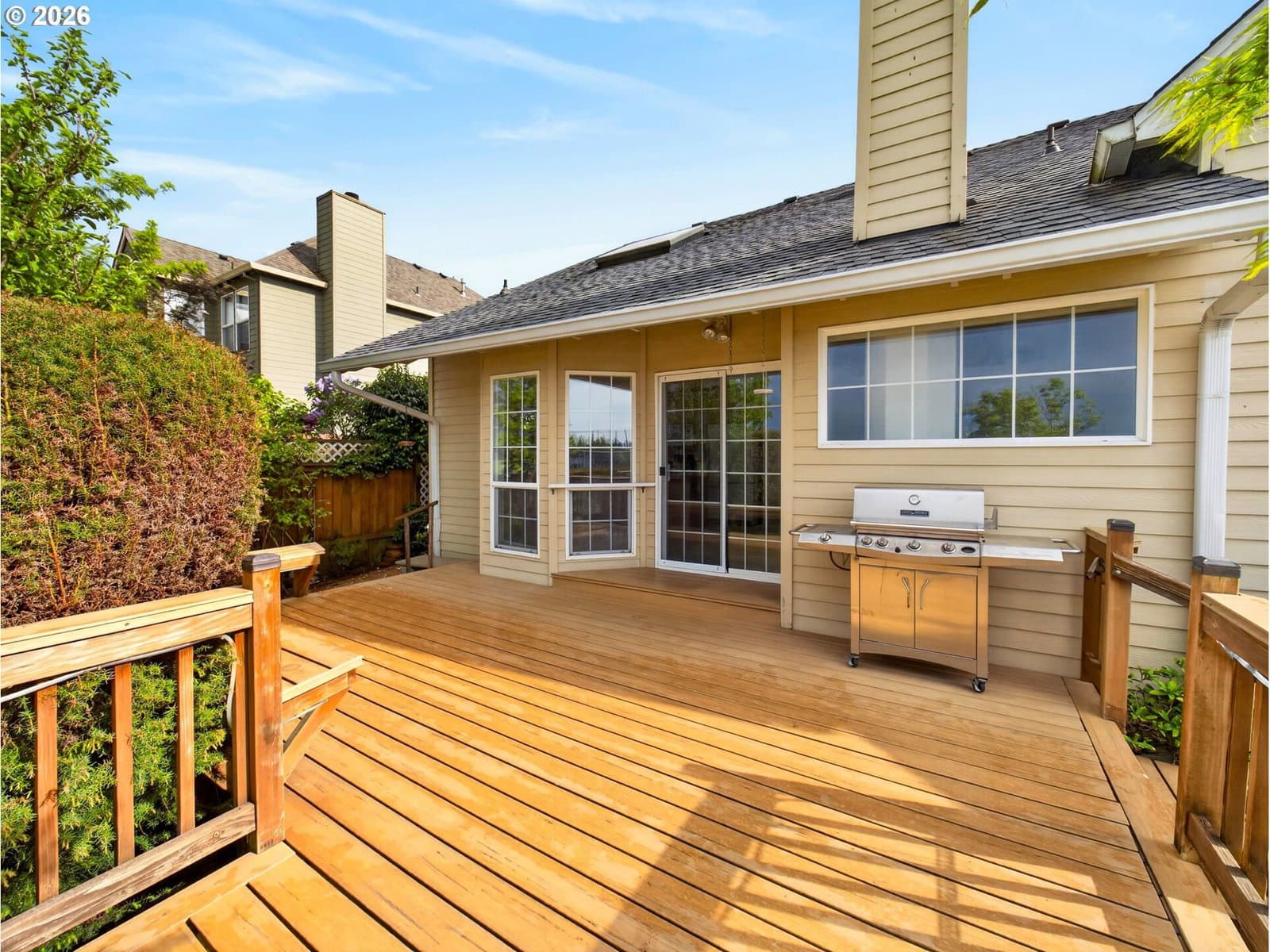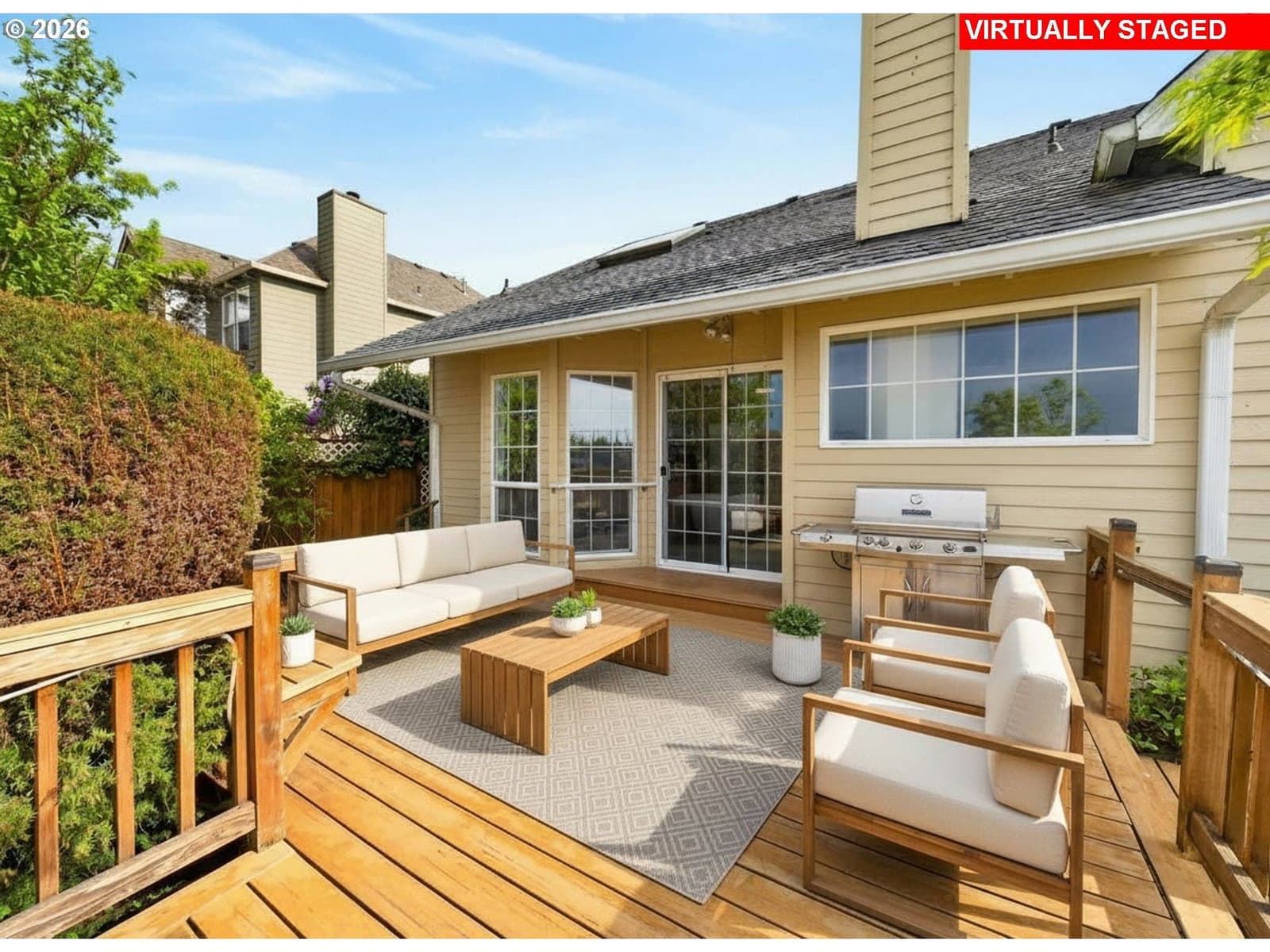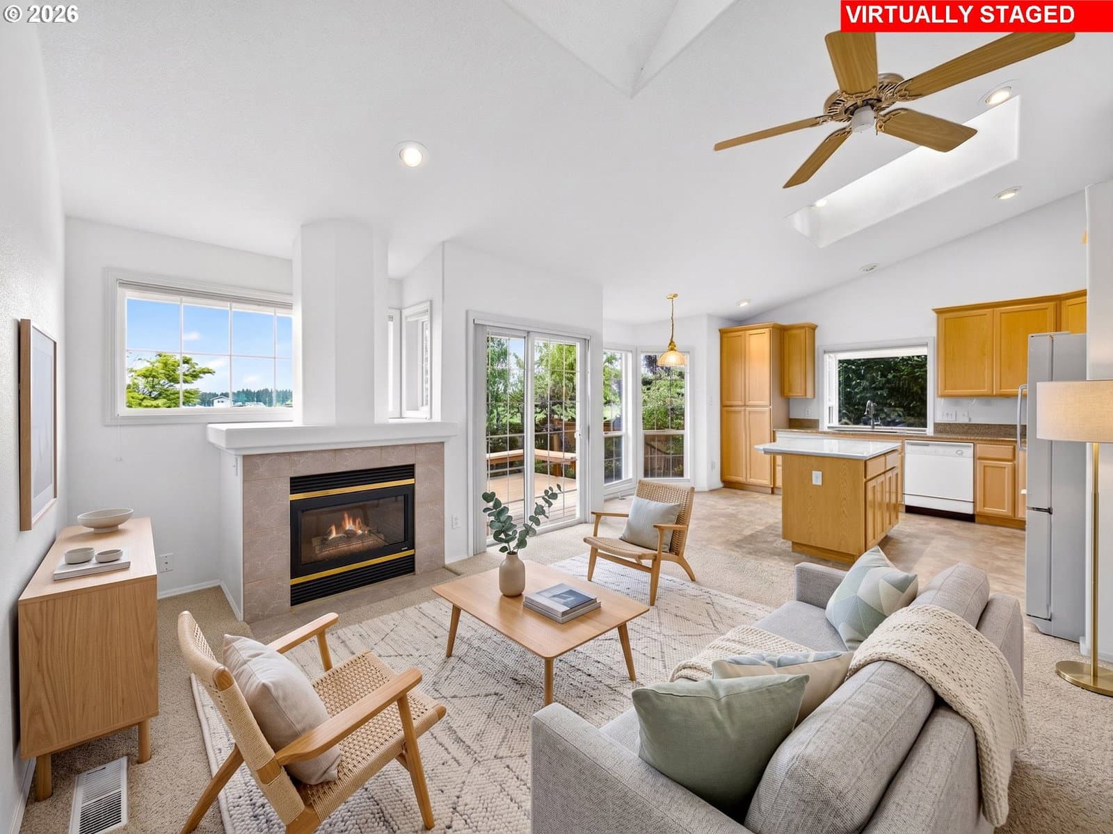 ** OPEN HOUSE SATURDAY, 4/25 from 11-1:00 ** One-level & move-in ready in desired Tualatin neighborhood. Vaulted living spaces, skylights & beautiful paned windows provide natural light throughout. Living room has bay window & opens to the dining room w/oversized windows. Kitchen has slab granite countertops, eating island, garden window & dining nook. Spacious family room w/fireplace & slider to deck. Primary suite has walk-in closet & vaulted bathroom with dual sinks & soaking tub. 3rd bedroom w/French doors & closet functions well as an office or flex space. Fenced backyard features large composition deck, mature landscaping, water feature & raised garden beds. 2-car garage includes opener, storage cabinets, shelving & sink. Central vac system. Gas furnace & AC (2021). Sports fans - this home looks out over one of the high school ball fields. Rain or shine, you can watch the game!