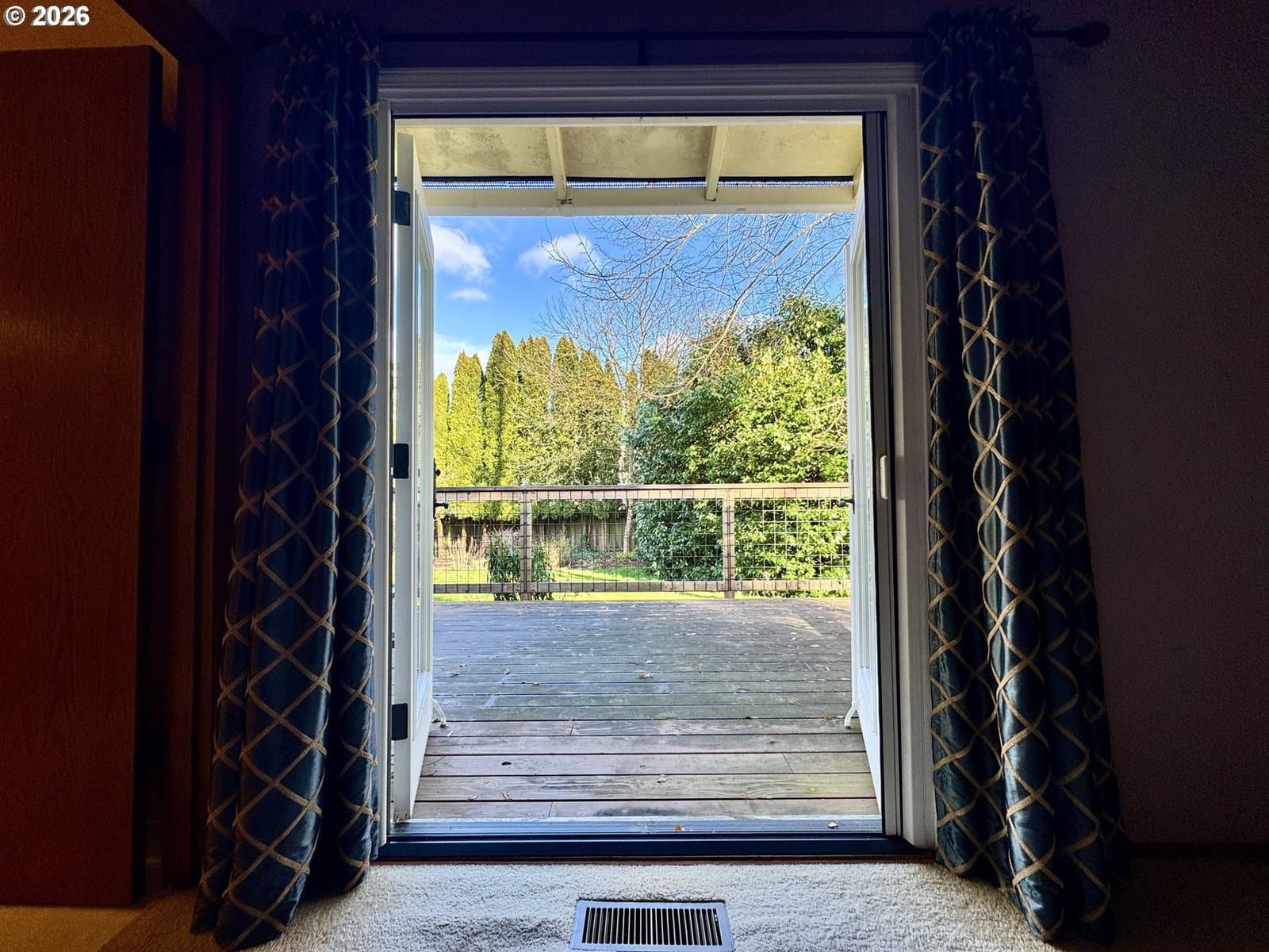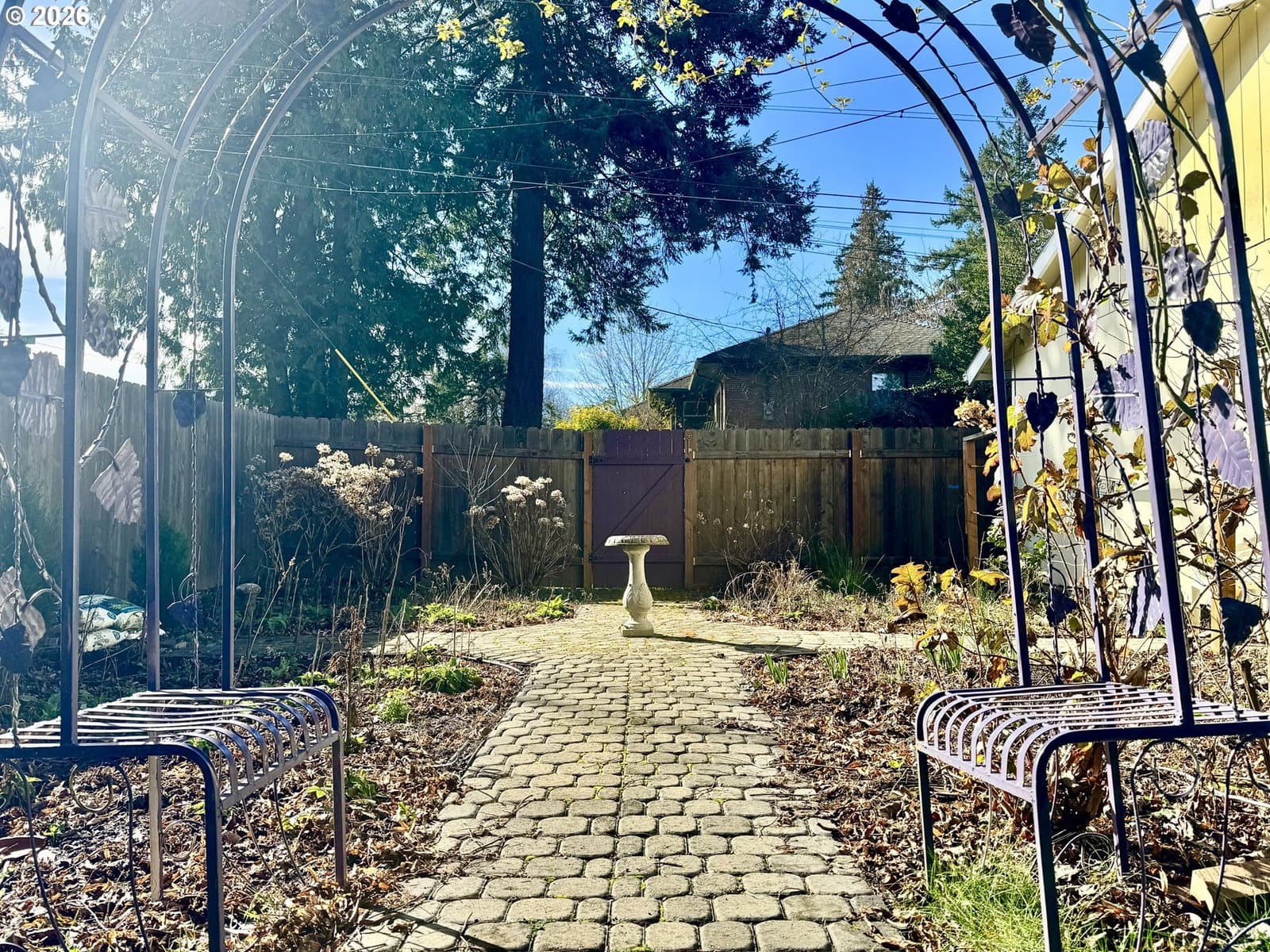 Tucked at the end of a quiet cul-de-sac, this well-maintained 3-bedroom, 2-bath single-level ranch-style home offers privacy and exceptional outdoor living. Peacefully removed from the noise, yet ideally situated for easy commuting- just 3 minutes to I-5 and 7 minutes to Multnomah Village. Built in 1985 with 1,360 square feet of comfortable living space, the home features an efficient, livable layout. All vinyl windows provide energy efficiency throughout. French doors in both the dining area and the primary suite open to the back deck, creating wonderful indoor-outdoor flow and connection to the backyard. The backyard being one of the standout features on this nearly quarter acre lot begins with a spacious deck spanning the entire width of the home. Enjoy mature apple trees, tiered flower beds, a tool shed, and a large, sunny, south-facing garden seating area. A newer charcoal BBQ, deck furniture, and all gardening equipment inside the shed may be included in the sale. The property borders beautiful neighborhood trails and side streets that connect all the way to SW Barbur Blvd via Woods Memorial Natural Area (a 10-minute walk away). Major system upgrades include a brand-new furnace (2025), newer water heater (2023) and a professionally installed 14kW Generac whole-house generator wired directly into the home and designed to automatically power the house during a neighborhood outage. The attached two-car garage provides ample room for storage, hobbies, or workspace (220v power available). A rare blend of seclusion, infrastructure upgrades, and outdoor beauty in a location that keeps you connected. (Buyer to verify all.) Fence to be repaired before transfer of ownership. Check out the 3D walkthrough!