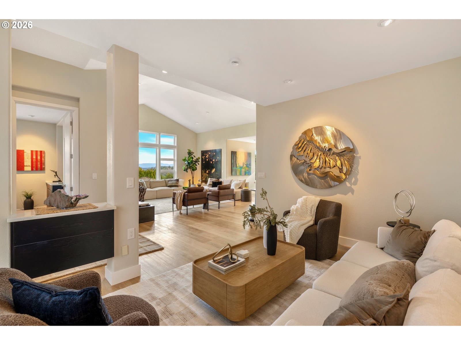 Open House Sunday 1-4. Gated & Private ONE LEVEL living with Pool and "top of the world” VIEWS in this absolutely Stunning exquisitely appointed Contemporary SHOWPLACE. 4 Bedrooms, 3.5 Baths, Bonus gym room and spacious open floor plan with 2 deluxe Primary en-suites on the main (both with walk-in closets & premium bathroom layouts). State of the Art Kitchen with Double Sided breakfast Bar, breathtaking Great Room with floor to ceiling fireplace, expansive windows, Vaulted ceilings, 8 ft high solid core doors, presidential roof, plus a 3 car attached Garage with ample onsite parking. Hip, Stylish and Smart... A truly magical 3,166 sqft Entertainer’s OASIS on this rare .37 acre lot in prime Happy Valley location.
