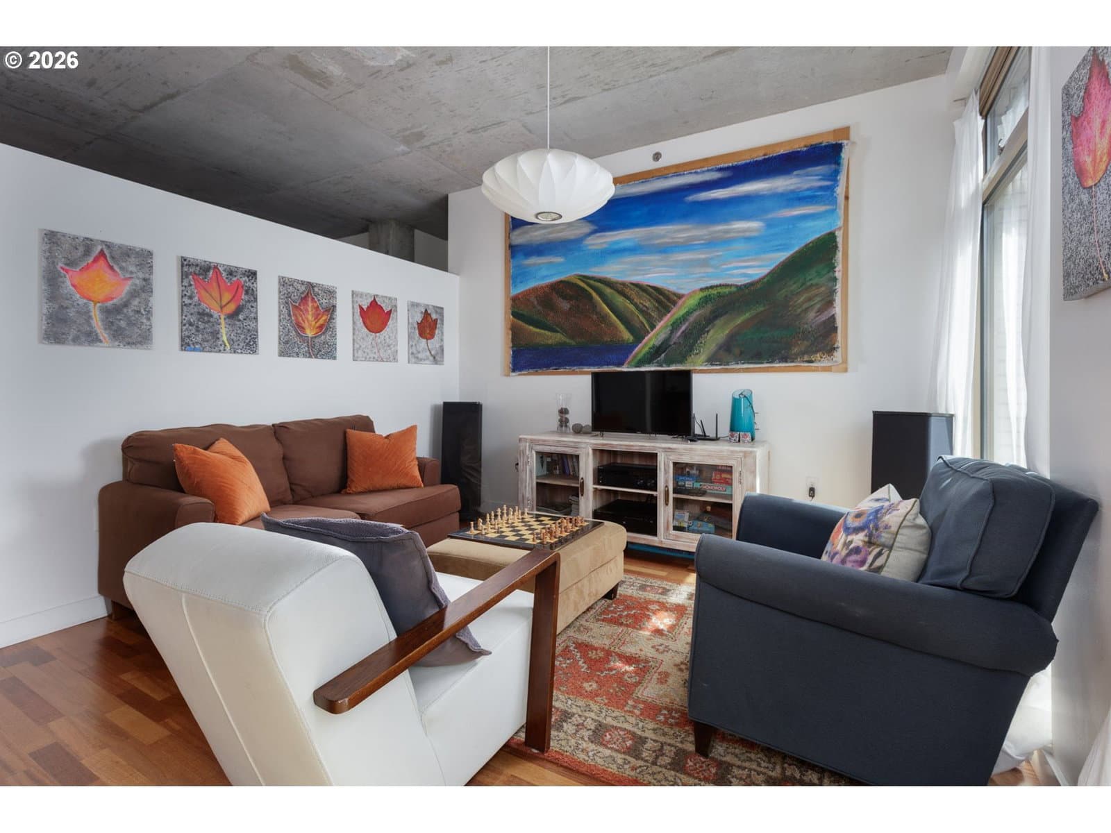 Urban vibes meet small-town charm in this stylish condo. Enjoy single level living, three stories above the city, then descend directly into the buzz of Downtown Hood River. Thoughtful design delivers a modern aesthetic with exposed concrete accent walls and full-height, south-facing windows. Clean lines, contemporary finishes, and an open layout create a comfortable, loft-like feel that’s both stylish and efficient. Central AC and radiant floor heat offer year round comfort with a touch of luxury. Step outside to cafés, restaurants, shops, and riverfront access just blocks away. You’ll love the uniquely urban vibe! Trails, parks and the wider Gorge lie just beyond. Home base is easy here, with the condo association handling many of the ownership tasks. Short-term rentals are allowed within the parameters established by the Condo Rules, and the unit has a proven rental history. It’s your personal property with perks. Amenities include underground parking, elevator access, and a dedicated storage unit—everything you need for a lock-and-leave Gorge lifestyle!