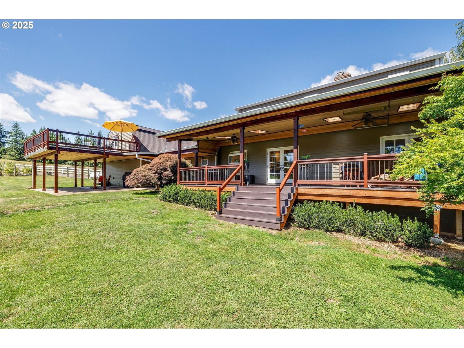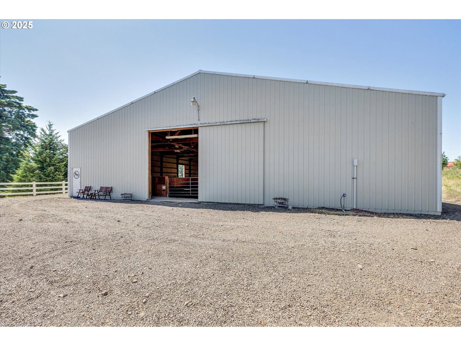 Discover the perfect blend of classic elegance and country charm with this exceptional 30-acre equestrian estate. Nestled amid rolling hills and open pastures, this private, gated retreat offers a luxurious lifestyle in a serene setting—just minutes from the conveniences of Canby and Oregon City. At the heart of the property sits a beautifully remodeled 3,000+ sq ft farmhouse, where quality craftsmanship and attention to detail shine throughout. With 4 bedrooms and 4 bathrooms, including a second primary suite, the home offers both comfort and flexibility for multi-generational living or guest accommodations.The gourmet kitchen, complete with a cozy fireplace nook, is the true centerpiece—ideal for quiet mornings . Multiple decks create effortless indoor-outdoor living, perfect for hosting gatherings or enjoying evenings around the fire pit.To support your equestrian dream is a 7-stall barn complete with a spacious hay loft, shavings shed, and everything you need to care for horses in comfort and style. The impressive 71x144 covered arena features a heated tack room and a dedicated viewing area, making it ideal for training and year-round riding. 6 fenced pastures and mud free/all weather paddocks make it easy to manage pony-life. Meandering trails and a serene pond, offer opportunities to enjoy riding, or hiking on your own expansive estate.Additional highlights include a well-equipped shop and greenhouse with a number of raised beds for the gardening enthusiast .Whether you're a seasoned equestrian, hobby farmer, or simply seeking a peaceful place to call home this is more than a property—it’s a refined lifestyle, where luxury meets functionality in a beautiful country setting. And for peace of mind, the whole-house generator is hardwired in the event of emergency.