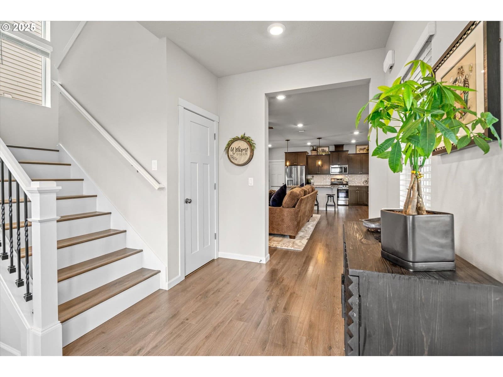 Exceptionally maintained and move-in ready and under $500,000 in Reeds Crossing! This beautiful home features an open floor plan with high ceilings and an abundance of windows, filling every space with natural light. The kitchen shines with granite countertops, an island with eating bar, and seamless flow into the living and dining areas — creating a spacious great room that’s ideal for entertaining. Upstairs, you’ll find a large primary suite with a walk-in closet, double sinks, and a walk-in shower. The roomy laundry area offers built-in shelving for added convenience, and the hall bathroom also features double sinks. Upgraded, pet-resistant carpet throughout the upper level provides comfort and durability. Located in South Hillsboro’s beautiful Reed’s Crossing community, this home is surrounded by trails, parks, shopping, restaurants, and more — making it the perfect place to call home. [Home Energy Score = 9. HES Report at https://rpt.greenbuildingregistry.com/hes/OR10239368]