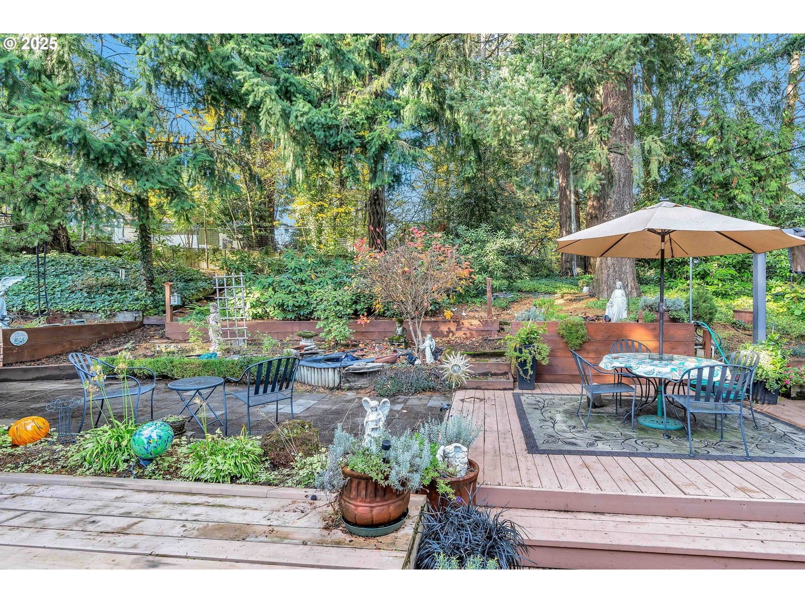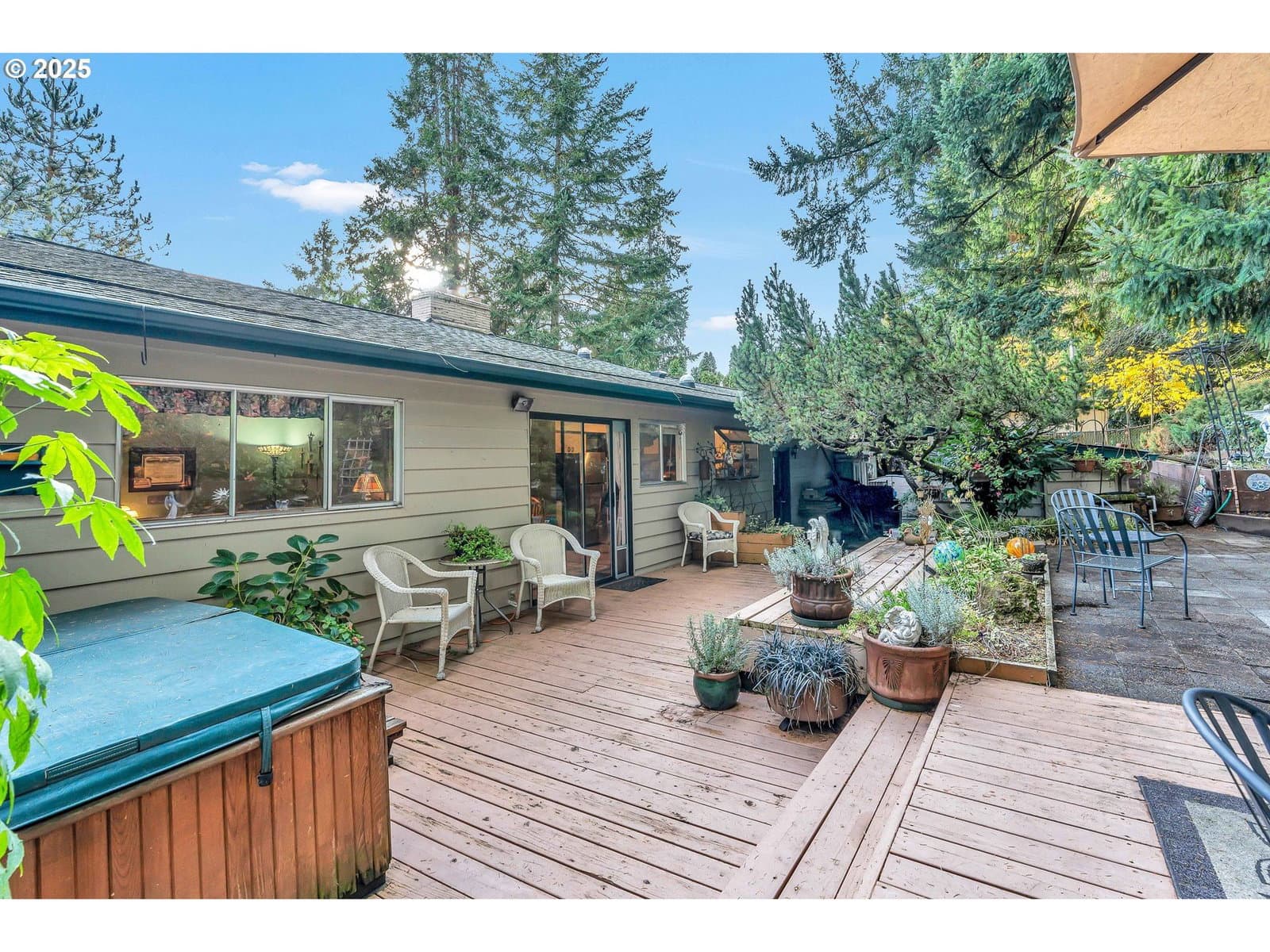 Charming One-Level Home with Stunning Backyard RetreatThis inviting 3-bedroom, 2-bath one-level home offers comfort, style, and an incredible outdoor living experience. The spacious living room features wood floors, ceiling fans, and a cozy wood-burning fireplace, while the dining room also offers wood flooring and sliding doors that open directly to the backyard. The well-appointed kitchen includes stainless steel gas appliances, abundant cabinet space, and easy access to the laundry room with a sink for added convenience.The primary bedroom features wall-to-wall carpet and a private ensuite bathroom, creating a warm and restful retreat. Home has lots of natural light thanks to solar tubes in kitchen, utility room and bathroom in the hall. Step outside to one of the best backyards around—a serene, expansive space with a huge deck, hot tub, patio, raised garden beds, mature trees, storage areas, and multiple levels that create beautiful natural flow. It’s the perfect setting for entertaining, gardening, or simply relaxing in peaceful surroundings.A truly special property offering comfort inside and a tranquil outdoor oasis outside.