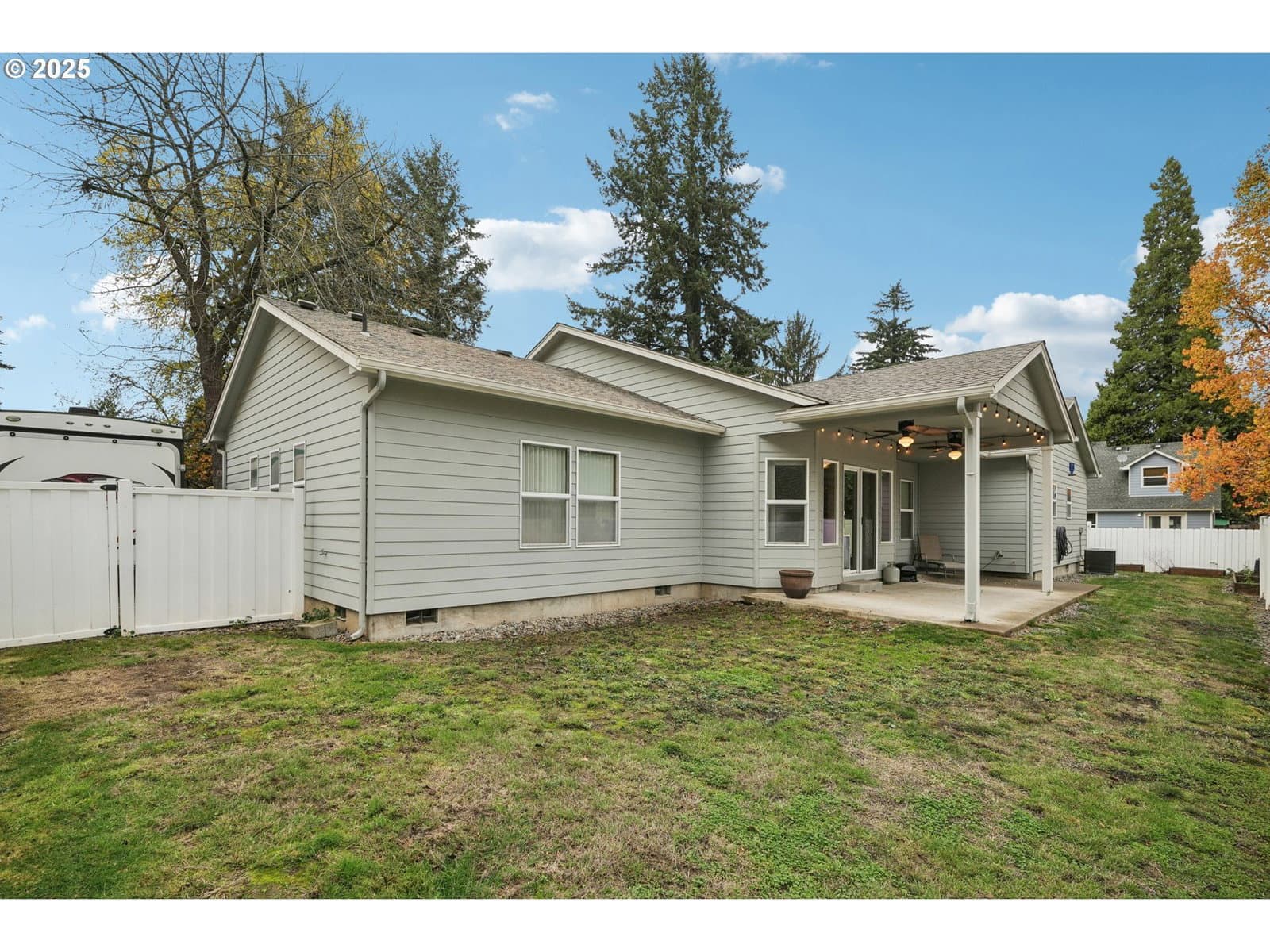 Seller offering significant buyer credit that can help lower your monthly payment or cover closing costs. See agent for detailsCustom-built single-level Keizer home offering a quiet, tucked-away setting with flexible parking and thoughtful design throughout. Set on nearly 9,000 square feet, the property features a three-vehicle driveway, oversized two-car garage, and dedicated 40-ft RV parking — a rare combination for buyers needing space for multiple vehicles, recreational storage, or guests.Inside, rich hardwood floors and soaring ceilings create an open, welcoming atmosphere. The chef’s kitchen is designed for everyday living and entertaining, featuring Corian countertops, built-in double ovens, a gas cooktop with downdraft, and a spacious walk-in pantry. Two secondary bedrooms share a classic Jack-and-Jill bath, while the primary suite offers a cozy double-sided fireplace, spa-like soaking tub, oversized walk-in shower, and generous walk-in closet.Year-round comfort is ensured with AC, two gas tankless water heaters, and double-pane vinyl windows. Step outside to a fully fenced backyard with covered patio, raised flower beds, and a gas hookup ready for outdoor gatherings. With no HOA and durable HardiePlank siding with gutter guards, this home blends low-maintenance living with quality craftsmanship.Accessed via a paved private drive shared with neighboring homes, the property provides a peaceful setting away from through traffic while remaining conveniently located near Keizer amenities.