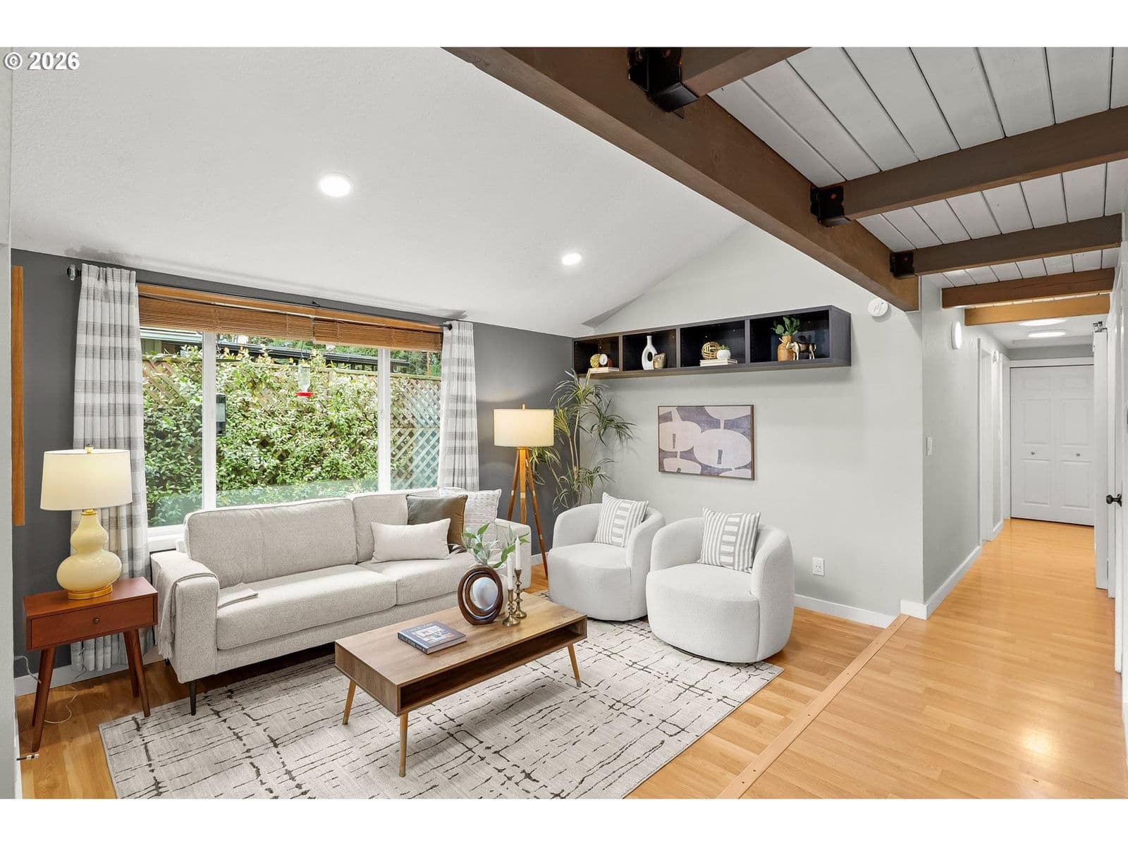 Beautifully updated one of a kind main level living property with over $100,000 in updates done since 2021. 2019-new furnace/AC, 2021-new H20 heater. Since 2021: owned solar panels (around $16/month electric bill), a rebuilt carport w/ 30 AMP hookup designed to accommodate almost any class of RV/Trailer or offer extra storage, and an 8x10 tool shed/workshop w/ 240V power. Professionally designed “Woodland Perennial Garden” backyard, a peaceful retreat boasting over 400 plants, a brand-new custom drip irrigation system (fall 2025), a charming gazebo, & 4 raised garden boxes. Laminate flooring throughout, the kitchen has Quartz countertops, and newer tile backsplash, SS appliances, soft-close cupboards, lighting, new skylights, and a new beautiful bay window for more natural light. Main level offers 3 bedrooms all newly outfitted with low-profile light/fan combos. Additional windows added in primary and in one of secondary bedrooms to bring in more natural lighting. Upstairs offers a versatile bedroom perfect for an office, craft space, or cozy TV room. This home is located close to schools, parks, shopping, and everything Tualatin has to offer. One of a kind main level living home is truly a must-see and move in ready.