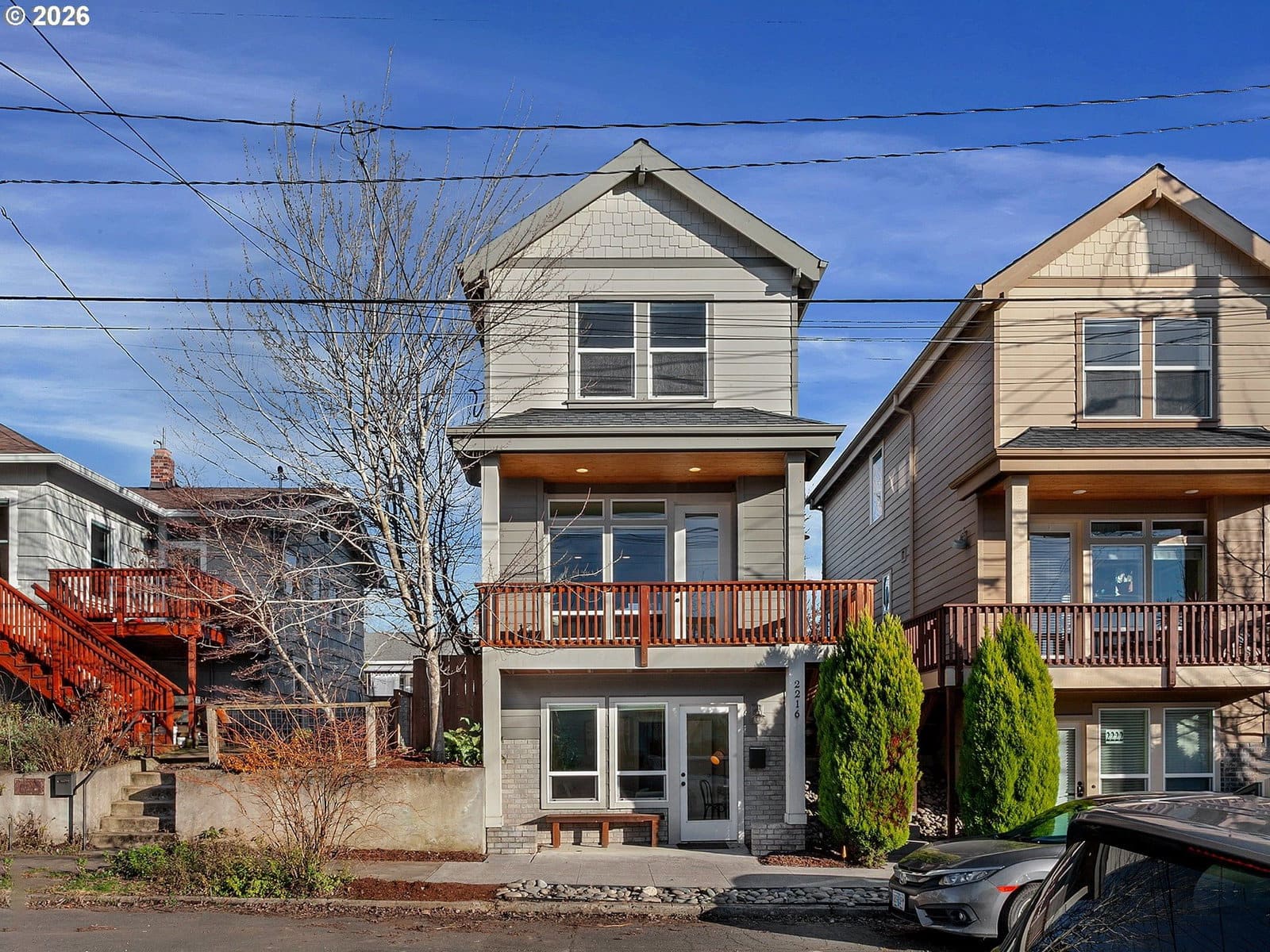 This stylish, light-filled home near Mt. Tabor offers 3+ bedrooms and 2.5 baths with a layout that’s easy to live in and flexible for today’s needs. The lower level works great as a home office, guest space, or business setup. The kitchen has quartz countertops, stainless steel appliances, and a stackable washer/dryer for everyday convenience. Upstairs, vaulted ceilings give the bedrooms an open, airy feel. Enjoy a large front deck that feels like another room, plus a fenced backyard with space to garden, grill, or dine outside. Just blocks to SE Division, Mt. Tabor Park, trails, and all your favorite neighborhood spots. [Home Energy Score = 7. HES Report at https://rpt.greenbuildingregistry.com/hes/OR10200577]