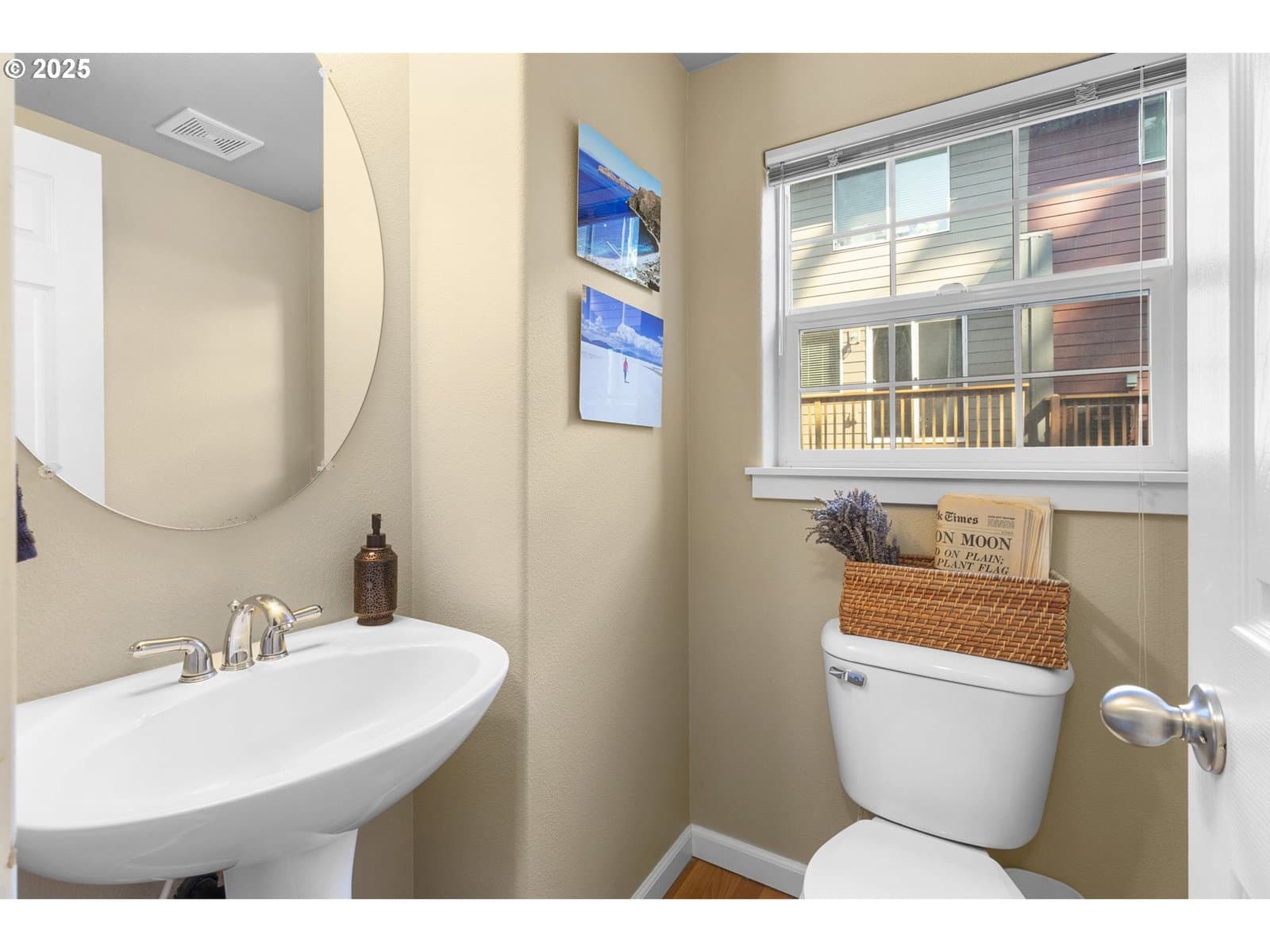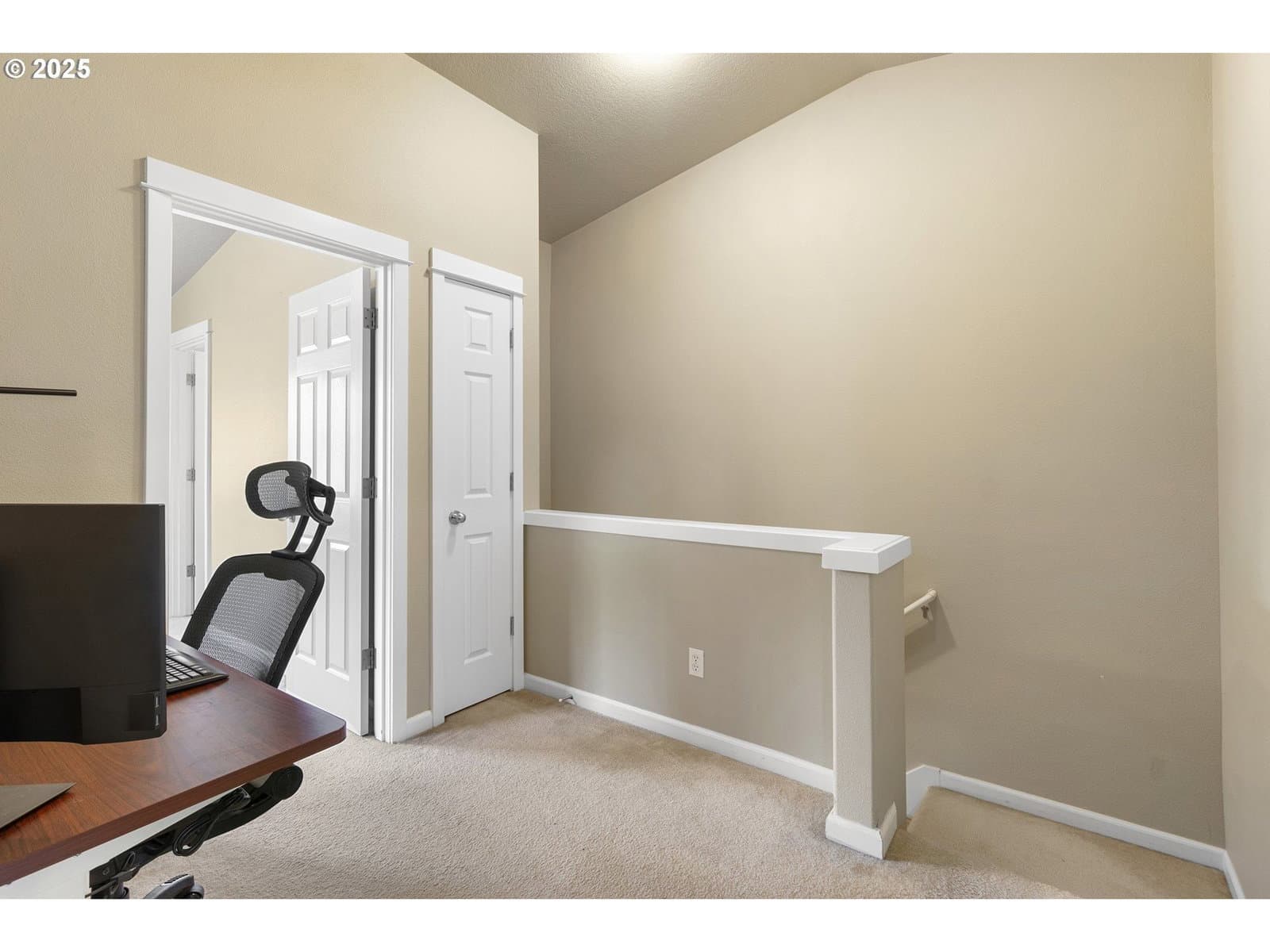 This light, bright end unit has a beautiful open layout and backs to a lush greenspace for a private, oasis vibe. Living room with gas fireplace opens to a deck facing the trees. Tasteful laminate floors throughout the main floor nicely tie the spaces together. Well-functioning kitchen has a gas range, island with seating and a large pantry. A large dining area completes the nice flow. Upper level has two large, vaulted primary bedroom suites and a generaous loft area that works great as an extra office or reading space. Convenient, large upper level laundry room. Central heating and cooling, desireable schools and fantastic neighborhood pack in a lot of value at this approachable price.