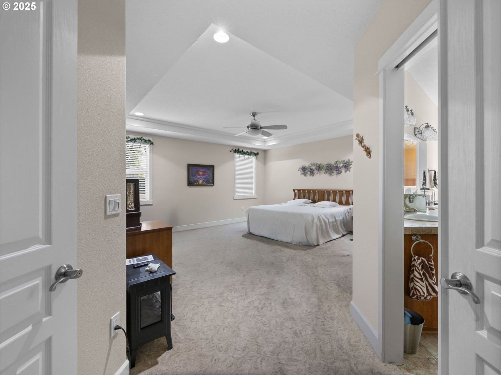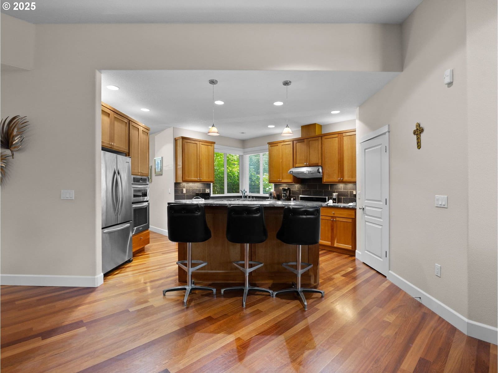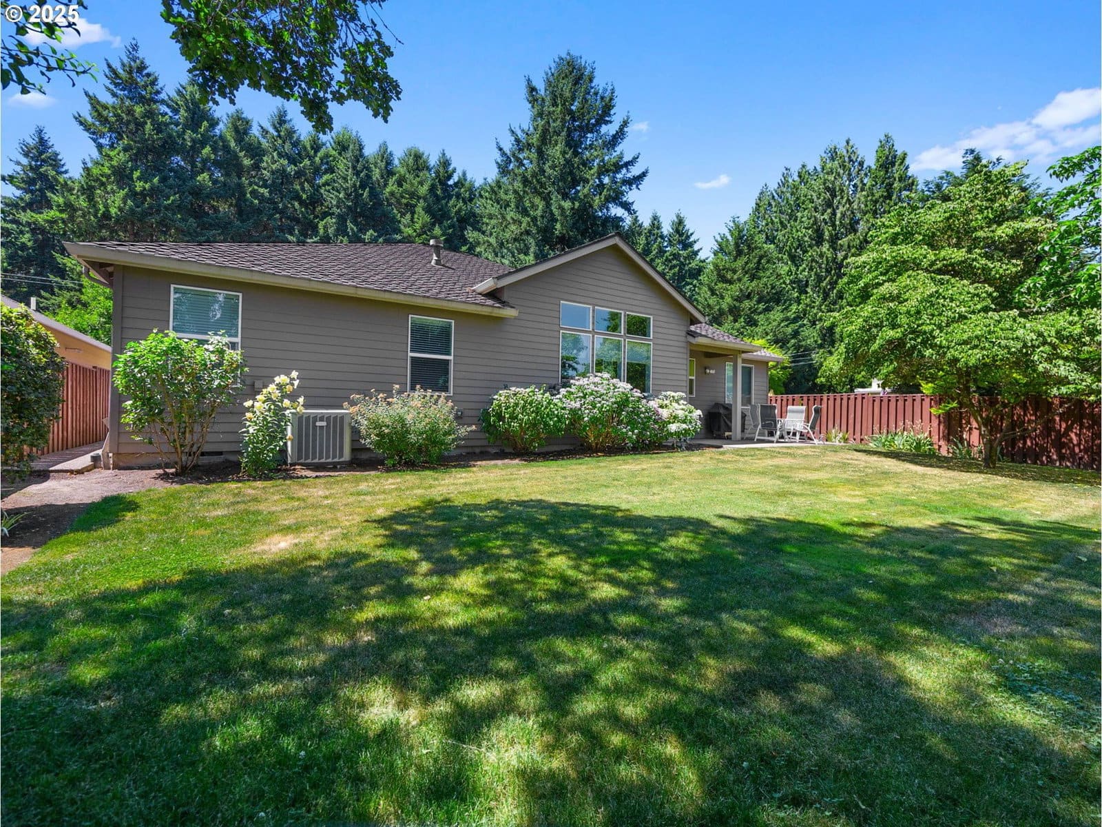 Welcome to this one-owner custom ranch home in a beautifully maintained and sought-after neighborhood in Tigard. Thoughtfully designed and meticulously cared for, this 2,337 sq. ft., 3 bedroom and 2 1/2 bath home offers comfort, quality and tons of natural light throughout. Inside, enjoy 11' ceilings with custom lighting, Brazilian cherry hardwood floors, surround sound throughout, and a whole-house fan plus furnace for year-round comfort. The spacious kitchen features granite countertops, cherry cabinets with lighting below, stainless steel appliances, gas cooktop, double oven and a large island- perfect for entertaining. The primary suite is a true retreat with double-door entry, jacuzzi tub, dual vanities, walk-in shower, and a generous walk-in closet. The family room features a gas fireplace, built-in shelving, large windows and a door to the backyard. Step outside to enjoy this beautifully landscaped and private yard, where a charming shed with dedicated service awaits- ideal as a she shed, studio, or workshop. A full sprinkler system makes maintenance a breeze. The 3-car garage has a perfect setup for a workspace and has a door to the outside. New 50-year roof was installed in 2023. This home blends elegance, function, and pride of ownership- it's a place to love for years to come.