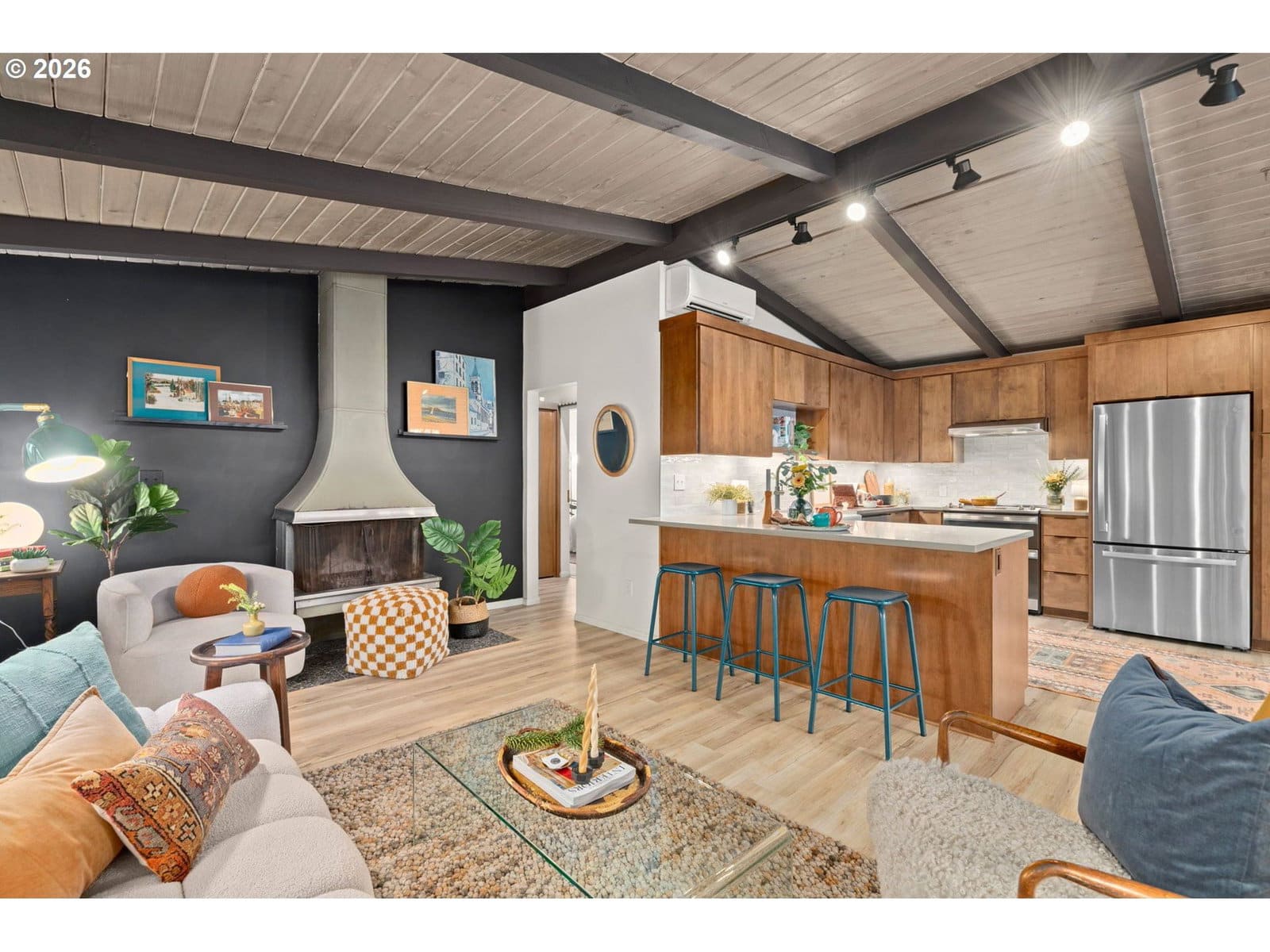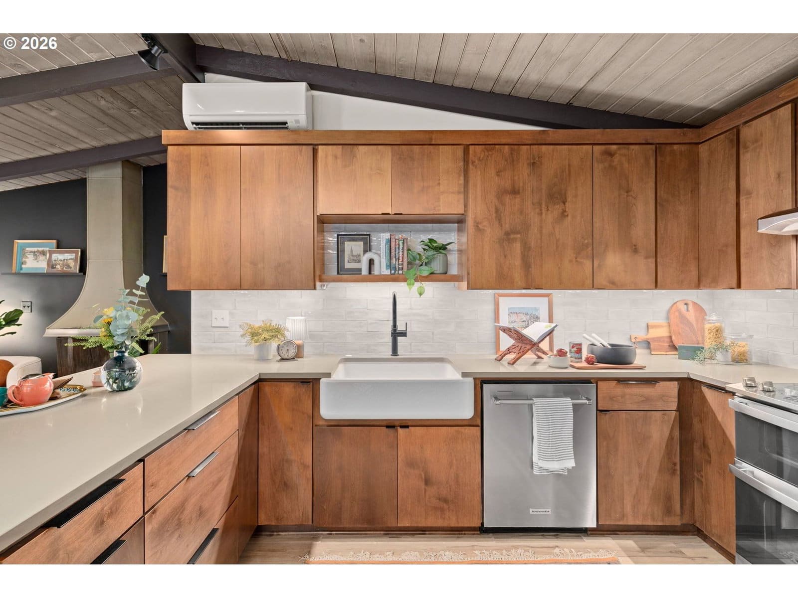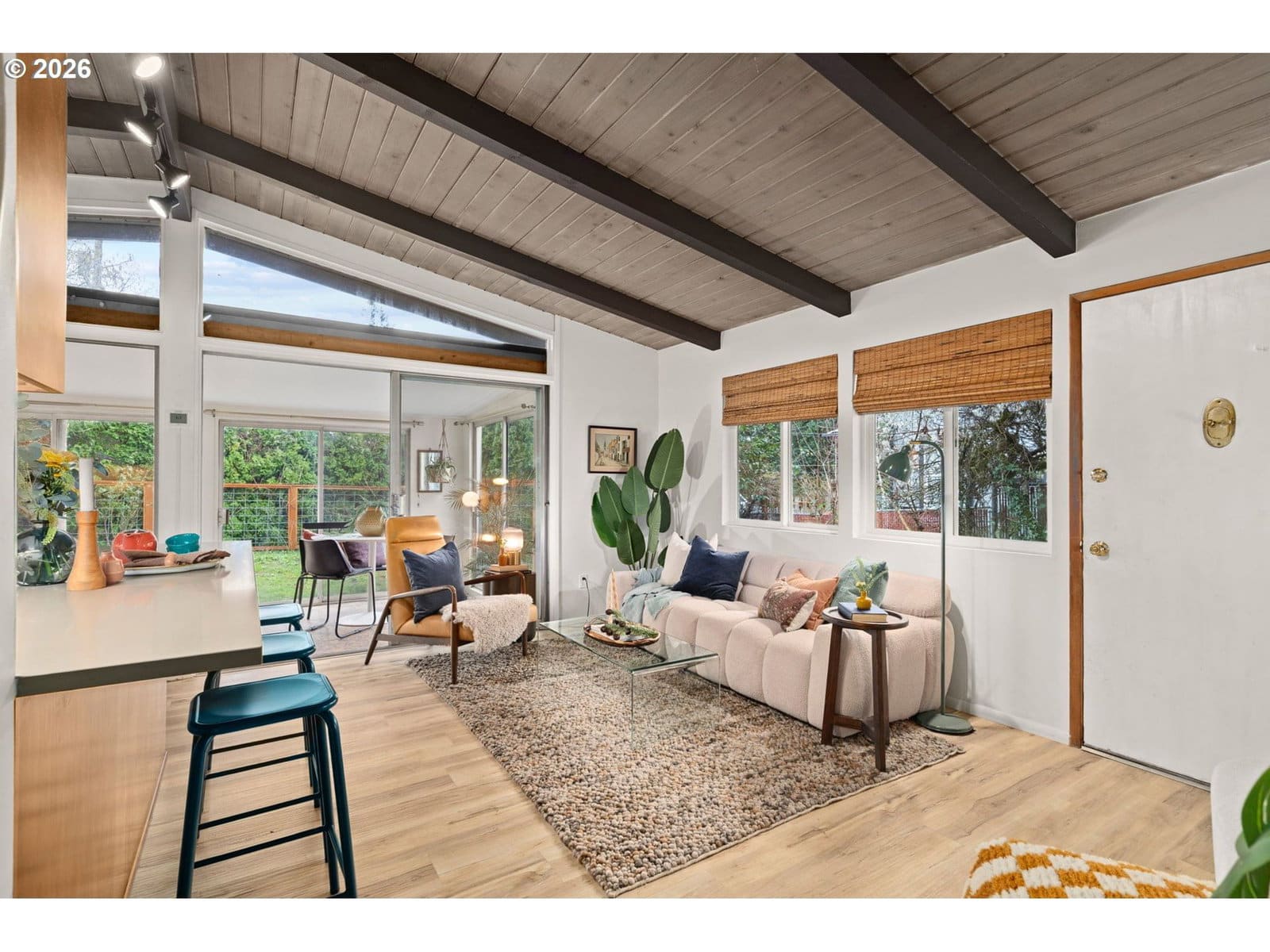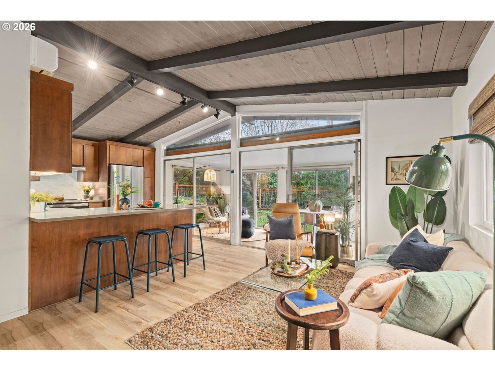 If cute as a button was a darling mid-century in Oregon City, you've found it. Remodeled while still flush with original features - that pink tub! A private cabin in the woods feel, but oh so close to downtown - bring the pups! A total win-win. Full kitchen remodel and all new plumbing from 2023, brand new windows in 2025, energy efficient mini-split for heating and cooling 2023, metal roof, solar panels, rain barrels, and so much more! This home is ready for it's next chapter and sure to please. Welcome to Oregon City, we think you'll like it here.
