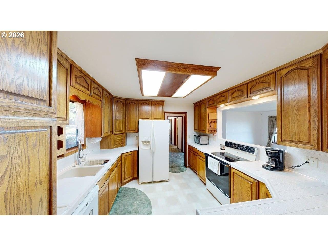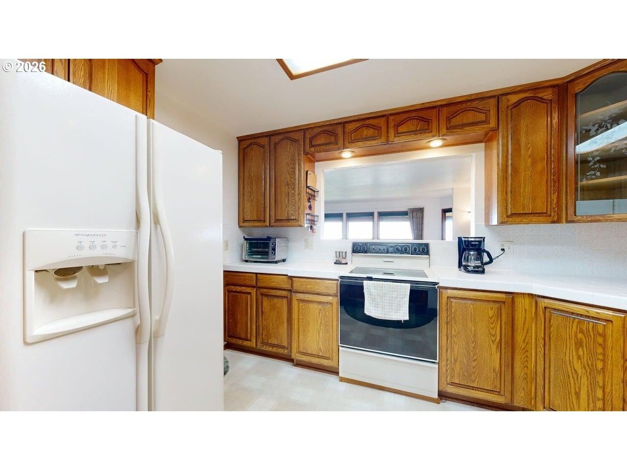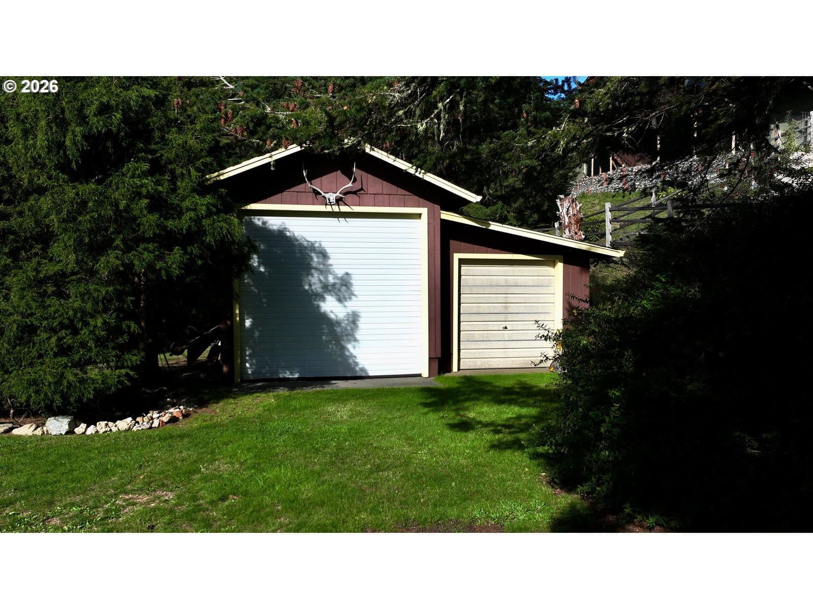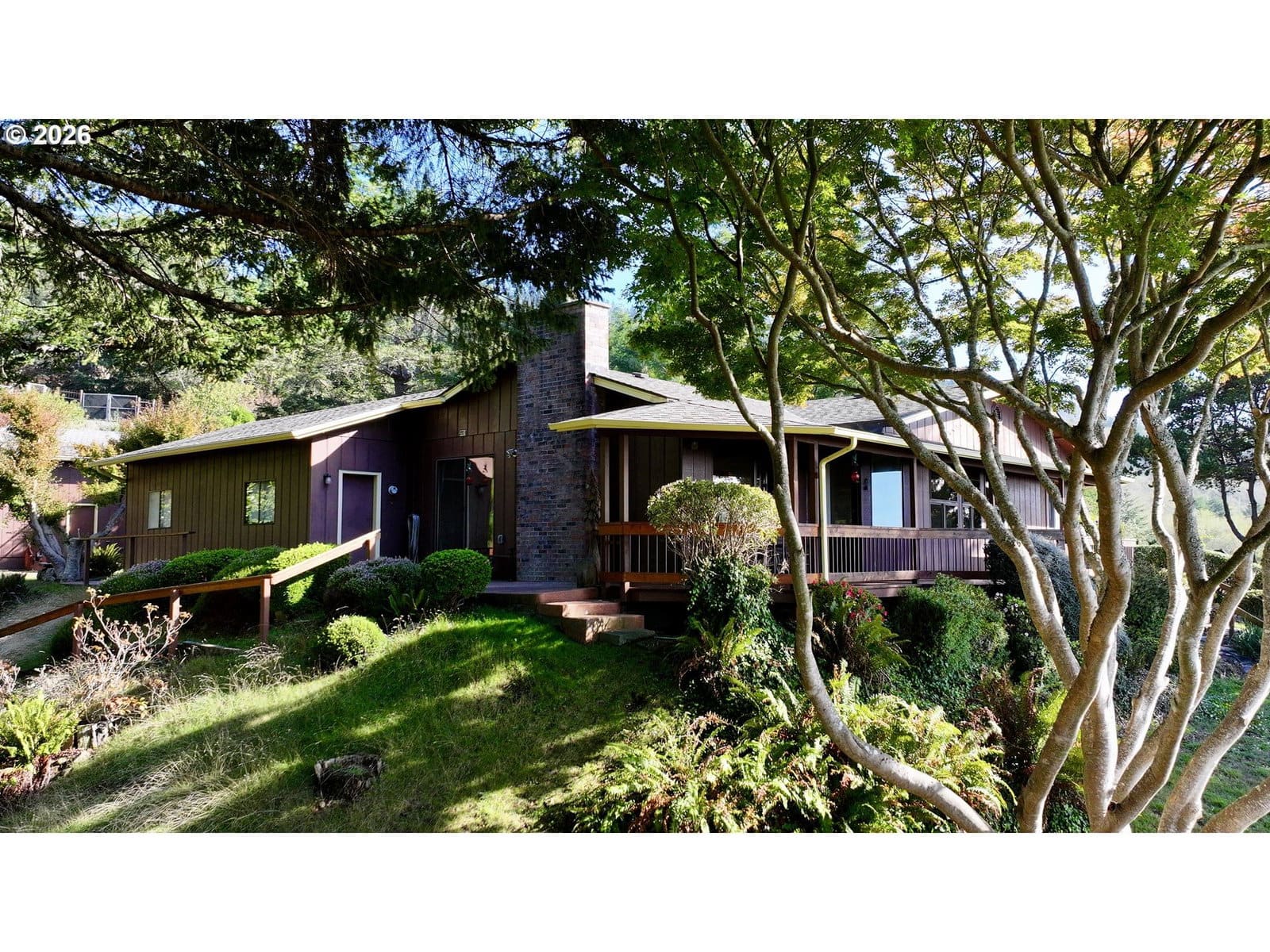 Oceanview home with a spacious shop, set in a beautiful and established neighborhood on 1.16 acres. The detached shop is approximately 732 sq ft and up to 30 feet deep, and it is ideal for hobbies, extra parking, a wood shop, or a creative space. RV Parking!The primary suite features a peek of the ocean through a large picture window and includes an ensuite with a soaking tub and walk-in shower. This three-bedroom, two-bath home offers a smart, functional layout, with a family room that doubles as the dining area. Vaulted ceilings with beautiful exposed beams create warmth and character, while a sliding glass door opens to a covered deck where expansive ocean views take center stage.The kitchen is perfectly positioned with a pass-through design so you stay connected to the living space and never miss the views or the action. Outside, stamped concrete leads to the covered deck, making it easy to enjoy indoor-outdoor living year-round.The yard is thoughtfully landscaped with mature trees and shrubs, offering privacy and a peaceful setting. This home is priced to sell and ready for your personal touch and vision. Do not miss this one!Ask to see the 3D tour.