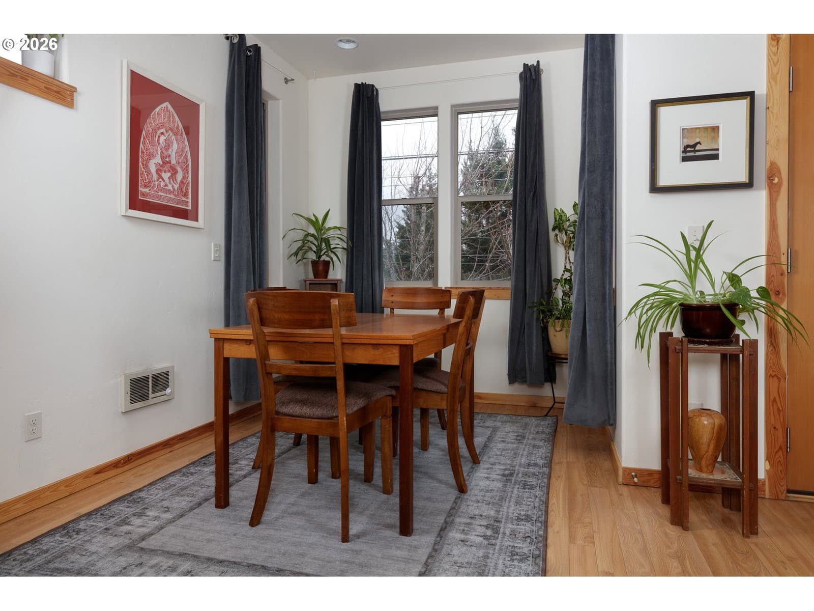 **Please submit highest and best offer by 5pm 2/15**This beautiful Hood River home is filled with natural light from expansive windows and skylights, creating bright and functional living spaces throughout. A peekaboo view of Mt. Adams adds to the setting, while outdoor living is supported by a patio designed for gatherings and barbecuing within the Columbia River Gorge landscape.The property is located within a quarter mile of walking trails and approximately one mile from local wineries, offering convenient access to outdoor recreation and regional amenities. The yard includes raised garden beds for growing food, established ornamental cherry trees, and a mature cherry tree that produces seasonal fruit. Spring and summer bring consistent blooms and greenery throughout the yard. Access to community green space included as well. An attached, heated garage adds year-round usability and storage. A strong neighborhood setting, access to nature, and thoughtful outdoor features make this property a rare find.