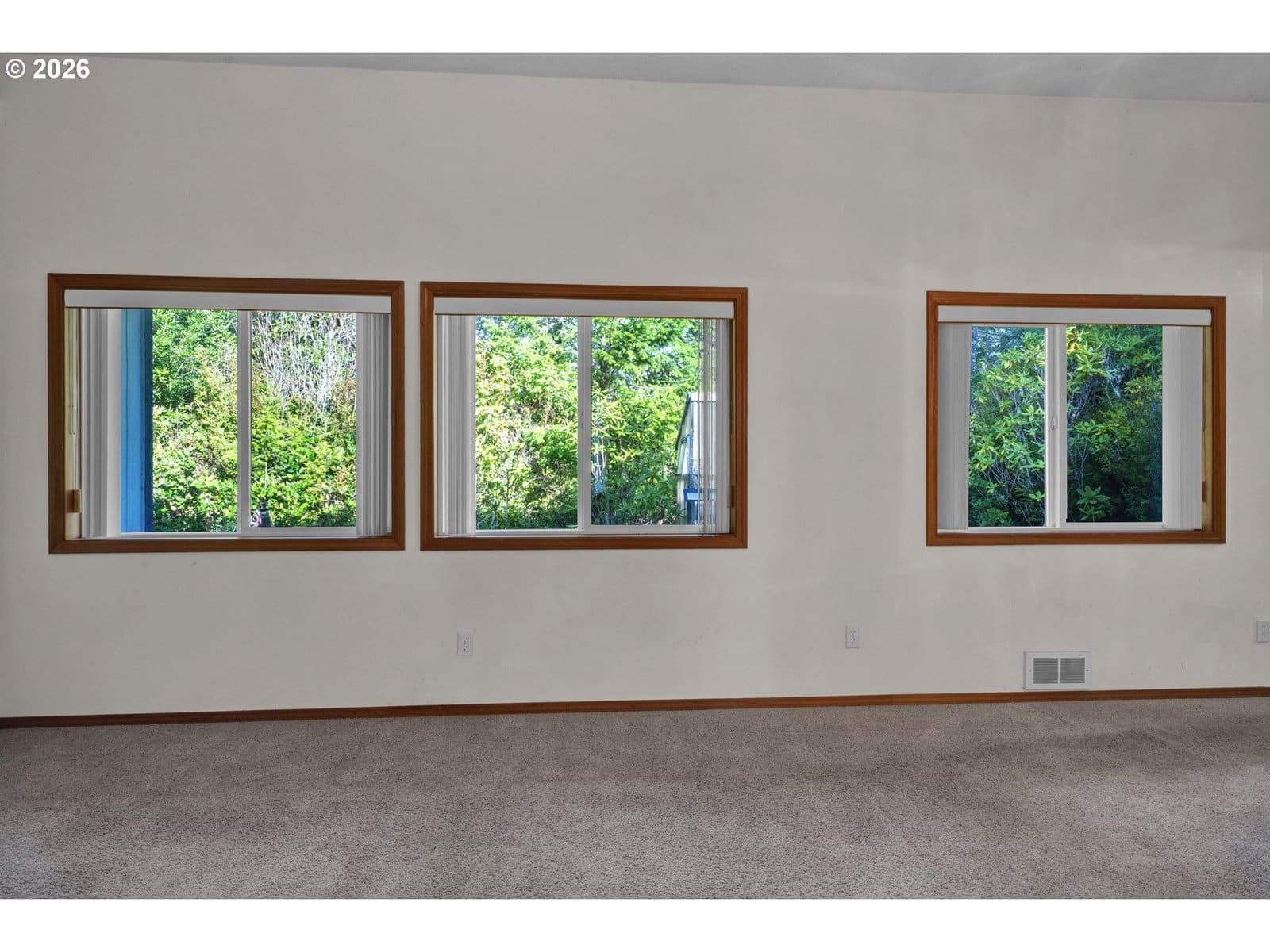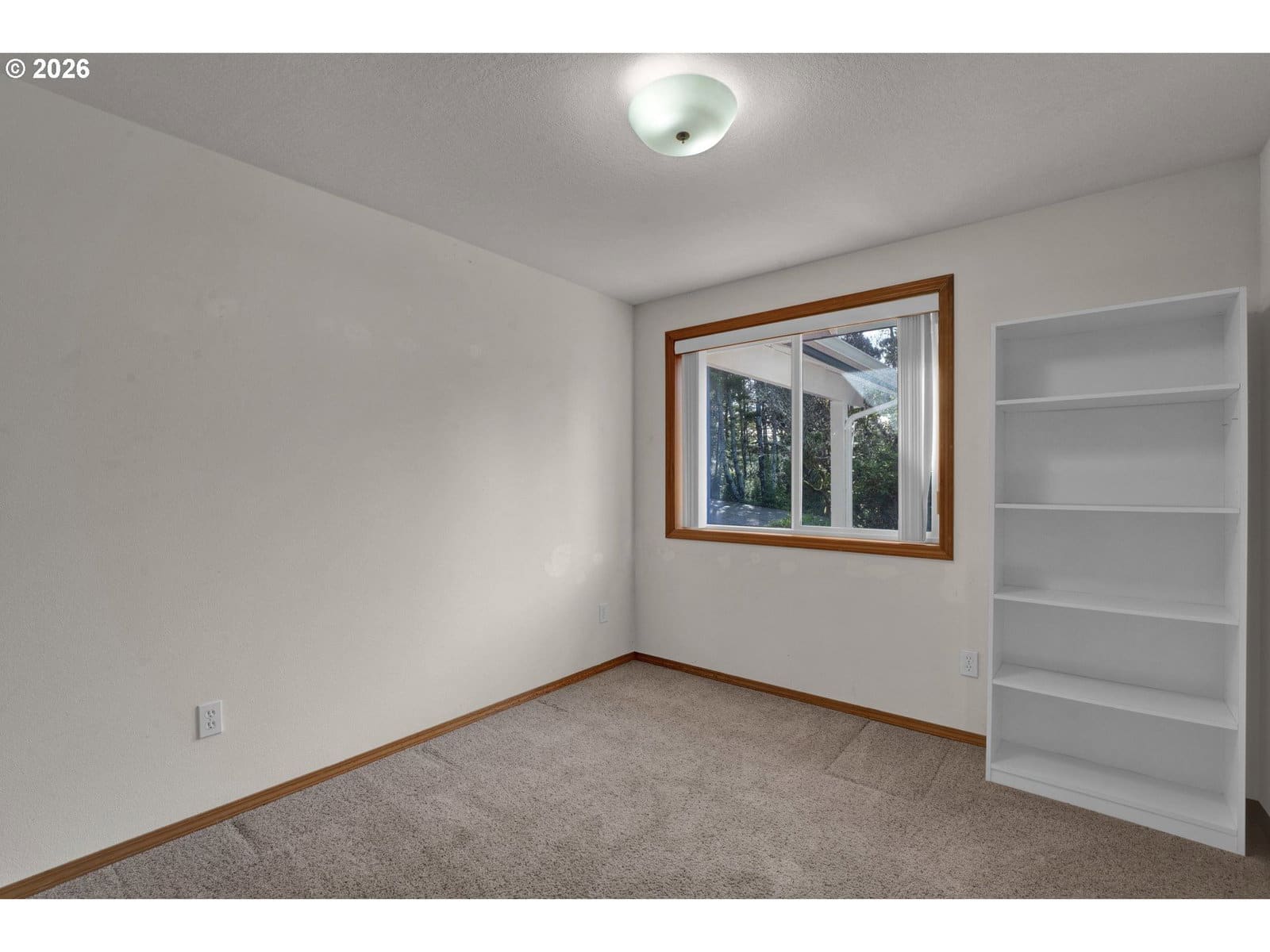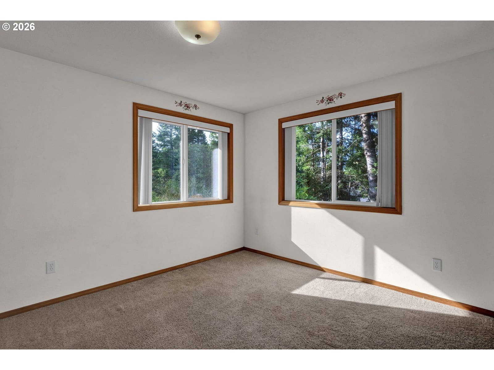 Unique and full of character, this charming 3 bedroom, 2 bath home offers 1,737 SqFt of inviting living space in a peaceful coastal setting. A welcoming wraparound front porch sets the tone, perfect for morning coffee or relaxing evenings.Inside, you’ll find both a spacious living room and a separate family room — each featuring vaulted ceilings, skylights, and custom built-ins that create an open, light-filled atmosphere. The family room is anchored by a cozy wood stove, adding warmth and charm. Just off the main living area is a dedicated office space with built-ins, designed with a wide interior opening that keeps it connected to the home while still offering functionality and focus.The primary suite offers comfort and space with three closets, dual sinks, a step-in shower, and a sliding glass door that leads directly to the deck. Two additional bedrooms provide flexibility for guests, hobbies, or creative space.An oversized attached two-car garage includes a workbench and ample storage. Outdoors, a greenhouse awaits gardening enthusiasts, and the property backs to wetlands, offering exceptional privacy and a serene natural backdrop.A truly distinctive home combining warmth, space, and tranquility.