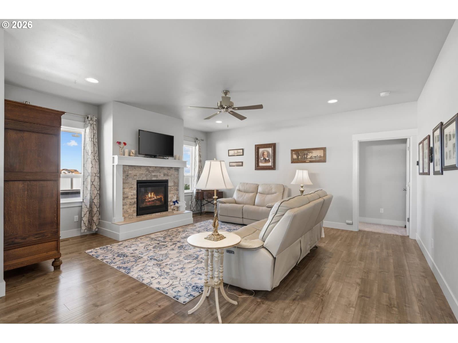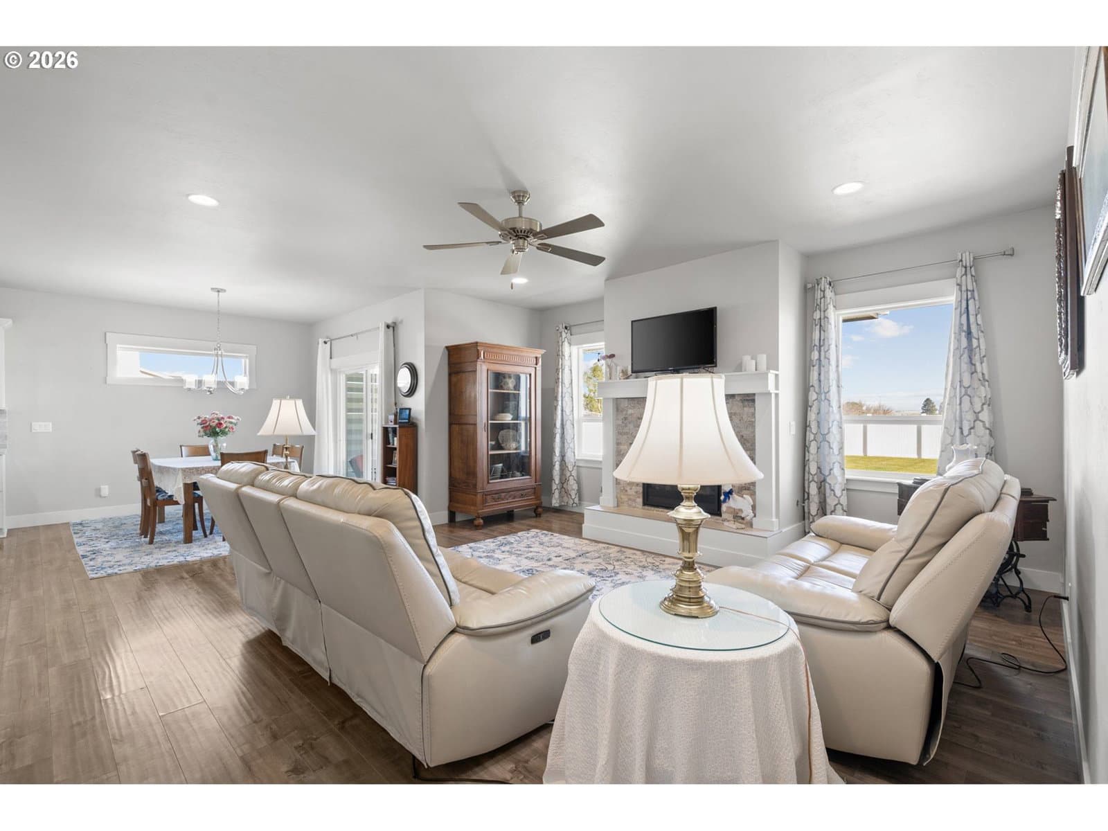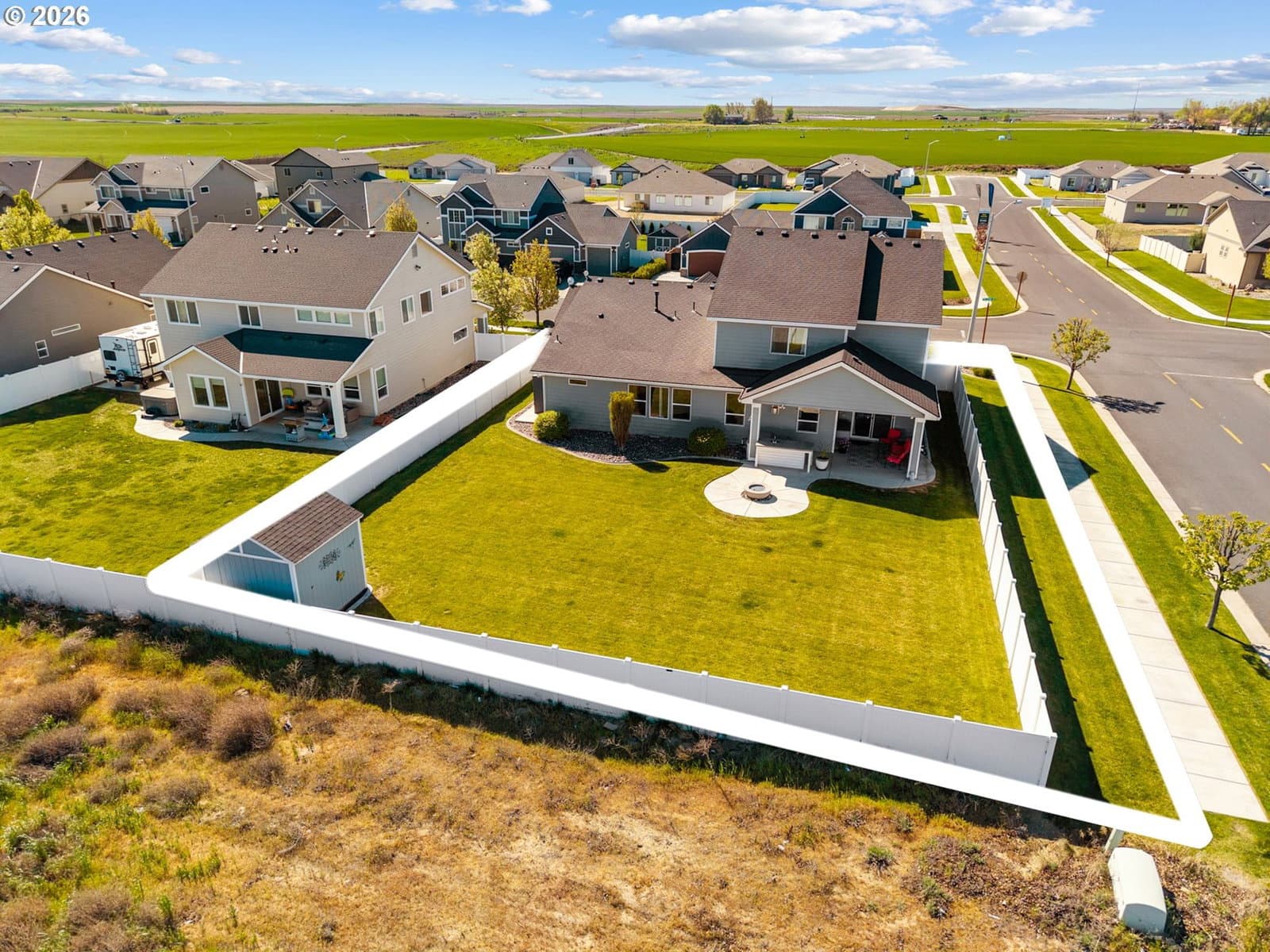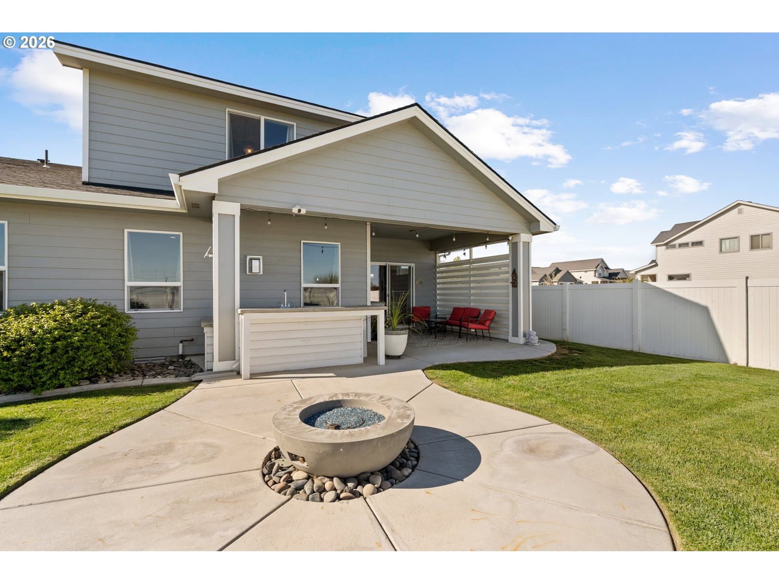 **Spacious, refined, and thoughtfully designed for both everyday living and elevated entertaining** Welcome to this spacious and well-designed home in Boardman, Oregon offering the flexibility, comfort, and layout today’s buyers are searching for. With nearly 2,600 sq ft, a main-level primary suite, dedicated office, and large bonus room, this home provides room to live, work, and entertain with ease. The open-concept kitchen features quartz countertops and generous prep space, flowing seamlessly into the dining and living areas, ideal for everyday living and hosting. The layout keeps everyone connected while still offering defined spaces for comfort and function. Step outside to an outdoor living space designed for gathering. The covered patio includes a custom windbreak for added comfort, along with a built-in outdoor bar featuring prep space and a sink for easy hosting. The extended concrete patio leads to a dedicated fire pit area, perfect for summer evenings, barbecues, and entertaining. Situated on a large corner lot with a fully fenced yard, this property offers space, privacy, and flexibility. Upstairs, additional bedrooms and an oversized bonus room provide options for a media room, guest space, or potential fifth bedroom. Additional features include new kitchen appliances, upgraded smart thermostats, and added gutters. With its size, layout, and functional outdoor living space, this home stands out among Boardman, OR homes for sale and offers a unique opportunity for buyers seeking space, comfort, and everyday livability. HOA currently managed by Eagle Crest Property Management and possibly going through dissolution. Buyer to complete due diligence to confirm status and current dues/terms.
