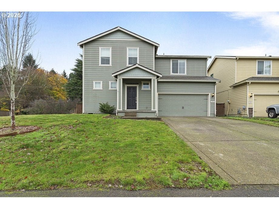 This 2018-built two-story home in the Meriwether community sits on a spacious 5,681 sq ft corner lot and offers 1,924 square feet of living space with 3 bedrooms, 2.5 baths, plus a loft that’s been converted into a handy fourth bedroom or bonus room. The attached two-car garage and fenced backyard with patio give you plenty of room to spread out. Inside, the open main floor flows nicely from a kitchen featuring dark cabinets, laminate counters, a big island, and appliances right into the living and dining areas. Upstairs you’ll find the primary suite with its own bath and walk-in closet, two more bedrooms, the laundry area, and that flexible bonus space. Low-maintenance siding and a composition roof keep things simple on the outside. Forced-air gas heat and all public utilities are in place. Located in a great spot near I-5, Woodland schools, and the neighborhood’s clubhouse, pool, playground, and sports court.