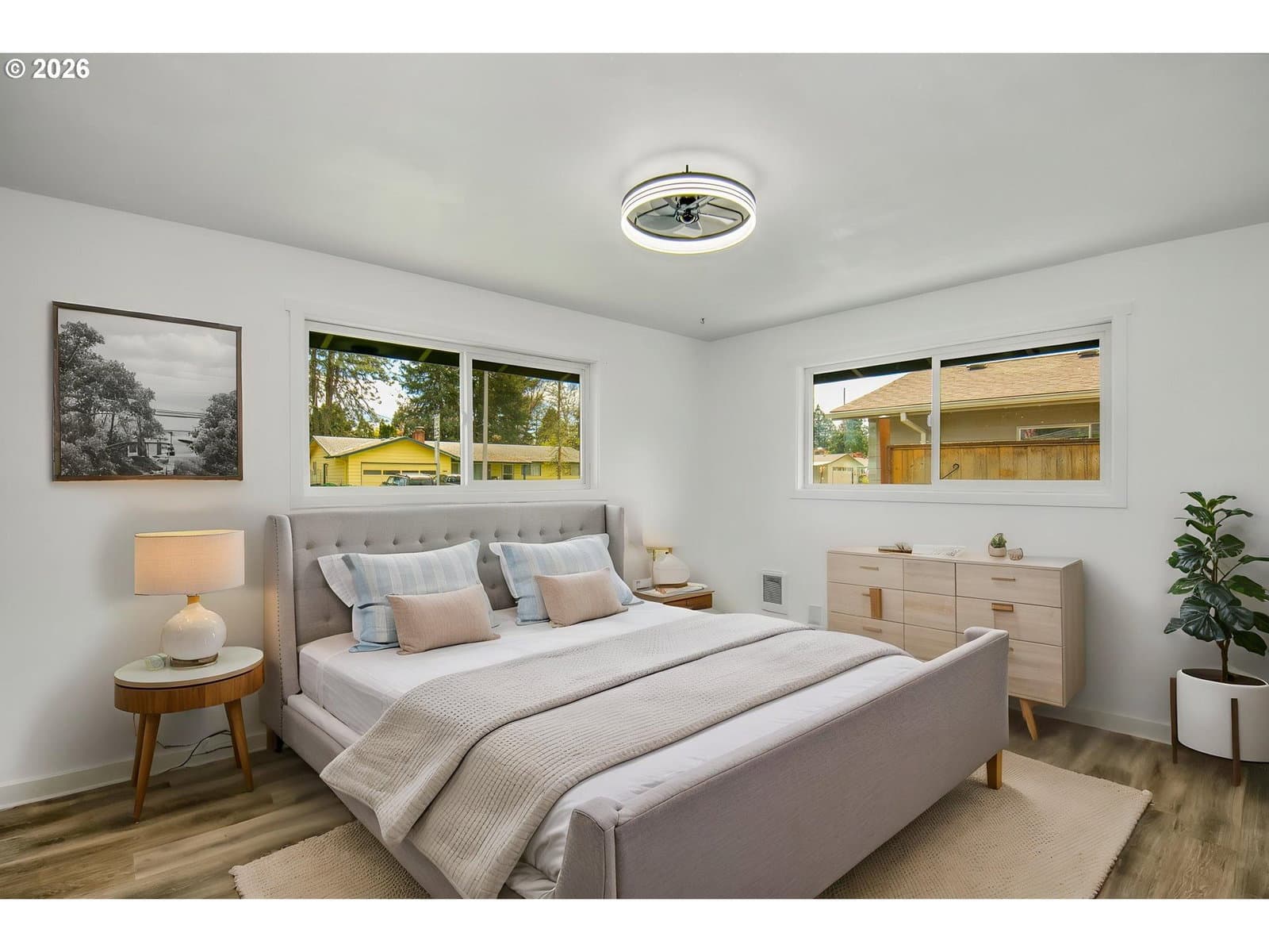 This is the one you've been waiting for! Very solid and well maintained 2 bd, 1 1/2 bath, 1 level home on almost 1/2 acre level lot with double car garage and RV/boat parking. Zoned R7, lot backs up to Bonnie Lane with possible development opportunity. Buyer to verify with city of Forest Grove. This move-in ready ranch has newer vinyl windows, new exterior paint and a well maintained 10yr old roof so you can be assured many years of carefree living! The interior has fresh, classically neutral paint, new flooring throughout and a brick wood burning fireplace to cozy up to on chilly nights. Preparing meals is a breeze in the updated kitchen with modern stainless steel appliances and breakfast bar. There are 2 comfortably sized bedrooms adjacent to the freshly remodeled bathroom. Another 1/2 bath and laundry area is available off the deep 2 car garage. Think big and make your dreamy primary suite or income producing ADU a possibility! Outside you will find a huge covered patio perfect for summer cookouts and making memories. There are several outbuildings and a shed with power already hooked up that would make a great shop, creative art space or whatever your heart wants! With a perfect mix of sun and shade, opportunities abound to get back to the land and create a gorgeous garden that will be the envy of the neighborhood. Don't wait to make this fine house your home! Furnished photos virtually staged.