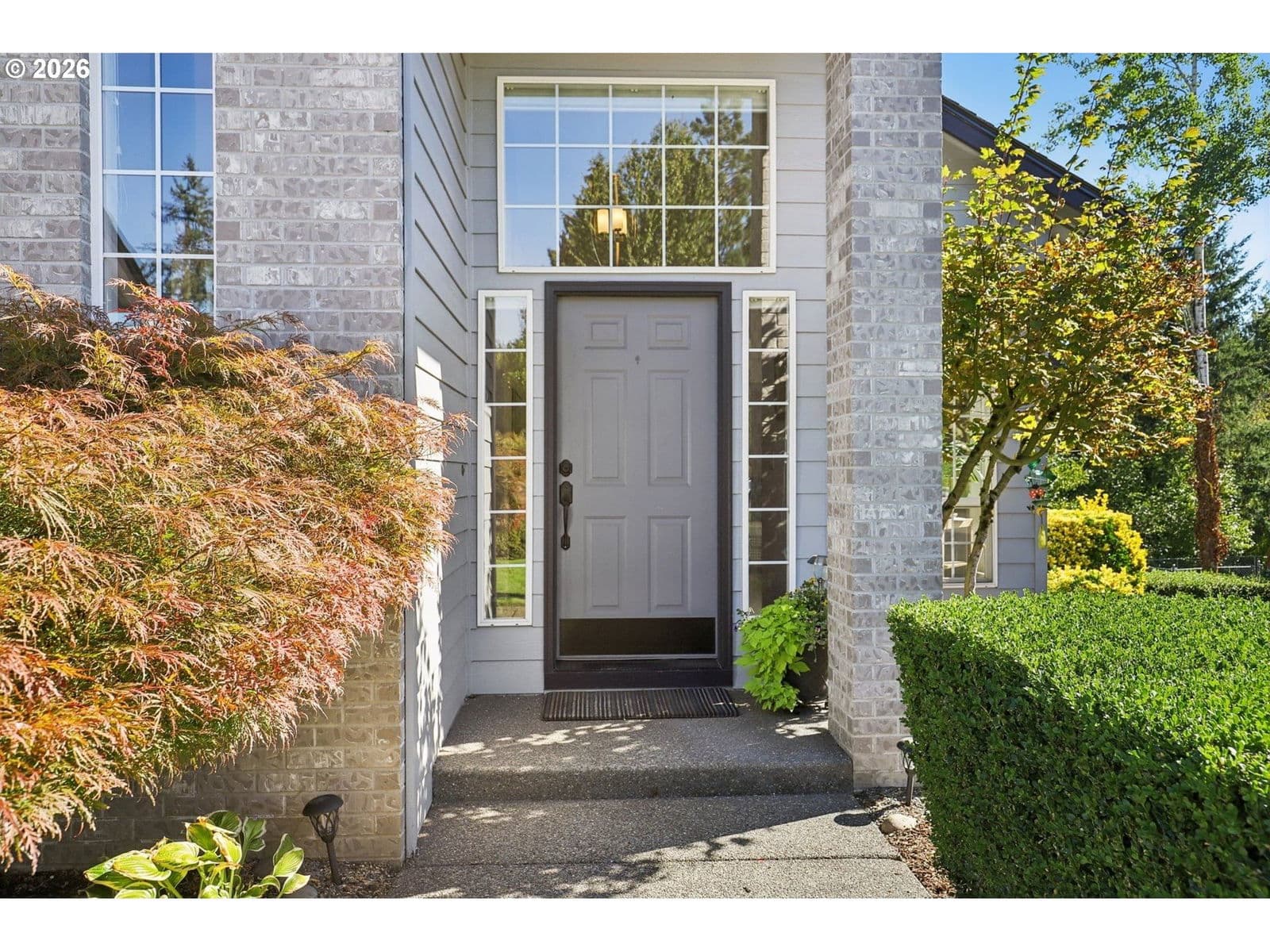 Tucked away on a quiet cul-de-sac, this well-maintained 2-story home offers privacy, functionality, & an exceptional location. Situated on a greenbelt lot backing to Cougar Creek, the property provides peaceful territorial views & added privacy, w/ convenient access just one block away to the Cougar Creek path.The versatile floor plan includes a Den/bdrm on the main level, ideal for guests, multi-generational living, or a home office. Hardwood floors enhance the main living areas, & the layout offers comfortable living & entertaining spaces throughout. Enjoy the private backyard setting with a deck designed for outdoor gatherings & relaxation. Additional features include a 3-car garage, newer roof, newer exterior paint, & central air conditioning for year-round comfort. The home is plumbed for central vacuum & pre-wired for a security system. Located within a top-rated school district, this property combines a desirable setting with thoughtful updates and strong curb appeal.