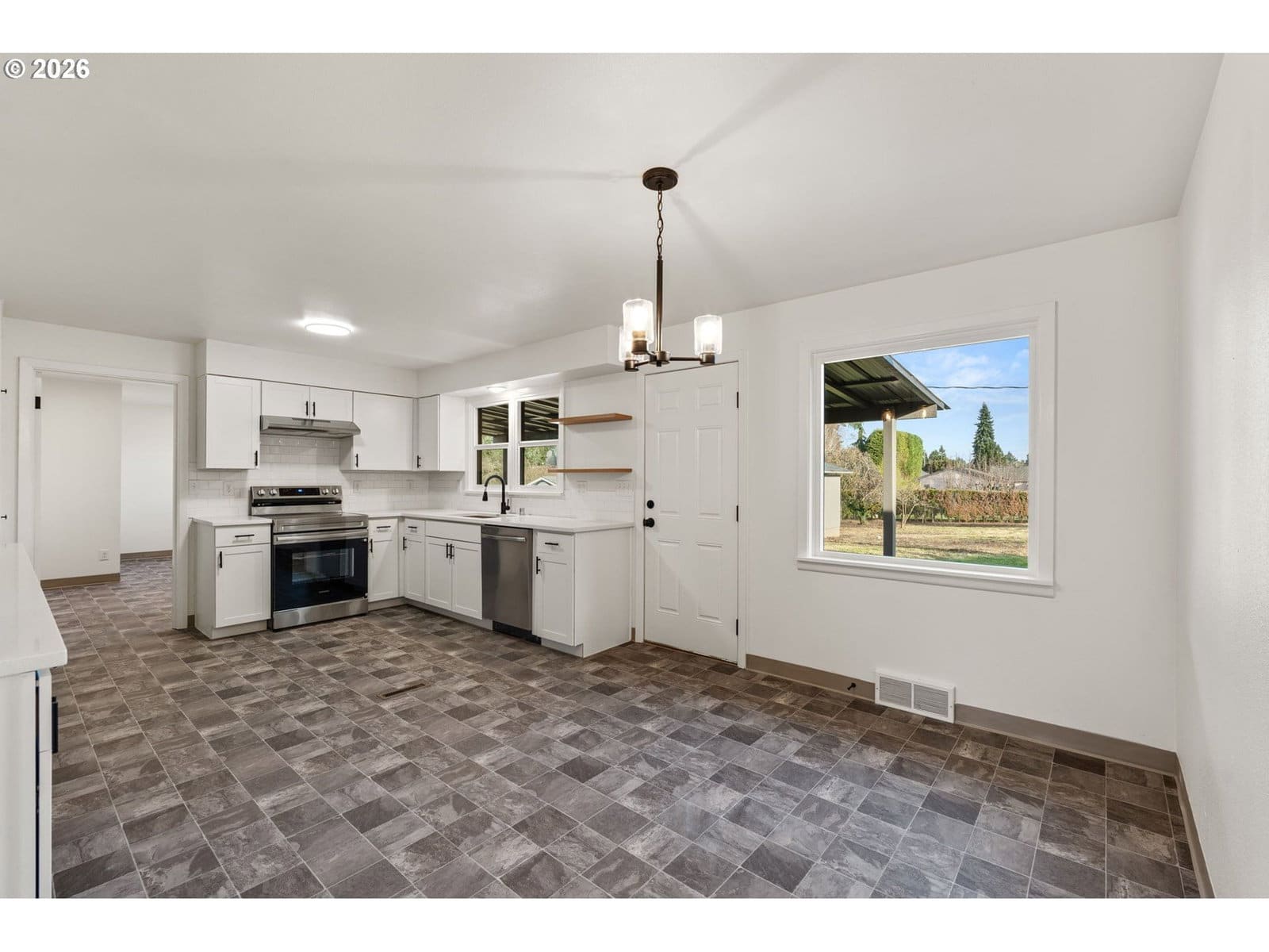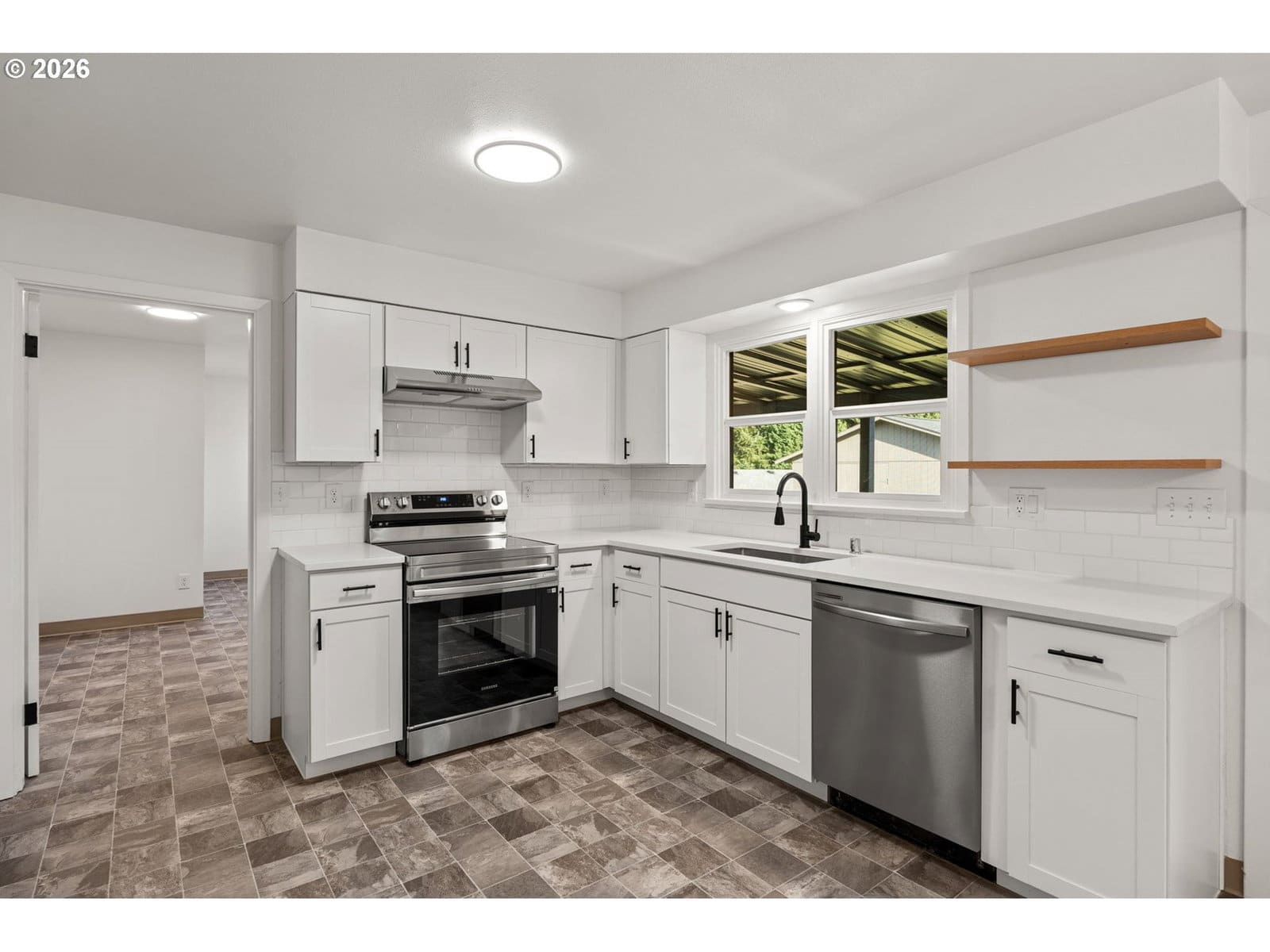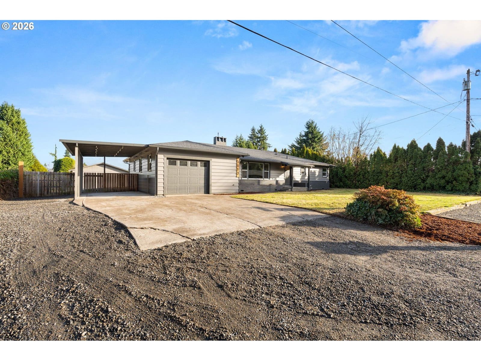 Updated ranch on a ½-acre dividable lot with R-9 zoning allowing additional lots (buyer to verify with county). New interior and exterior paint, flooring, and a remodeled kitchen with quartz countertops and stainless-steel appliances. Living room features a wood-burning fireplace and refinished hardwood floors.Downstairs access to crawl space provides excellent storage or workshop space. Carport with possible RV parking, covered patio, and a large shop positioned to maintain future build-out potential, with possible ADU conversion (buyer to verify). Rare and versatile opportunity.
