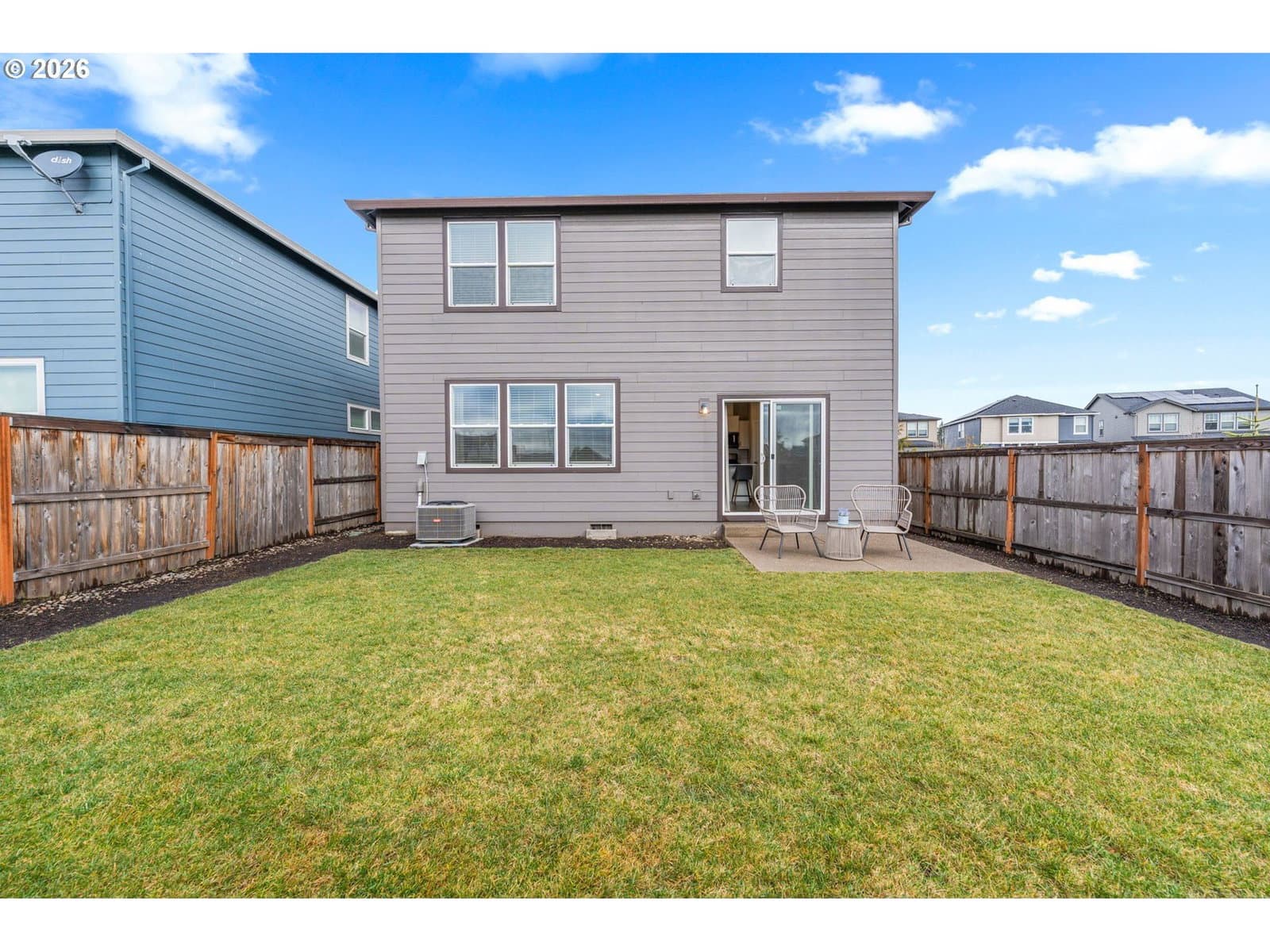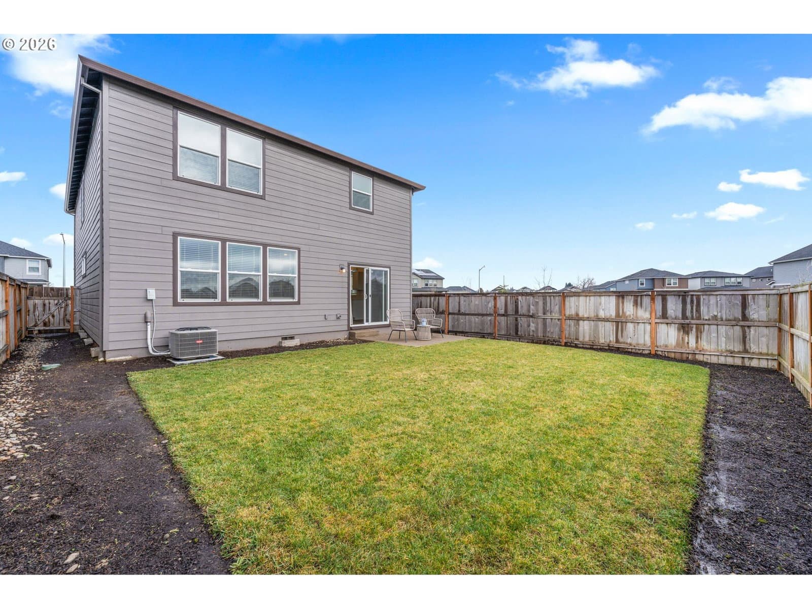 Built in 2022, this 4 bedrooms + bonus, 2.5 bath home offers 2,335 sq ft of thoughtfully designed space. Quartz countertops elevate the kitchen, & custom woodwork walls bring personality and warmth. The primary suite features a spacious walk in closet with custom shelves for added comfort. Backing to a green space and near a recreation area, this home also offers access to community walking paths and playgrounds. With quick access to I-5, you'll love the balance of peaceful neighborhood living and everyday convenience. Fresh to market and better than new.