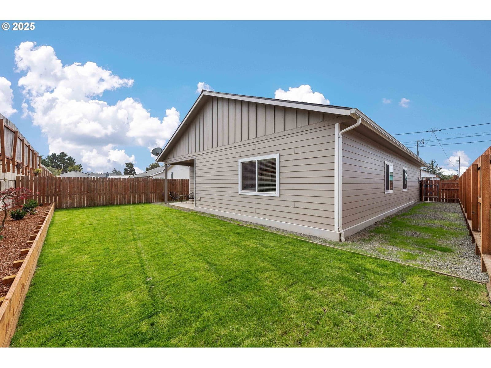 Built in 2015, this beautifully maintained 3 bedroom, 2 bathroom single-level home offers modern comfort, energy efficiency, and low-maintenance living. The front yard is xeriscaped for year-round curb appeal, while the fenced backyard features a covered patio and lush lawn—perfect for outdoor relaxation, gardening, or play. The yard is also equipped with a sprinkler system. Inside, the open floor plan creates a seamless flow between the spacious living room, dining area, and kitchen. The kitchen is designed for both style and function with granite countertops, stainless steel appliances, a tile backsplash, and abundant cabinetry. The bedrooms have all brand new carpet. The private primary bedroom includes a large walk-in closet and ensuite bathroom, while two additional bedrooms and a full bath provide flexibility for family, guests, or a home office. Neutral finishes, abundant natural light, and quality craftsmanship make this home move-in ready. Complete with an attached two-car garage and a convenient location close to shopping & schools, this home has modern amenities and everyday practicality. Come see all of the great things the Oregon Coast has to offer, crabbing, fishing, hiking, sand dunes and so much more!