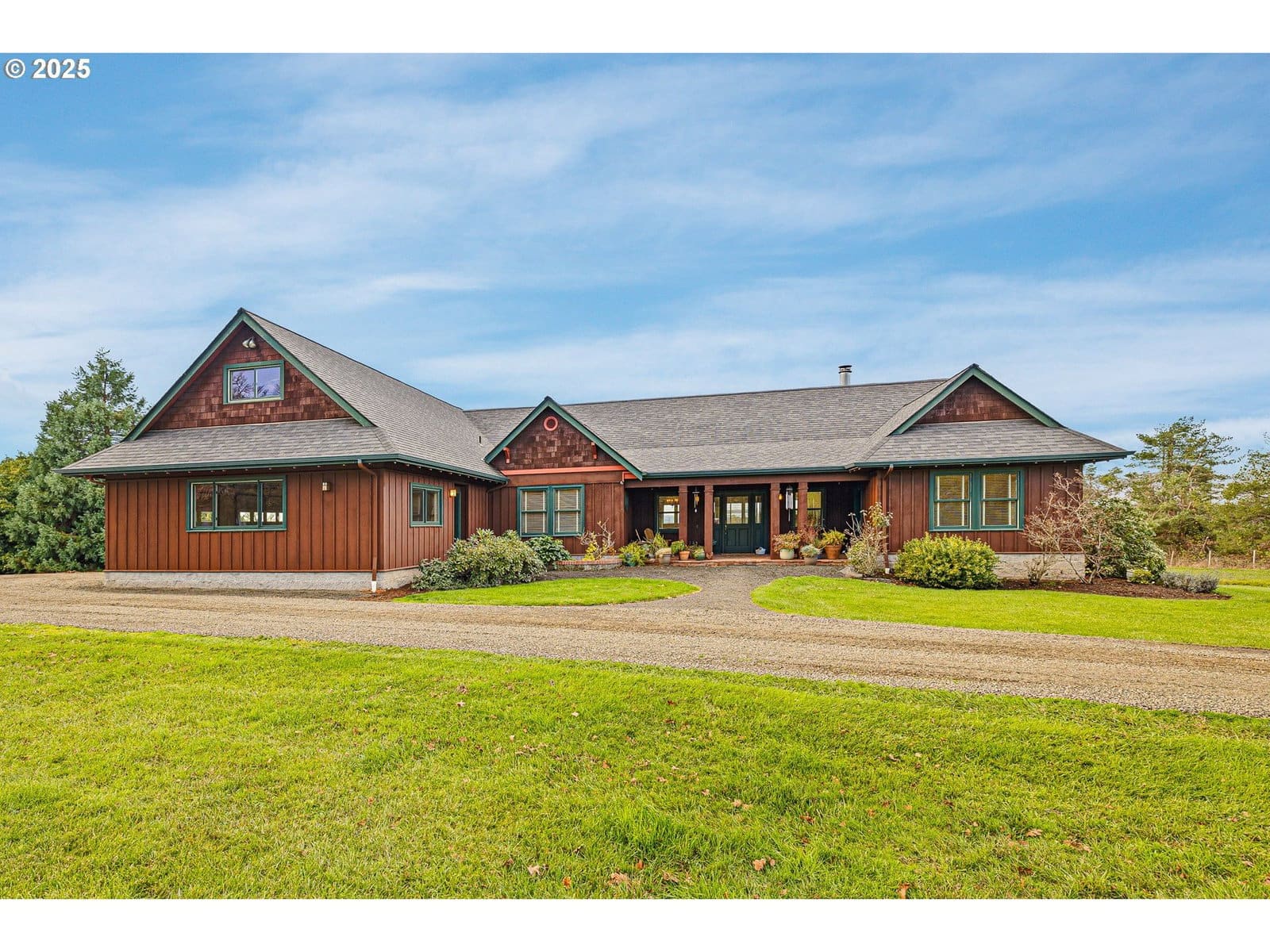 Welcome to your own private retreat just outside Pleasant Hill—where sweeping views, wide-open space, and understated luxury come together on a breathtaking 20-acre property. Tucked quietly off a peaceful country lane surrounded by horse farms and country estates, this custom-built four bedroom, three bathroom, home offers the rare combination of true privacy and everyday convenience.From the moment you arrive, you’ll feel the calm of rural living: panoramic sunset vistas over Spencer’s Butte and uninterrupted natural beauty in every direction. A spacious front porch and huge back deck create inviting spaces to enjoy morning coffee, evening gatherings, and everything in between.Inside, the 2,650-sq-ft main level features an open, light-filled layout designed for comfort and connection. Large windows frame the landscape and bathe the home in natural light. The stunning kitchen—with island and built-in breakfast nook—flows seamlessly into the dining area and the warm, welcoming living room complete with a fireplace. Four bright bedrooms include a beautiful primary suite with a walk-in closet and ensuite bath. A dedicated den offers flexible use as a tv room, home office, guest room, or additional family space, while the generous laundry room and attached two-car garage add everyday convenience. Upstairs, a 557-sq-ft vaulted bonus room expands your possibilities even further—ideal for a playroom, gym, studio, extra bedroom, or exceptional storage.Perfectly situated within the Pleasant Hill School District and just 3.5–5 miles from Pleasant Hill schools, shops, and amenities, this home offers an effortless balance between secluded country living and quick access to daily needs.With its expansive acreage, stunning vistas, and quiet tucked-away setting,this is a rare opportunity to own a truly peaceful retreat—without sacrificing convenience.Schedule your private tour today and experience the beauty, privacy, and possibility of this remarkable home for yourself.