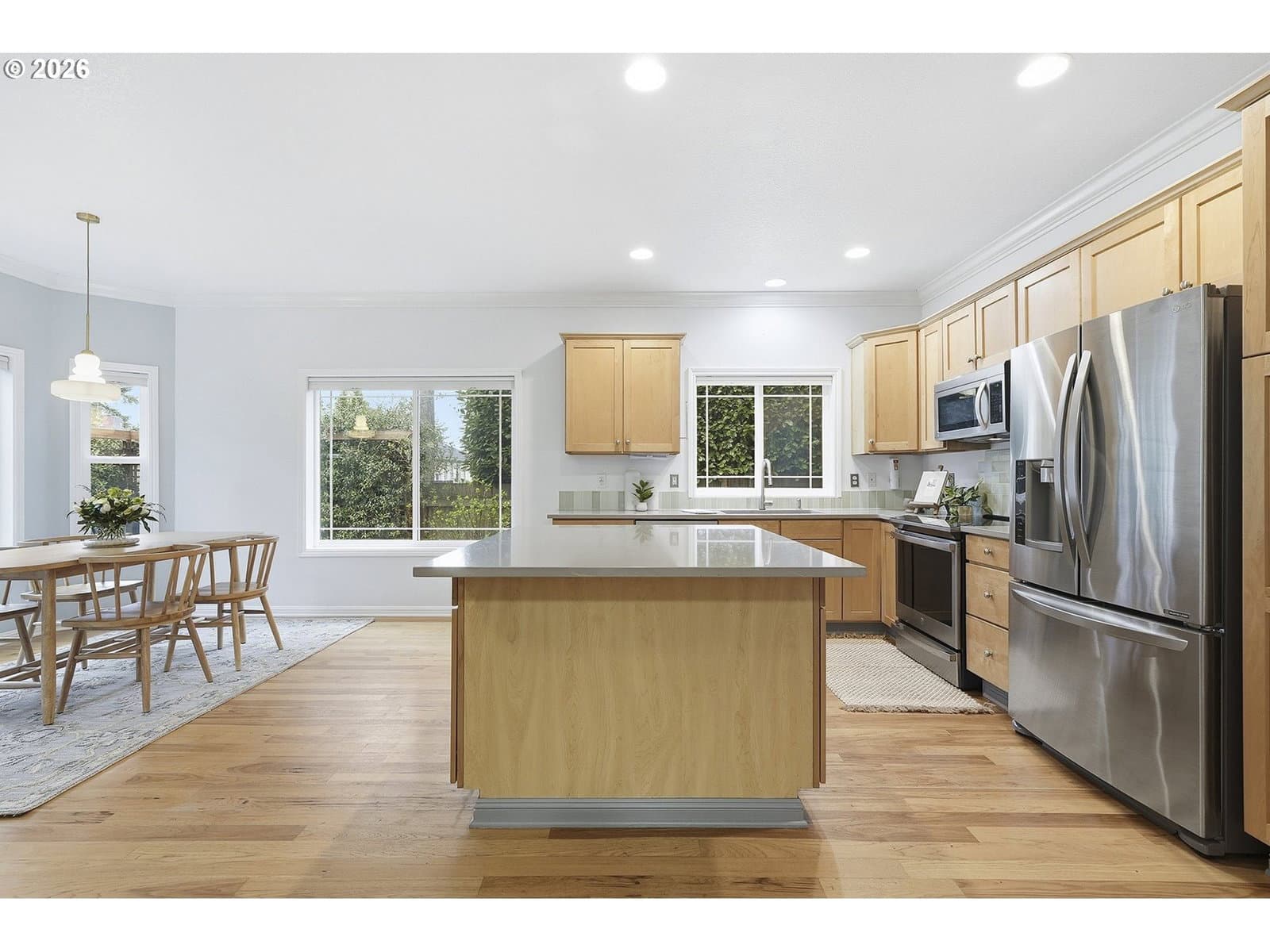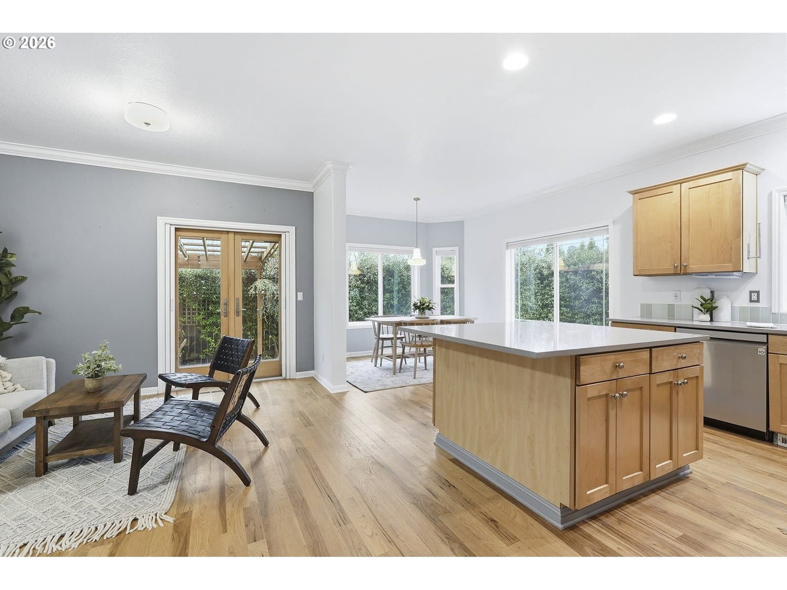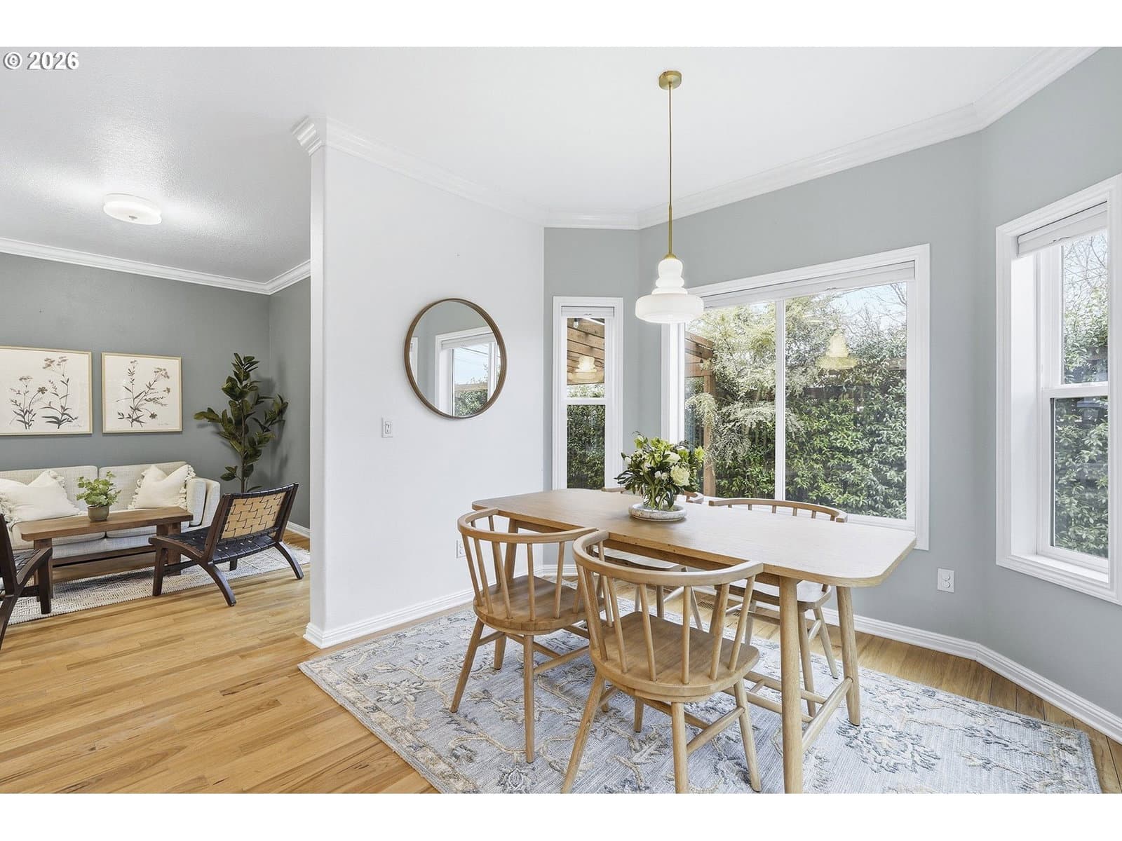 Tucked on a quiet, idyllic street in the heart of Kenton, this lovely Craftsman offers a great layout, prime location, and move-in ready updates. With 4 bedrooms and 3 bathrooms, the layout flows beautifully, with a cozy living room at the front of the home and open kitchen, dining, and family spaces at the back, along with a main-level bedroom and full bath that add flexibility for guests, working from home, or multigenerational living. The kitchen anchors the main living spaces and has been tastefully updated with new quartz counters, a custom backsplash, a new induction range, and plenty of storage. French doors off the family room open to a covered patio and fully fenced backyard, creating a space that works just as well for entertaining as it does for everyday living. Upstairs, the primary suite is a true retreat with vaulted ceilings and an updated bathroom with a soaking tub, walk-in shower, and large walk-in closet. Two additional bedrooms, a full bath, and the laundry room round out the upper level. This home is truly move-in ready, with important updates already completed including a new furnace and heat pump, composition roof, carpet, updated bathrooms, and epoxy garage floors. All of this just blocks from Kenton’s parks, coffee shops, and local favorites along Denver Avenue, making it easy to enjoy one of North Portland’s most loved, walkable neighborhoods. [Home Energy Score = 6. HES Report at https://rpt.greenbuildingregistry.com/hes/OR10154585]