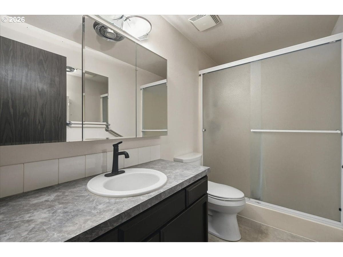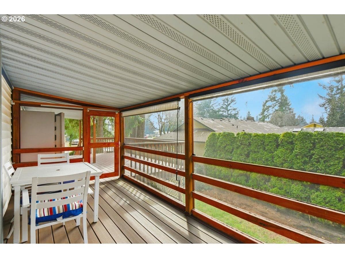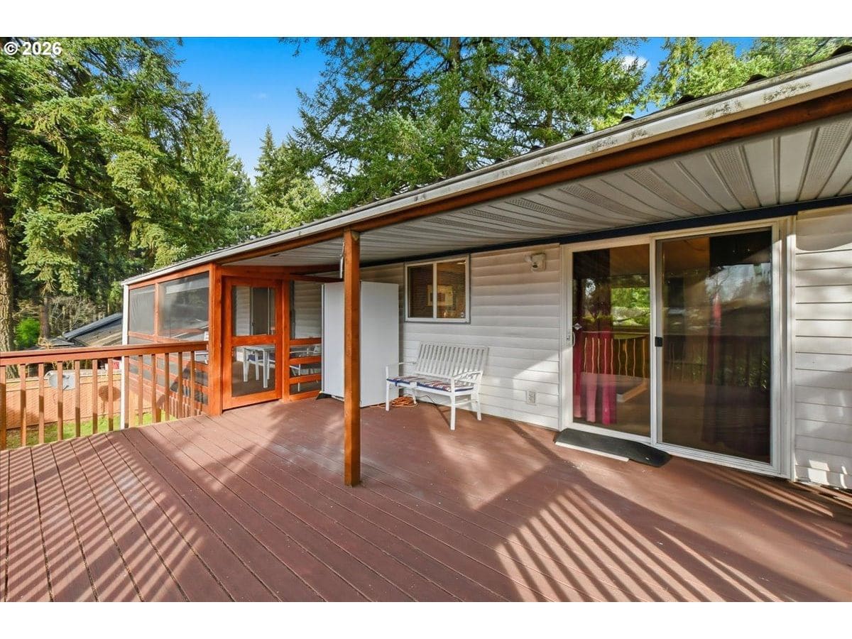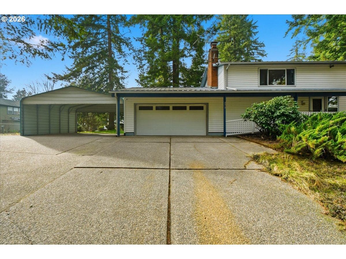 Space for everything! This well-cared-for split-level home is nestled on a spacious corner lot in a tranquil neighborhood with park access just down the street, offering room to spread out both inside and out. Indoors, enjoy brand-NEW carpet, brand-NEW kitchen flooring, and a newer stainless-steel dishwasher. Recently updated, low-maintenance composite decking extends the living space outdoors and features a partially enclosed, screened area directly off the generously sized primary bedroom - ideal for relaxing in any season while keeping pests at bay. The primary bedroom also offers an entire wall of closet space, while the lower level provides a large great room with flexible options for living, recreation, or work-from-home needs. An efficient mini-split system supplies year-round heating and air conditioning. The oversized two-car garage is topped by an impressive, covered RV, boat, or additional storage area, perfect for toys, hobbies, or extra vehicles. For added convenience, washer and dryer are included, and an extra refrigerator and freezer may stay or be removed. A durable metal roof and a new water main installed in January 2026 add valuable peace of mind. Enjoy proximity to numerous parks and trails, along with convenient access to I-205 for commuting.