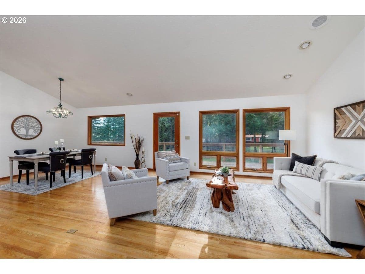 Offered for the first time, this custom-built home is set on 27 private acres of rolling pastures and wooded forest, offering exceptional privacy, versatility, and long-term potential.The main home features 3 bedrooms and 2.5 bathrooms, including a primary suite on the main level with en suite bath. Large windows capture peaceful views of surrounding pastures and forest, filling the home with natural light. Hardwood floors flow throughout the main level, while an expansive deck overlooks open pasture and mature timber—perfect for entertaining or relaxing in a serene, natural setting. The daylight basement expands the living space with two bedrooms and a full bathroom, an open bonus room with exterior access, and a separate mud room that could also function as a home office, offering excellent flexibility for a variety of uses.A large shop with a concrete floor and mezzanine offers abundant workspace and storage, and a full bathroom is attached to the shop, adding convenience for projects, hobbies, or outdoor work.The land itself is a standout feature, offering 27 acres that may be dividable under Measure 49 (buyer to perform due diligence) along with harvestable timber, creating potential for future use or investment.A rare opportunity where privacy, natural beauty, and flexible spaces come together in a truly special setting.