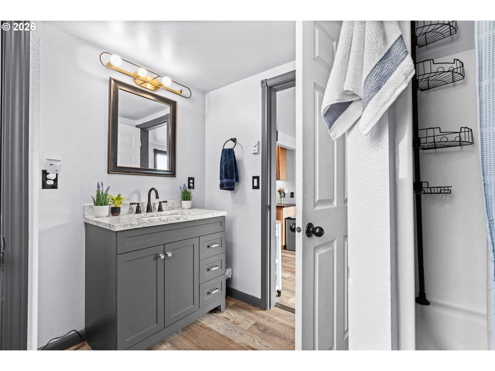 Located on nearly three acres just north of Coburg, this close-in country property offers peaceful surroundings with territorial and valley views while remaining convenient to town. The kitchen features custom Courtland cabinets, butcher block countertops, and a full set of appliances including refrigerator, range, microwave, and dishwasher, all installed new in 2023. The updated bathroom features a new vanity and toilet. Newer laminate flooring runs throughout the entire home, complemented by fresh interior paint, updated light fixtures, and new blinds. Additional improvements completed when the home was purchased include a new hot water tank, cadet heaters, and bathroom fan. Water quality was upgraded with the installation of a Culligan Aquasmart Sulfur-Cleer filtration system along with a 20" Big Blue sediment filter, designed to address common well water conditions. The home also features a French drain system installed around the perimeter and TerraFirma foundation work with warranty. The property includes a large mud and laundry room with built-ins and utility sink, along with exterior access that works well for rural living. Outside, the nearly three-acre parcel provides space for animals, gardening, or additional improvements. Additional exterior features include a well house, newly installed asphalt driveway, expanded gravel parking area, RV hookups, and an insulated 10×20 lofted barn storage building. The setting offers privacy, open space, and views while remaining a short drive to Coburg, Harrisburg, and Eugene.