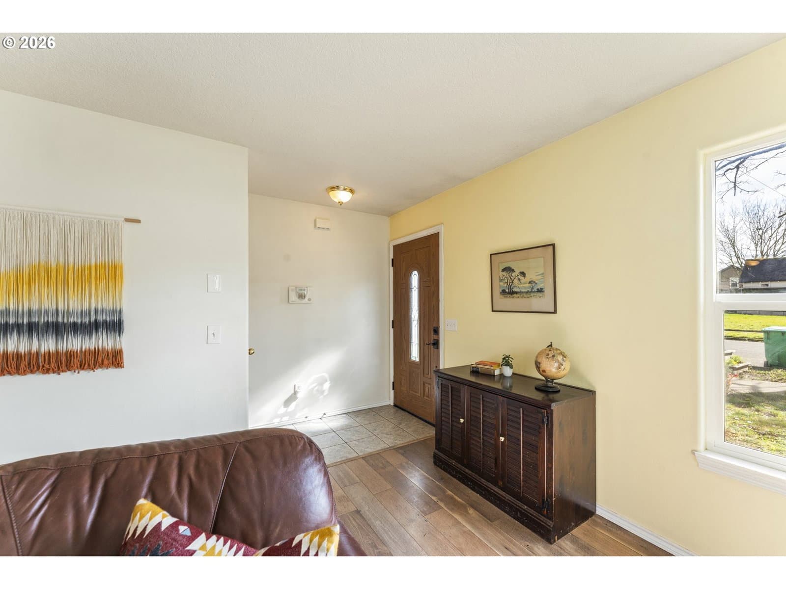 Charming and move-in ready in St. Johns! This adorable one-level home features 2 bedrooms and 1 bathroom with fresh updates throughout, including new flooring and interior paint. The inviting open kitchen flows easily into the living space, dining space and leads to a covered patio—perfect for relaxing or entertaining year-round. Step outside to a thoughtfully planted yard filled with established fruit trees, raspberries, blueberries, lingonberries, and a variety of native plants that create a beautiful and productive garden space. A large storage shed offers plenty of room for tools, bikes, and outdoor gear. Inside, the spacious primary bedroom includes a walk-in closet, and an efficient mini-split system provides comfortable heating and cooling. Located on a quiet street, this home offers a wonderful opportunity for first-time buyers, downsizers, or anyone seeking easy one-level living. [Home Energy Score = 9. HES Report at https://rpt.greenbuildingregistry.com/hes/OR10020567]