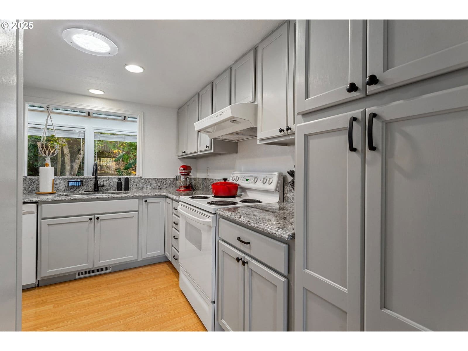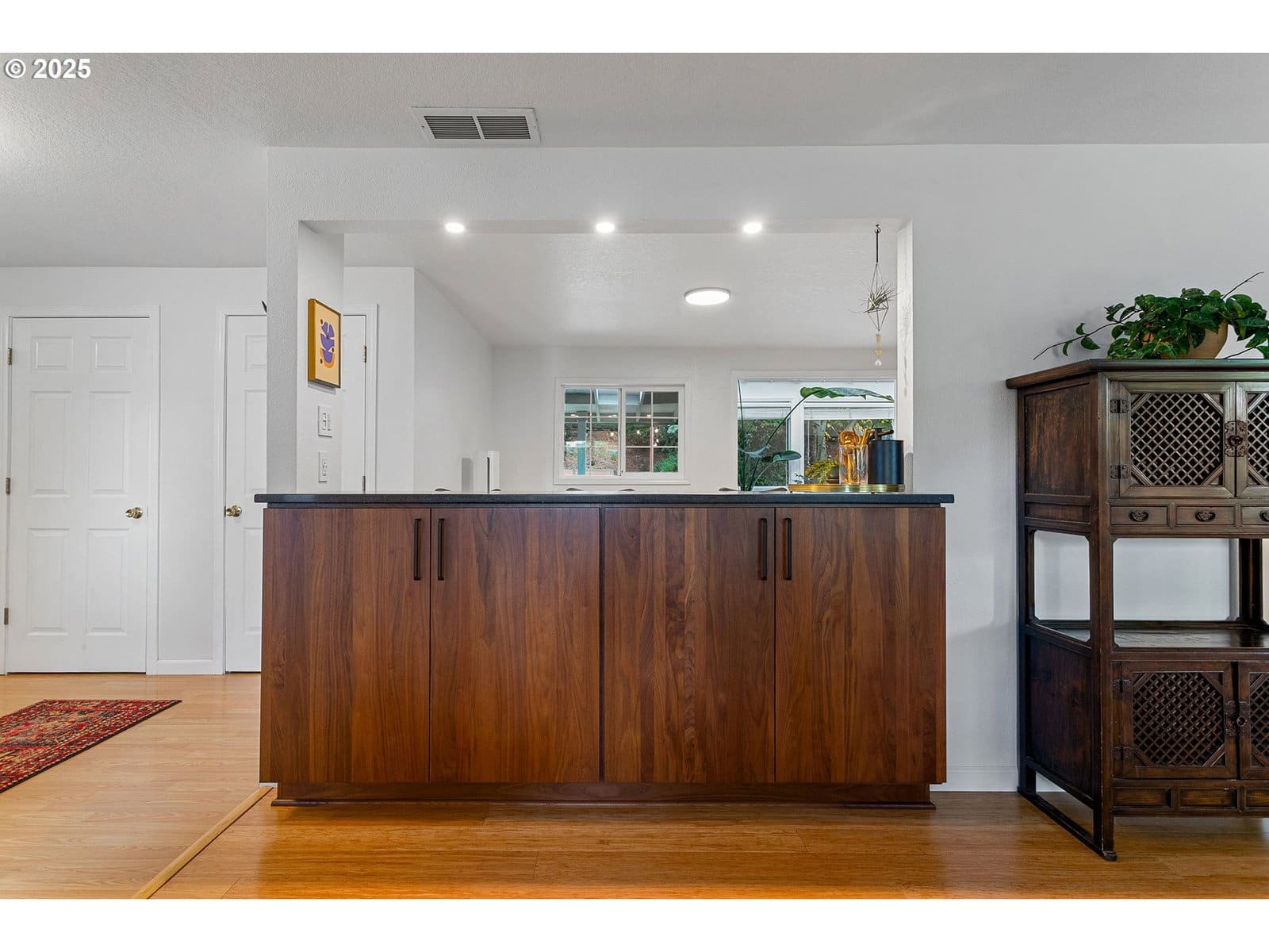 Smart and thoughtfully updated one-level home in a quiet neighborhood- yet easy access to all of the necessities. This home blends indoor and outdoor living with a spacious floorplan connecting an inviting living room with wood-burning fireplace, a large kitchen and spacious sunroom featuring a vaulted ceiling. Enjoy low-maintenance engineered hardwood flooring throughout and new tiled bathrooms. Host gatherings and celebrate occasions around the stylish bar connecting kitchen and living room spaces. The primary suite opens to the patio and backyard. The covered patio extends to a welcoming flag-stone fire pit area and relaxing vibe for evenings with you and your friends. Terraced garden areas and fully fenced backyard provide privacy and room to play. The spacious two-car garage is insulated and offers workshop space as well. Convenient access to local trails, Cooper Mountain Nature Park, highly-rated schools, shopping/dining, and major employers. This home lives large and all it needs is you!