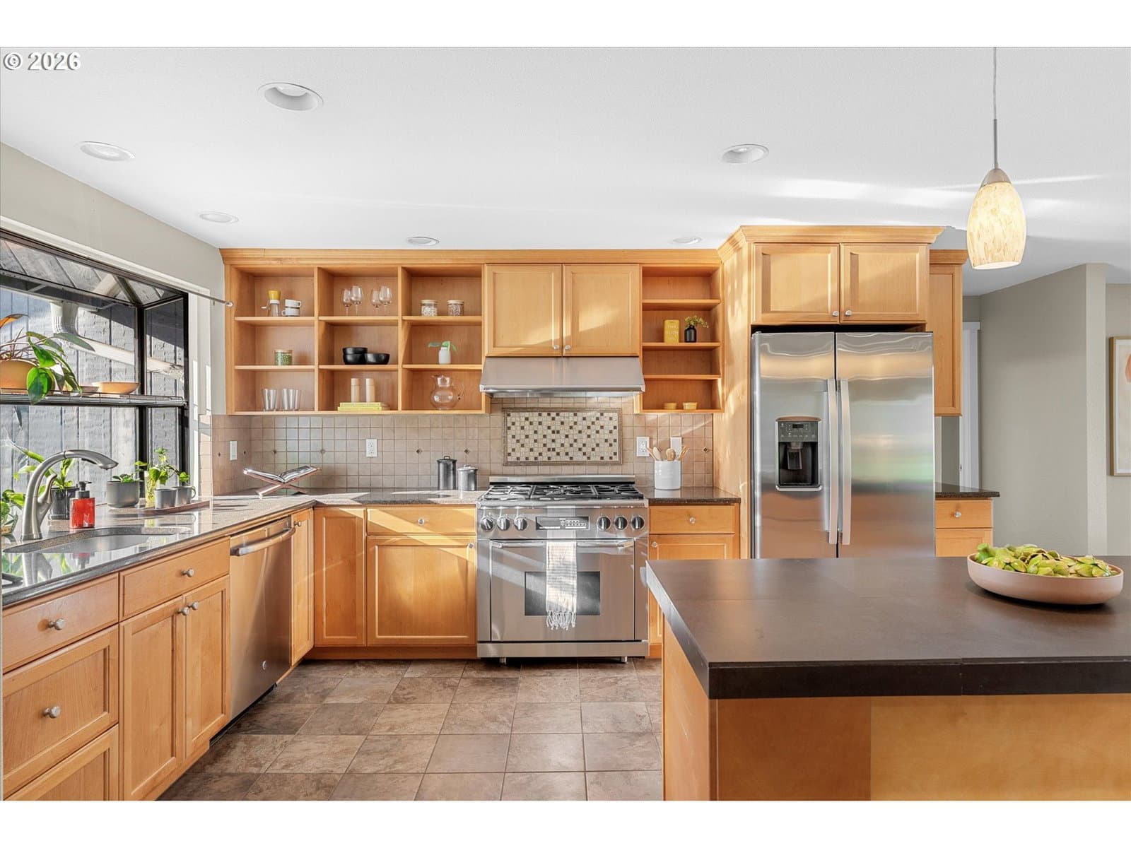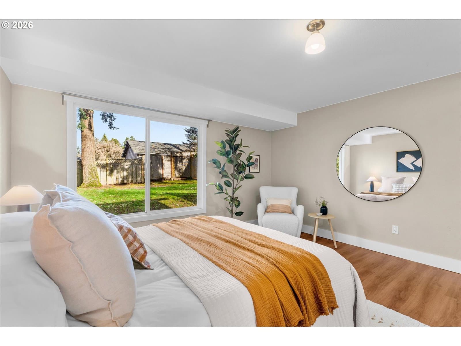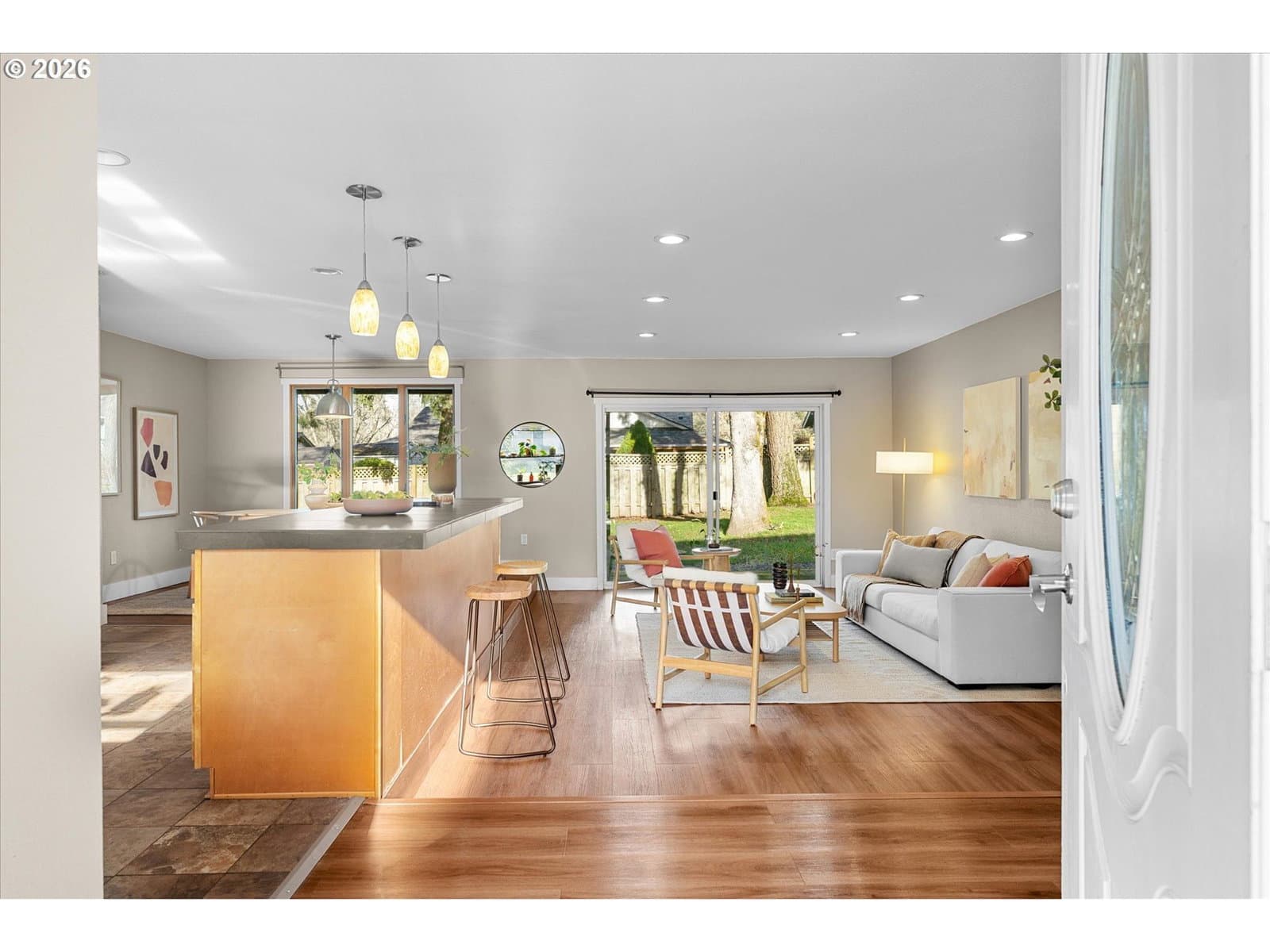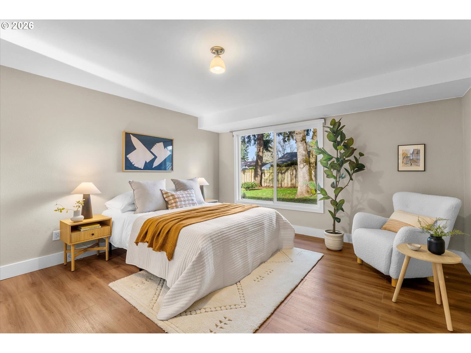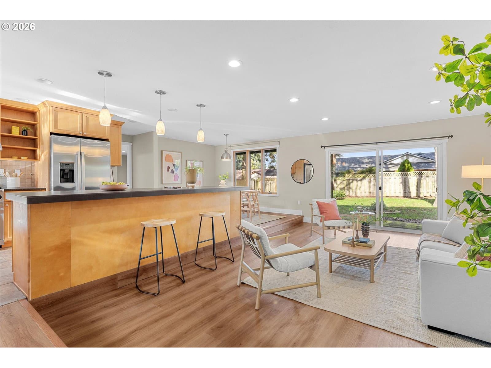 Welcome home to this light-filled, single-level gem on a peaceful street in the heart of Beaverton. With 3 bedrooms, 2 bathrooms, and a flexible bonus space with a closet (perfect for a home office, den, or additional bedroom), the layout is both functional and inviting. The open-concept design flows beautifully, with wonderful natural light throughout and a sense of ease the moment you walk in. The spacious, updated kitchen is a standout, featuring granite countertops, a large island, oversized gas range, stainless steel appliances, and a charming garden window, which is perfect for growing fresh herbs right at home. Step outside to a huge, quiet, fully fenced yard with a stone patio and mature trees, offering a retreat to relax, garden, or entertain. Enjoy central A/C, energy-efficient windows, ample storage, and a two-car garage. Plus, it's minutes to Washington Square Mall, downtown Beaverton dining and farmers market, trails, parks, Nike, and Intel—this one truly checks all the boxes.