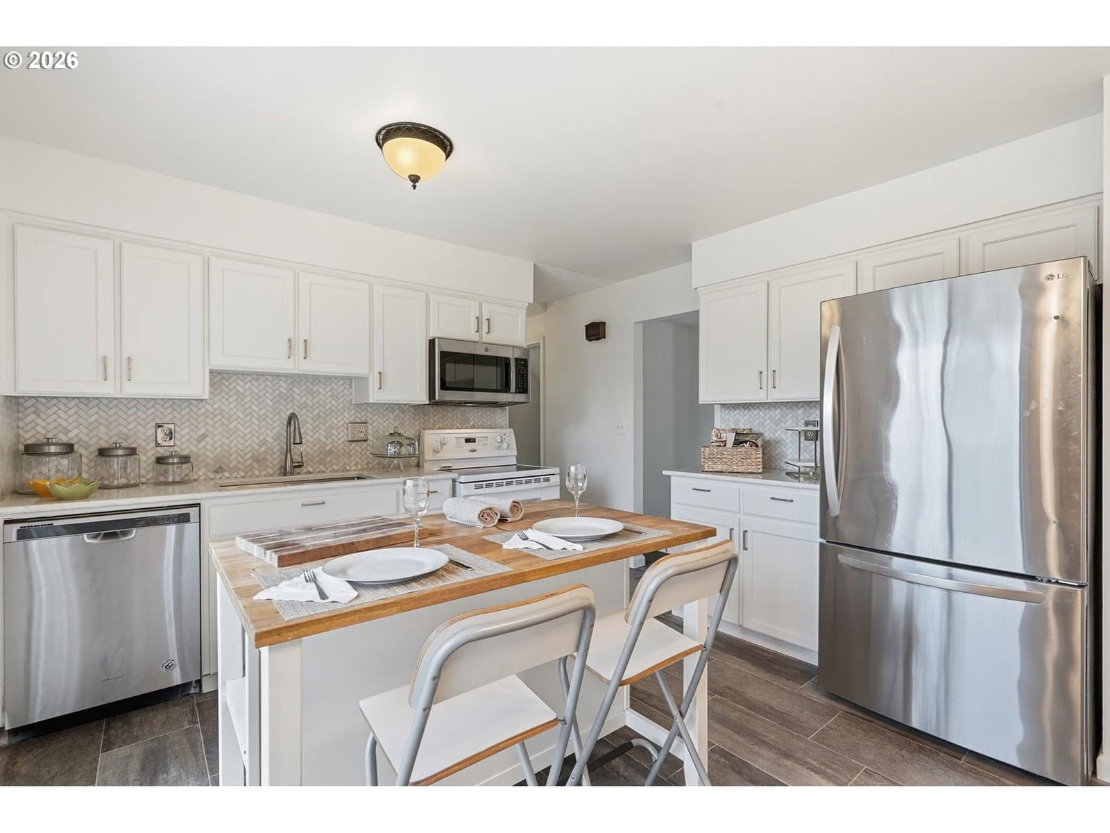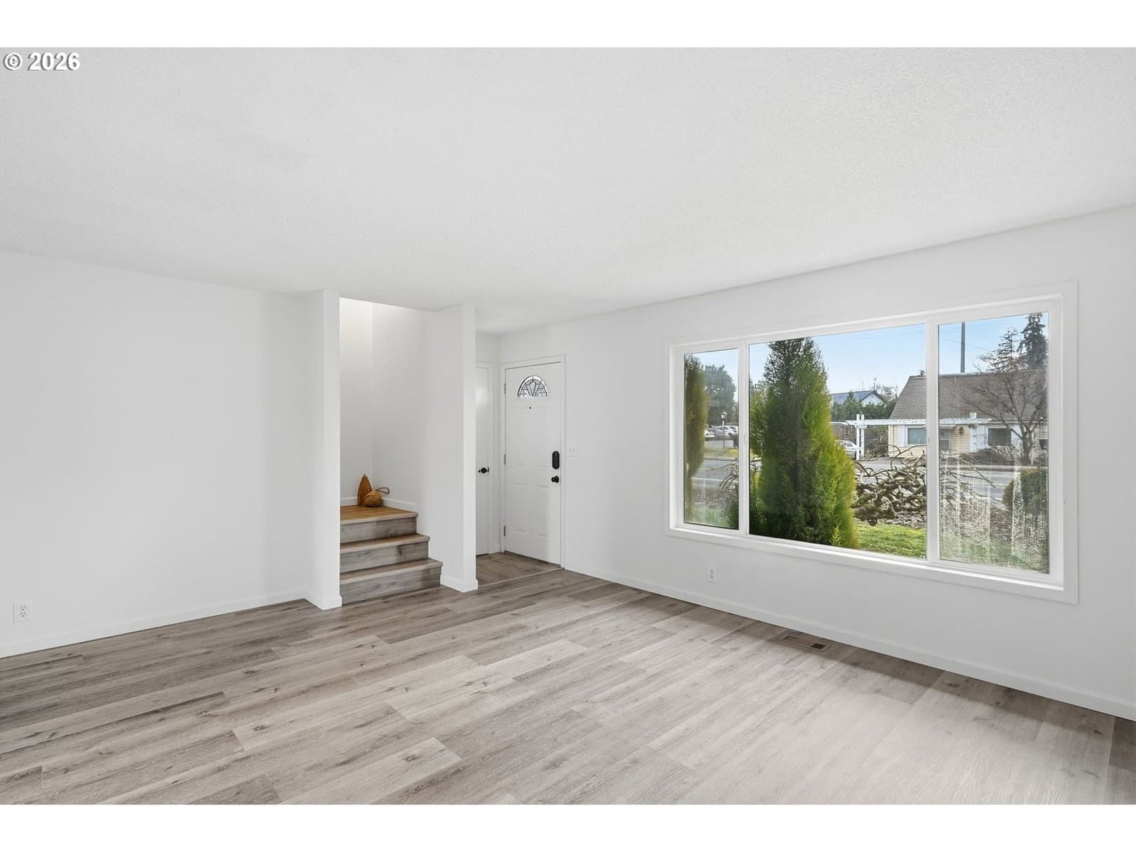 Location lovers and daily commuters will appreciate this thoughtfully remodeled, move in ready home with unbeatable access to transit, downtown, and neighborhood amenities. Recent improvements include a newer roof, an efficient heat pump with A/C, updated plumbing to the street, and a newer vapor barrier for added peace of mind. Fresh flooring, new carpet, and interior paint give the home a crisp, refreshed feel. The sun filled living room features a cozy fireplace, while the bright kitchen shines with new counters and sliding doors that open to a spacious, fully fenced backyard complete with a new patio slab and established rosemary and mint plants, perfect for entertaining, play, or relaxing. Bathrooms offer refreshed counters, and the flexible layout includes additional bedrooms upstairs. RV parking with a newer double gate and a one car attached garage add everyday convenience. The location truly sets this home apart with easy access to public transportation just three blocks to the MAX, right off the bus line, one mile to downtown with a fully paved route ideal for biking, multiple parks in the area, and a school just around the corner, making commuting and daily life incredibly easy. [Home Energy Score = 2. HES Report at https://rpt.greenbuildingregistry.com/hes/OR10244094]