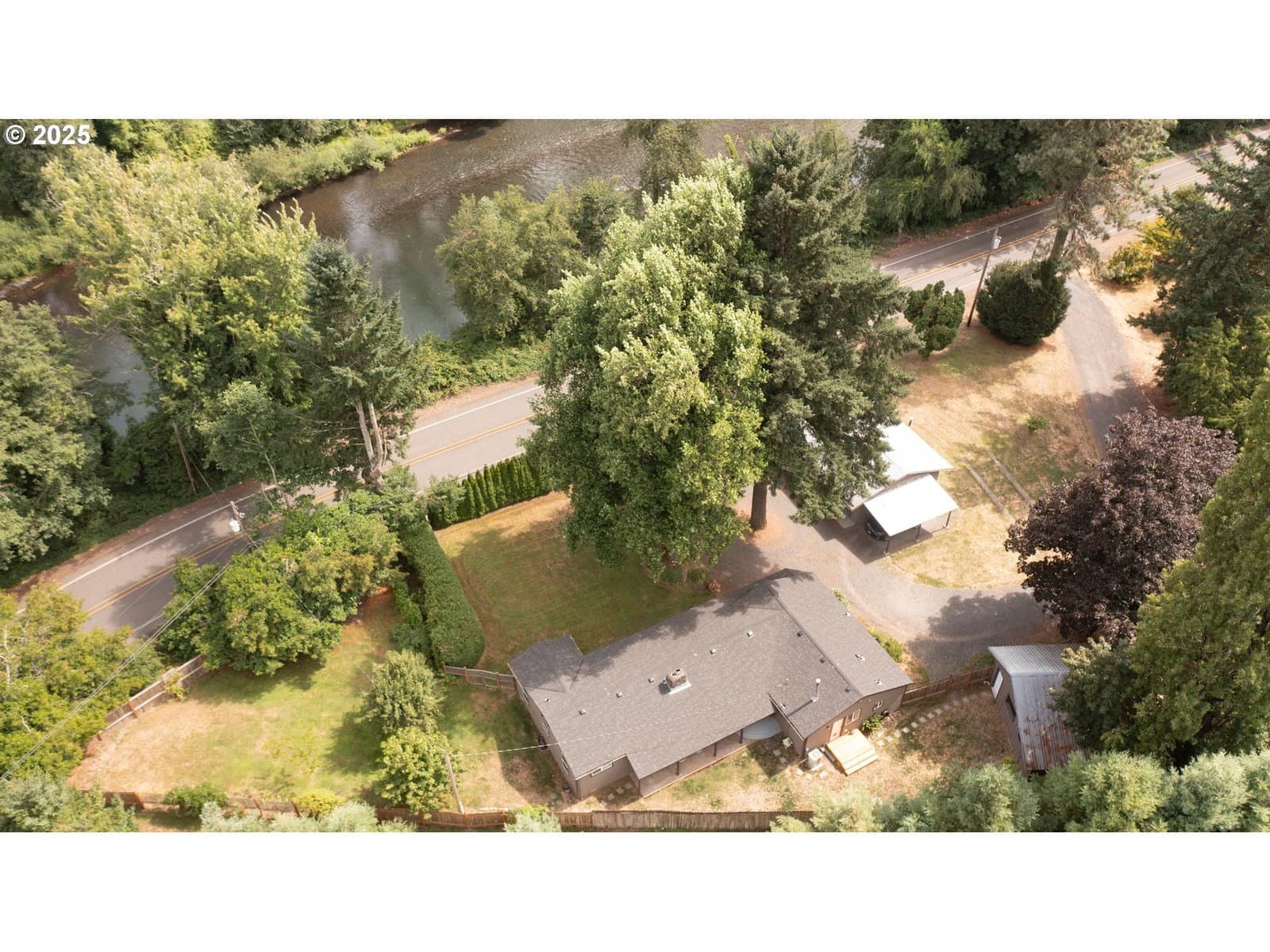 Modern Comfort, Riverfront Access & Room to Roam! Enjoy the perfect blend of style and functionality in this 3-bedroom, 2-bath home with 1,734 sq. ft. of thoughtfully designed living space. The beautifully updated island kitchen features Corian countertops, a travertine backsplash, and stainless steel appliances with a gas range—ideal for cooking and entertaining. The open-concept layout flows into the vaulted living room, offering inviting spaces to gather. There is a family room for separate space which includes a fireplace. The spacious primary suite includes a jetted tub and private en-suite bath, while the laundry room provides convenient counter space and built-in cabinetry. A gated entrance adds privacy, and across the road lies your own riverfront access to the Santiam River—perfect for fishing, relaxing, or simply enjoying nature. Outside, you’ll find a shop, detached 2-car garage with bonus room, and two carports. The property also features fruit trees, garden space, and plenty of areas to enjoy outdoor living. A rare combination of modern updates, riverfront access, and country charm—this one has it all!