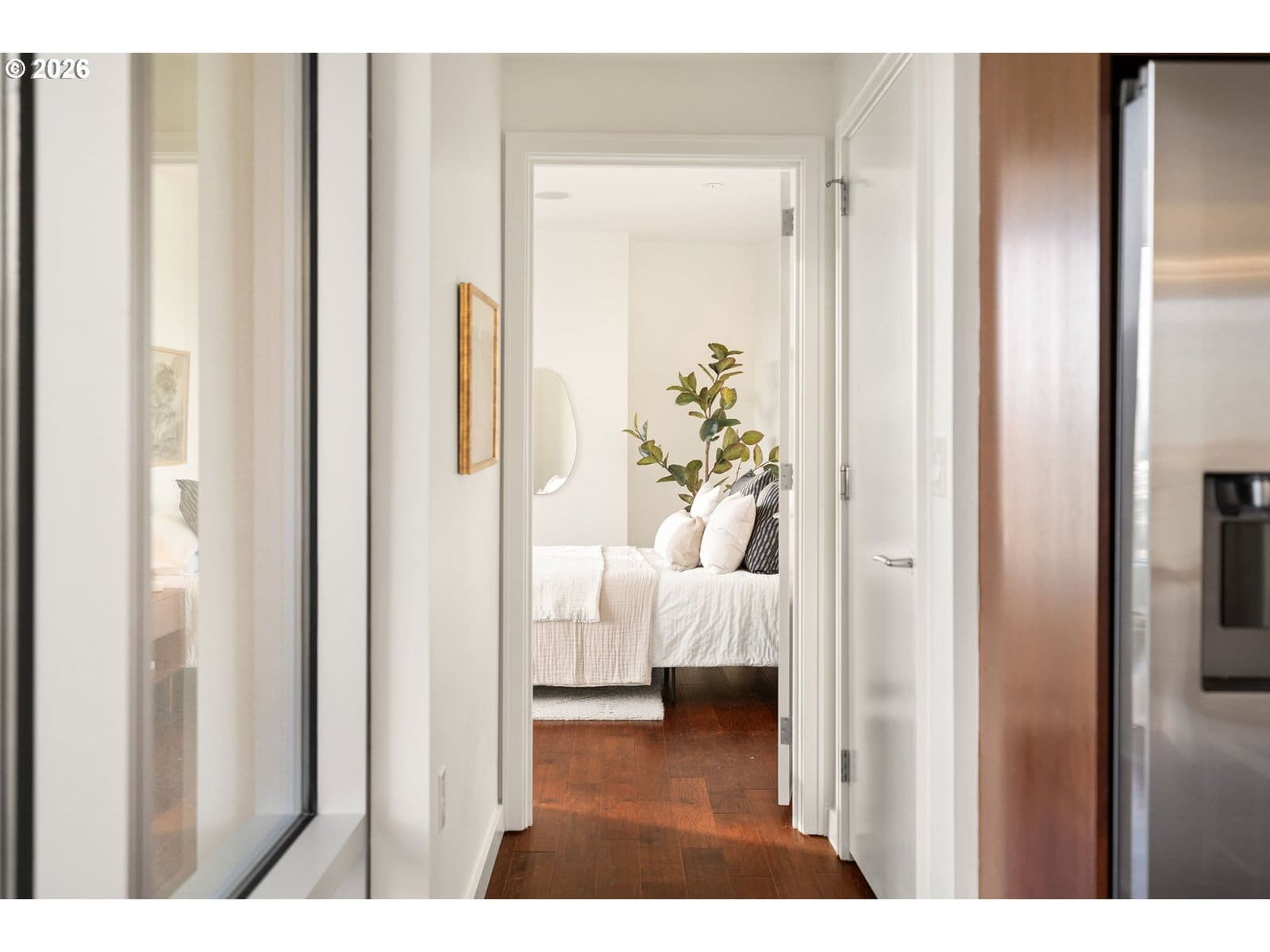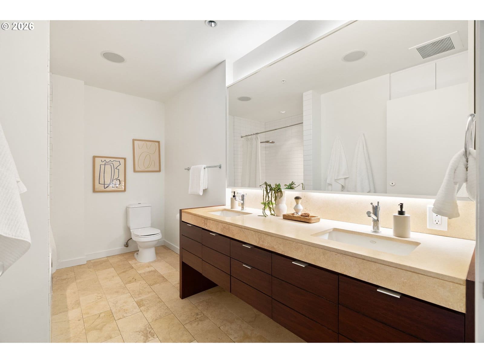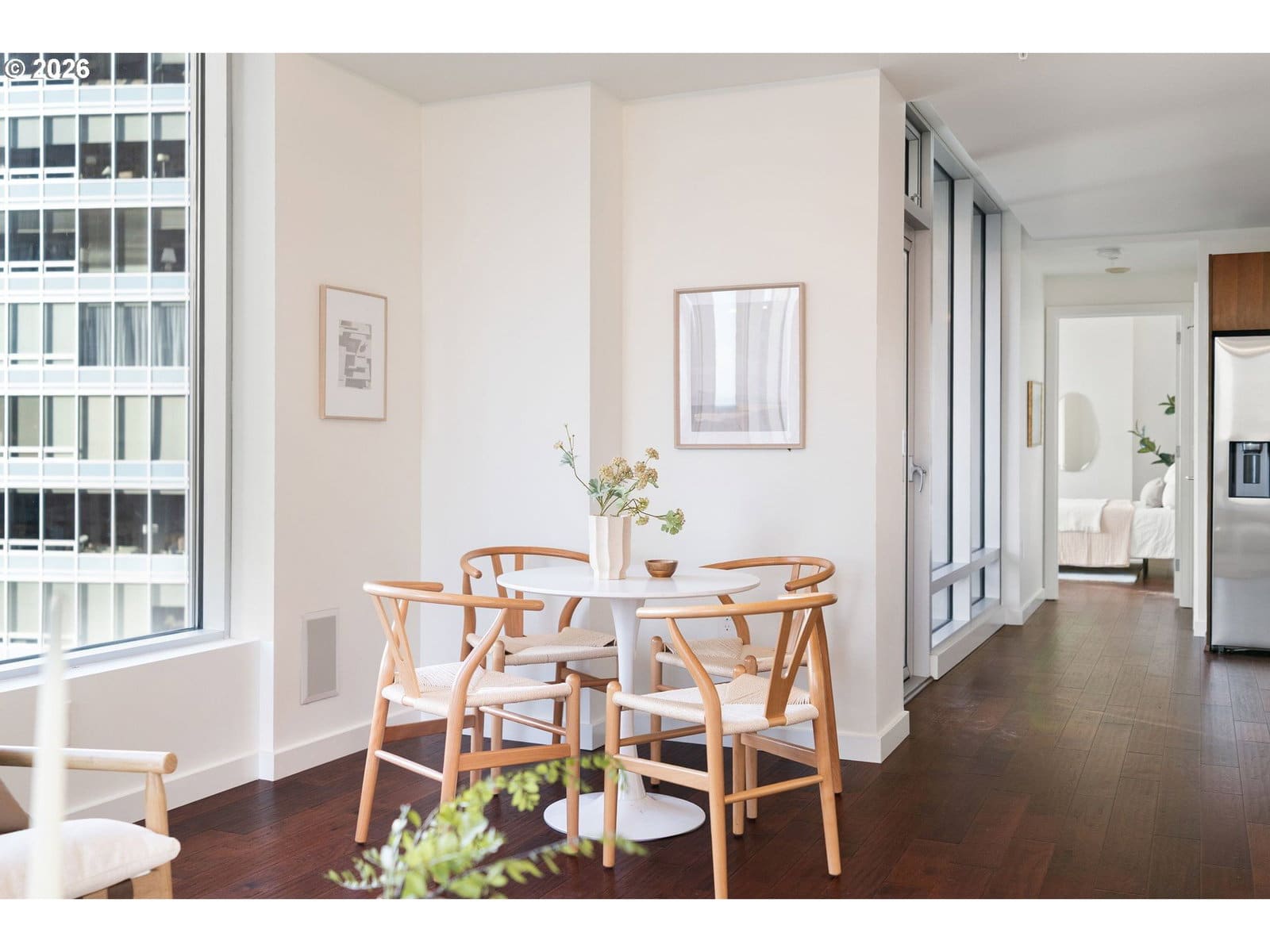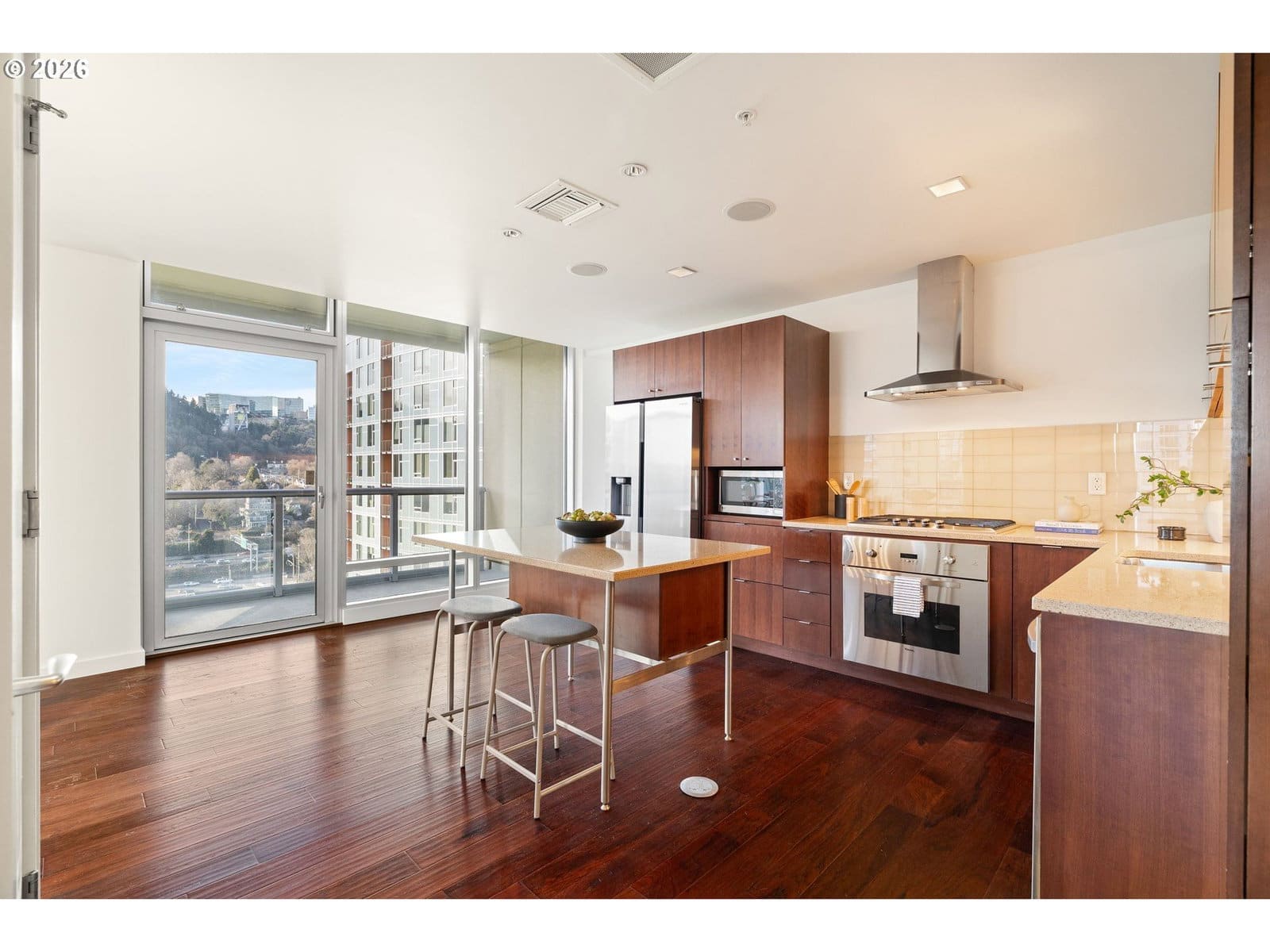 Beautifully updated two bedroom with panoramic views, 2 parking & storage in the coveted Meriwether in South Waterfront. This lovely home features North to South views of the Willamette River, west hills, city, bridges, and Mt St Helens. Desirable floor plan features a large ensuite primary bedroom, spacious kitchen with pantry & covered balcony. Home has been upgraded & elevated with wood floors throughout & elegant crown moulding. Building amenities include 24/7 concierge, a rentable guest suite, private guest parking & kayak storage. Enjoy life in the beautiful South Waterfront along the river with parks, restaurants, shops, fitness studios, Greenway, OHSU, Streetcar & more.
