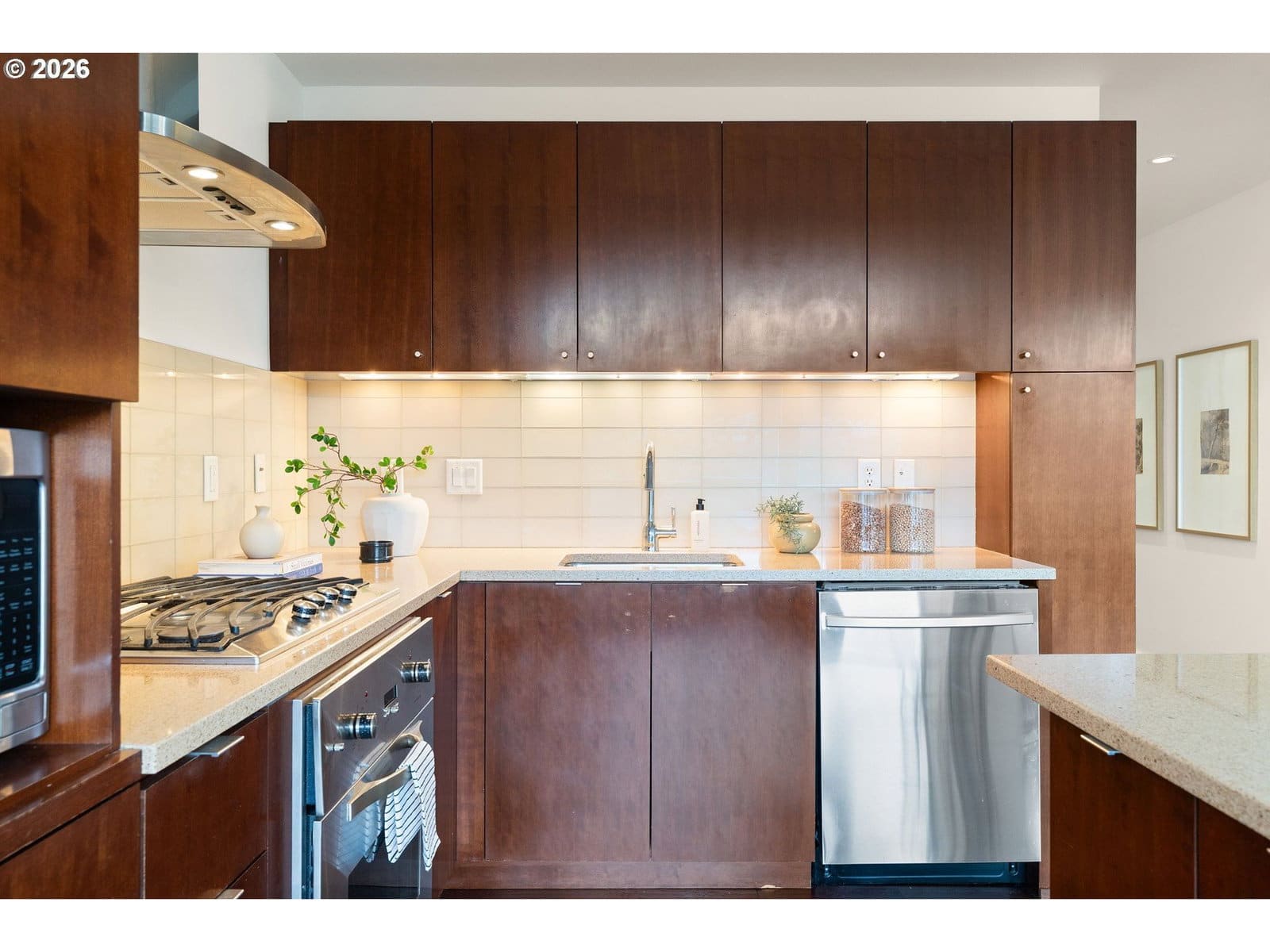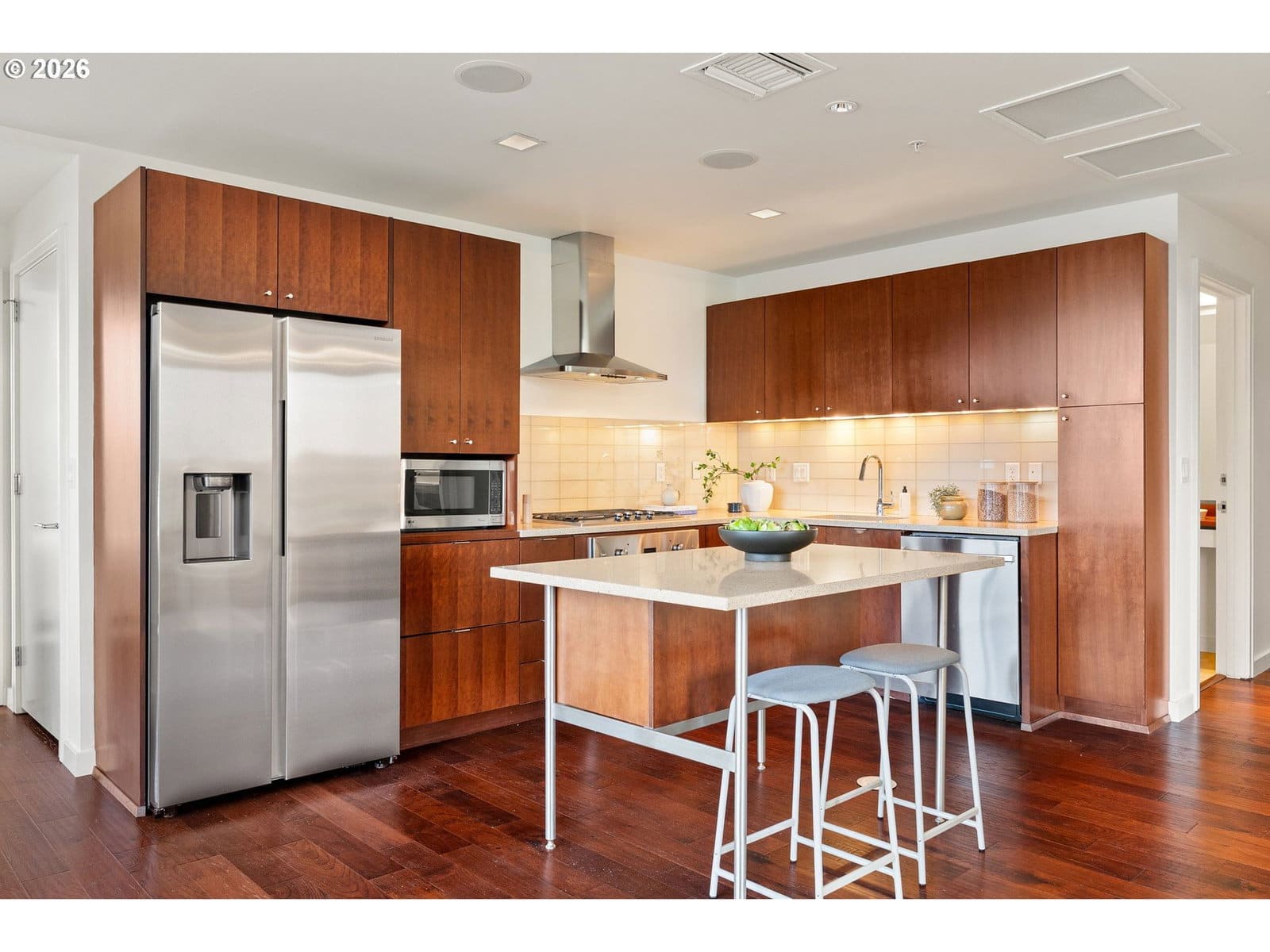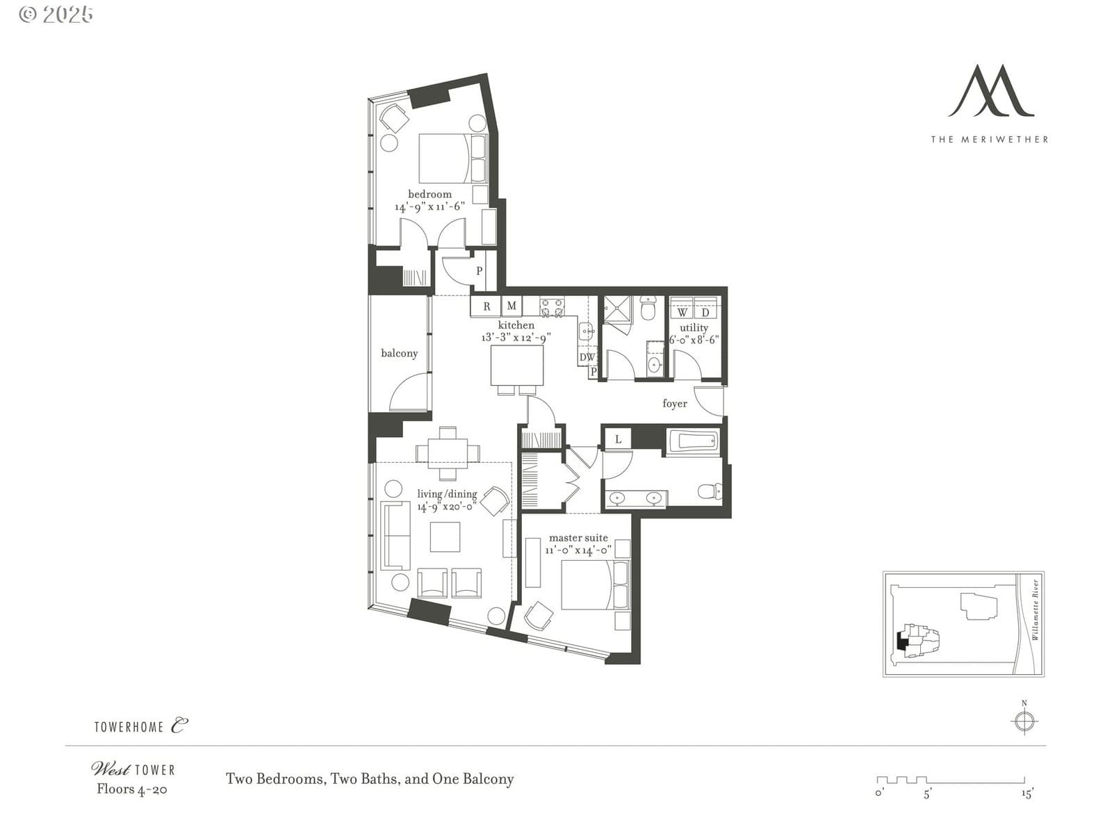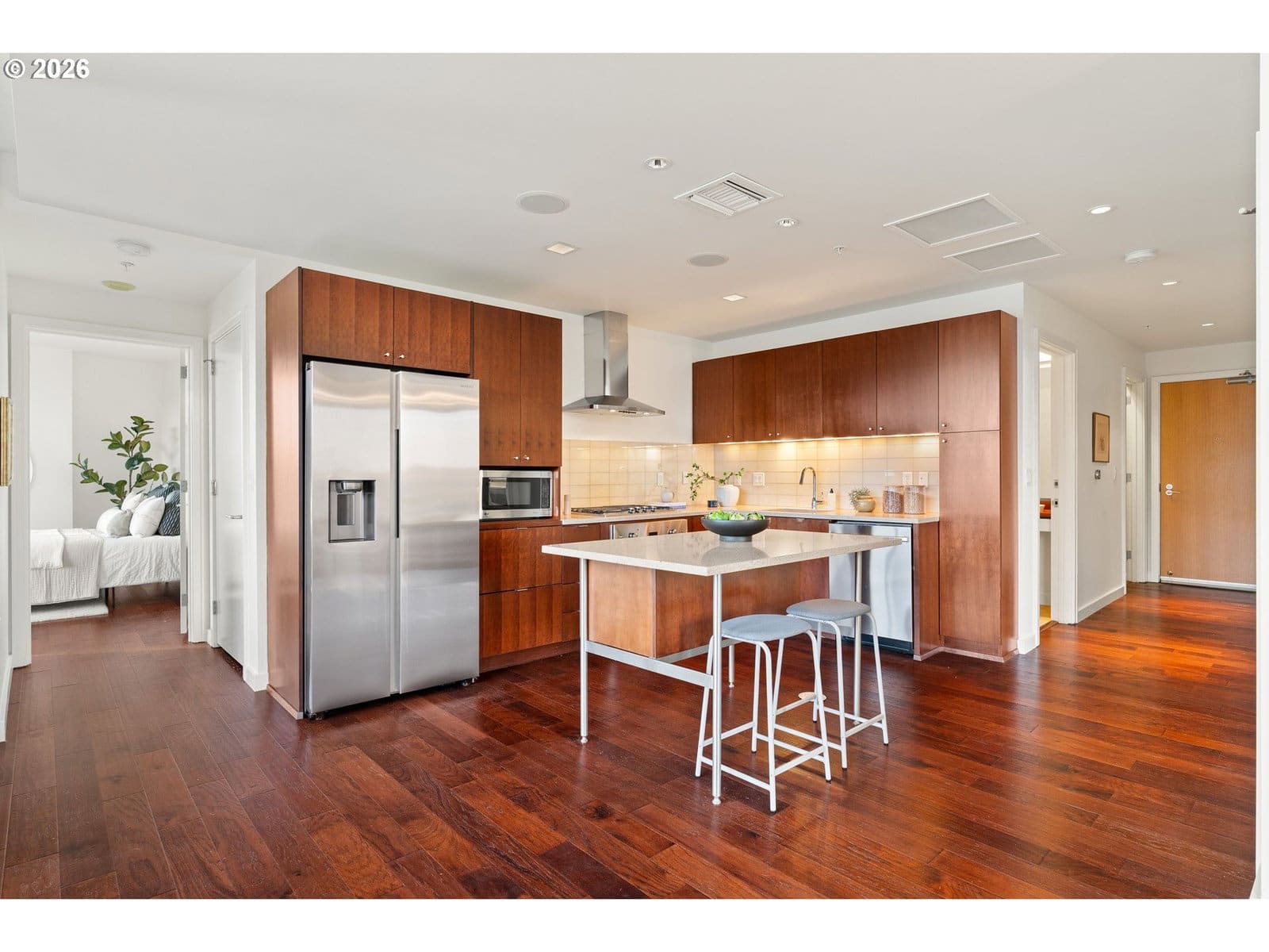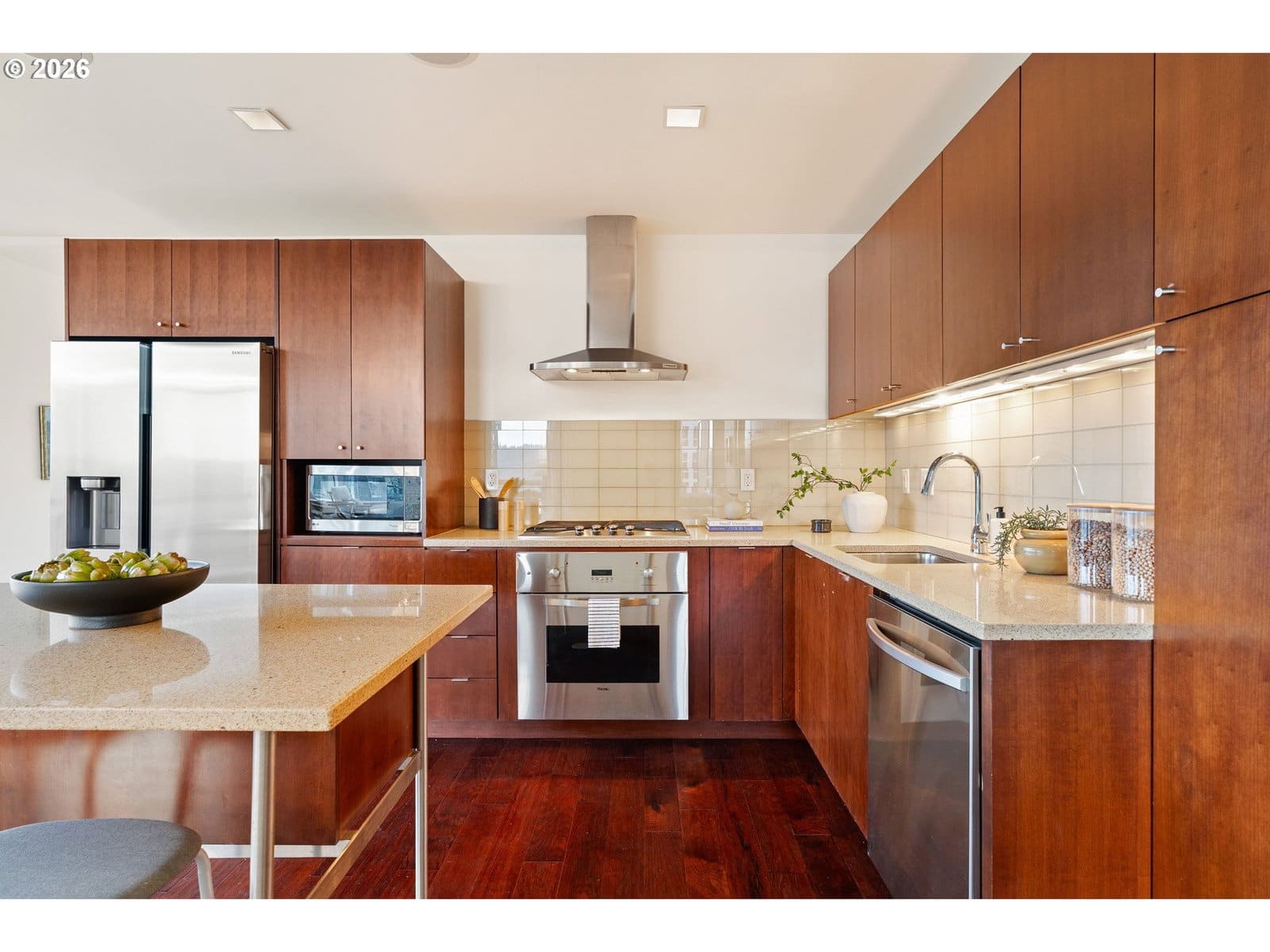 Beautifully updated two bedroom with panoramic views, 2 parking & storage in the coveted Meriwether in South Waterfront. This lovely home features North to South views of the Willamette River, west hills, city, bridges, and Mt St Helens. Desirable floor plan features a large ensuite primary bedroom, spacious kitchen with pantry & covered balcony. Home has been upgraded & elevated with wood floors throughout & elegant crown moulding. Building amenities include 24/7 concierge, a rentable guest suite, private guest parking & kayak storage. Enjoy life in the beautiful South Waterfront along the river with parks, restaurants, shops, fitness studios, Greenway, OHSU, Streetcar & more.