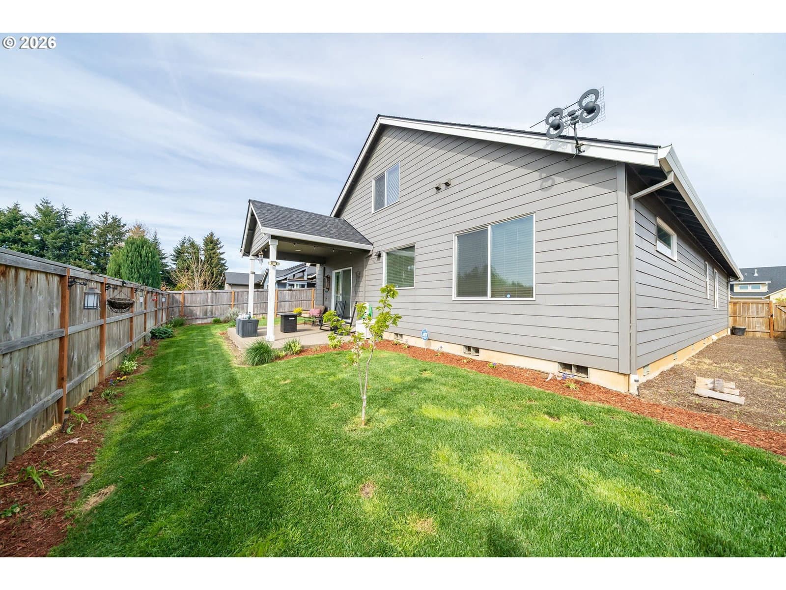 PRIMARY SUITE ON THE MAIN LEVEL highlights this beautifully designed 2,616 sqft home. Open floor plan with quartz countertops, spacious kitchen island, and cozy gas fireplace. Upstairs bonus area offers potential 5th bedroom or office. Enjoy two covered patios, fully fenced backyard, and U/G sprinklers front and back. Plenty of space with a 3-car garage and RV parking. A/C for summer comfort and a layout built for easy living. 4 bedrooms, 3 baths—move-in ready and perfect for entertaining.