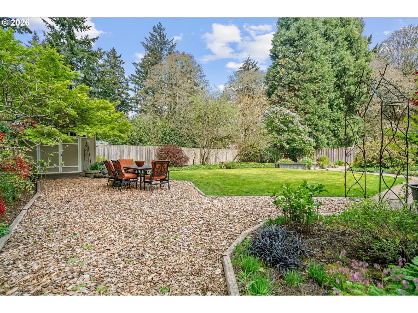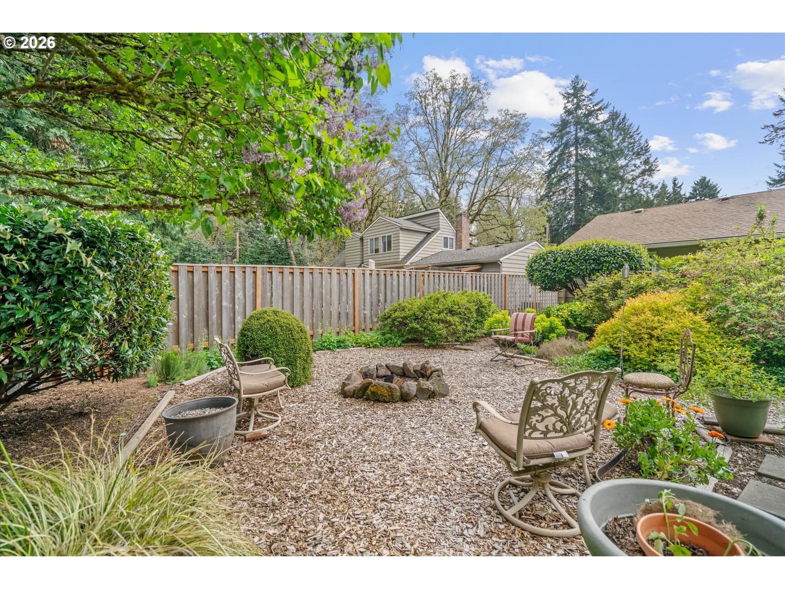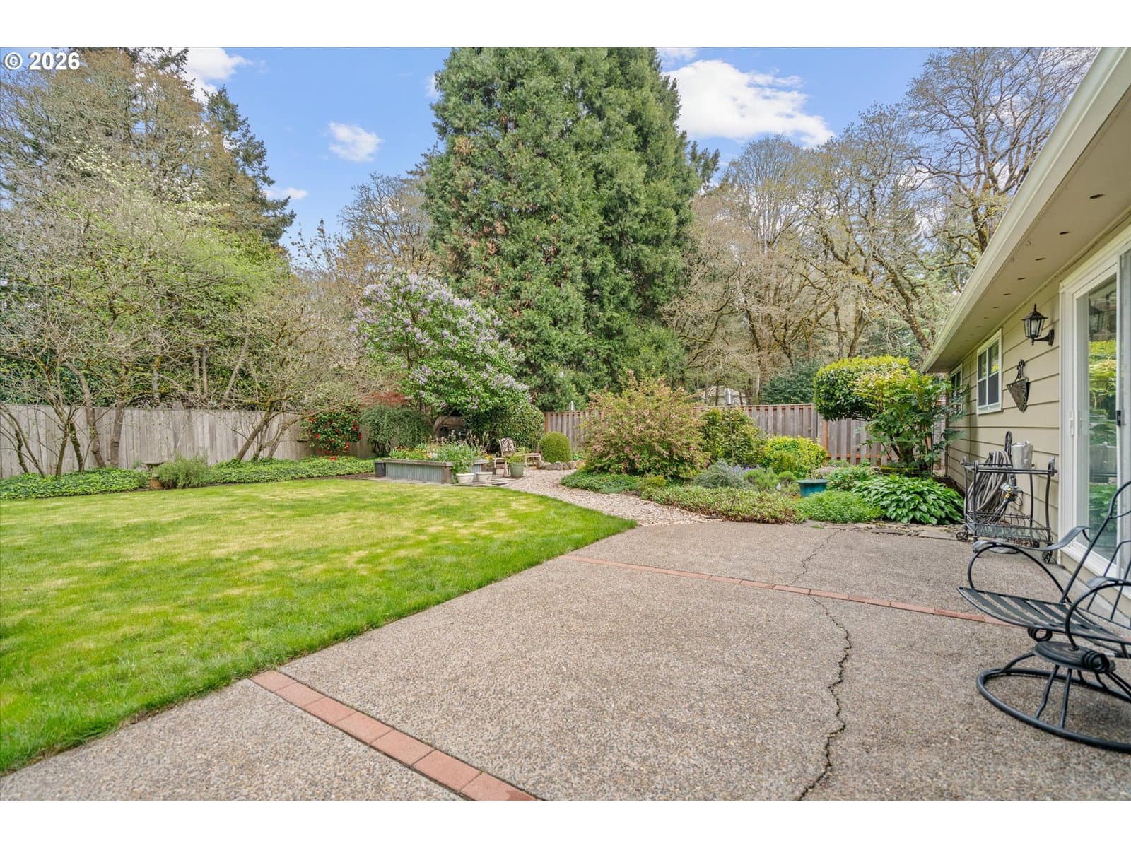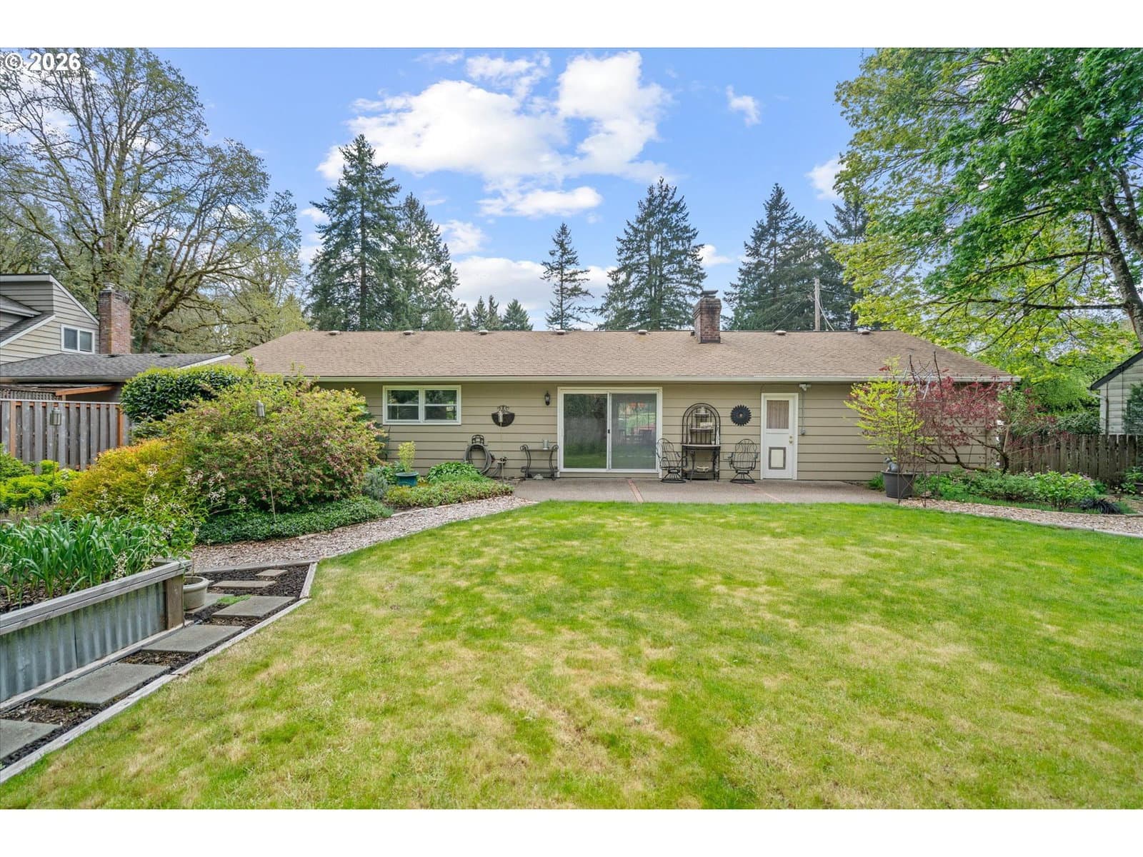 WELCOME, Step into the tranquility of this fabulous 1-level, well cared for home. Featuring the versatility of 3 bedroom living or a 2 bedroom with a den/library with beautiful wainscoting. The light & bright interior highlights the oak hardwood floors found in most rooms. Newer interior paint through-out and craftsman style moldings. The kitchen boasts engineered quartz counters, stainless steel gas range w/ 5-burners, double-oven, built-in microwave, newer dishwasher & refrigerator. You will enjoy the cozy living room with its centrally located brick fireplace and direct access to a gracious entertaining patio. All bedrooms have custom built wood closet organizers. The primary suite features a built-in dresser, an entertainment armoire, crown molding, space for a king bed, bath with engineered quartz counters, tiled backsplash and luxury vinyl flooring. The oversized attached 2 car garage has loads of built-in storage, work bench, pull down attic access for additional storage and a side by side refrigerator. PEX interior plumbing. New vapor barrier and floor insulation in the crawlspace. Private fenced backyard, a gardeners paradise, raised beds, offering a secluded outdoor space for your morning coffee and a relaxing evening around the fire-pit. Low maintenance landscaping with a drip irrigation system, newer 8x10 garden/tool shed. 25'+ parking along side garage, 40'+ driveway for plenty of parking. Nestled within a quiet community minutes from wonderful schools, restaurants, Starbucks, Grocery stores, Walgreens, Home Depot, 24 Hour Fitness, Urgent Care, Hospital and more. Easy freeway access. LO Swim Park Easement. Extremely low property taxes. Approx. 15 minutes to Downtown Portland. COME RUNNING FOR THIS ONE. WON'T LAST. BEST IN ITS CLASS AT THIS TIME