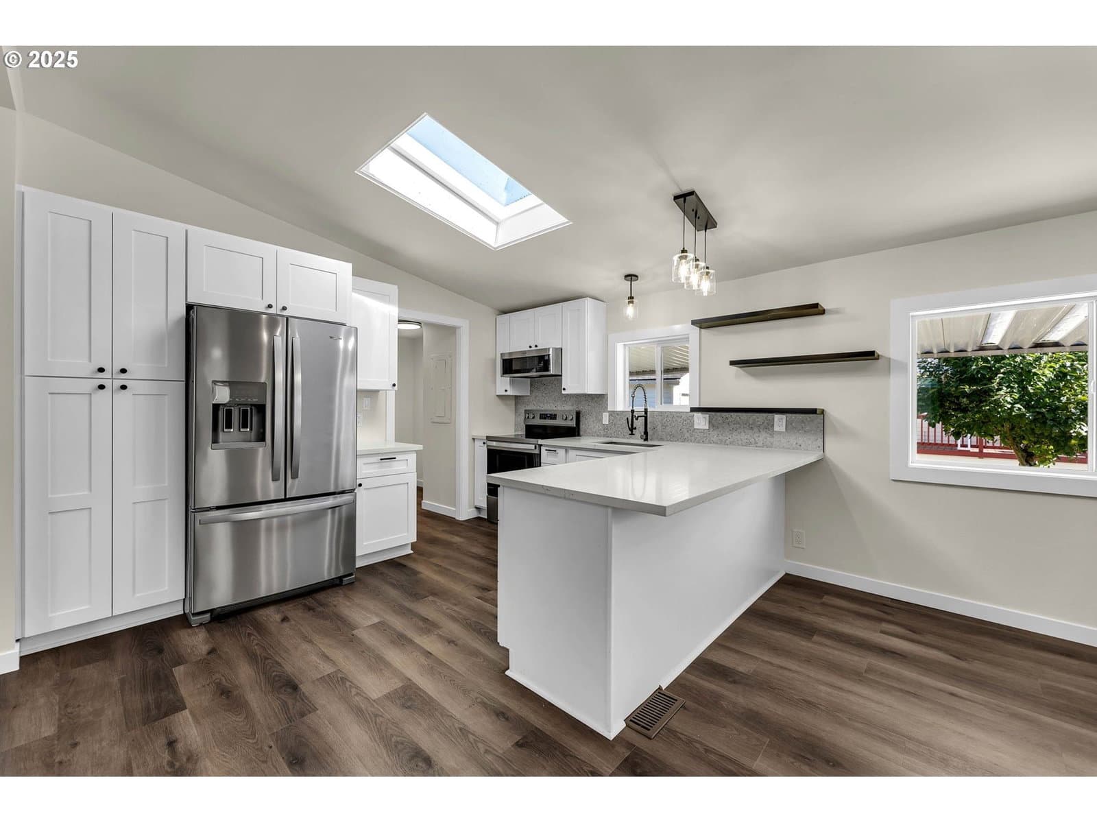 Welcome to your beautifully renovated dream home! This meticulously updated property offers a fresh, modern feel with high-end finishes throughout. Step into the stunning new kitchen, complete with brand-new appliances. The fully remodeled bathrooms are equally impressive, featuring elegant fixtures and finishes. Enjoy all-new flooring and fresh interior paint that give the entire home a crisp, clean look. A new roof and skylights provide added peace of mind, while abundant natural light brightens both the formal living room and the cozy family room—perfectly accented by a charming wood-burning fireplace. Primary bedroom has ensuite bath with walk in shower. Outside, you'll find a low-maintenance yard ideal for easy living. Wheelchair ramp on on side of home. Monthly space rent of $900.00 per month. As part of the community, enjoy access to a well-appointed clubhouse featuring a pool, spacious kitchen, library, meeting room, and more!