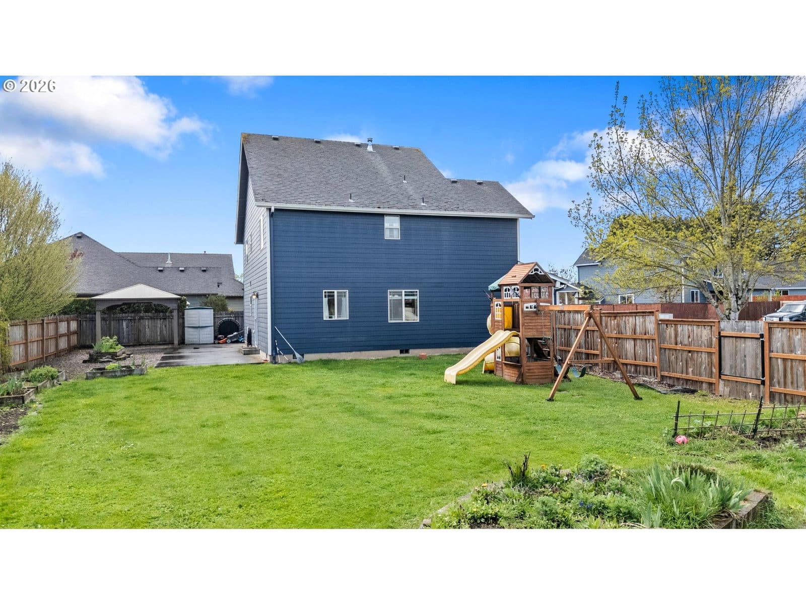 Located in the Alexander Estates in Millersburg, this well-maintained 4-bed, 2.5-bath home sits on a spacious corner lot with RV parking and a huge backyard offering plenty of room for entertaining, gardening, or play. The outdoor patio with gazebo provides a perfect shaded retreat for enjoying warm summer days, while central A/C keeps the home comfortable inside. WiFi connected thermostat. Front yard UGS, attached 2 car garage, central heat, and a functional layout design. Don't miss this one!