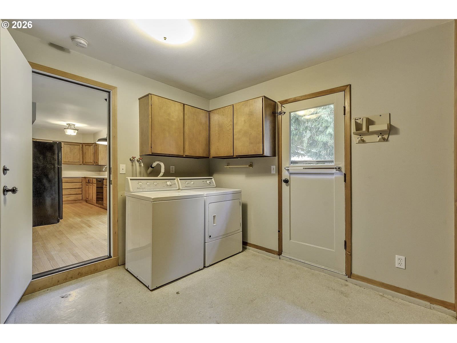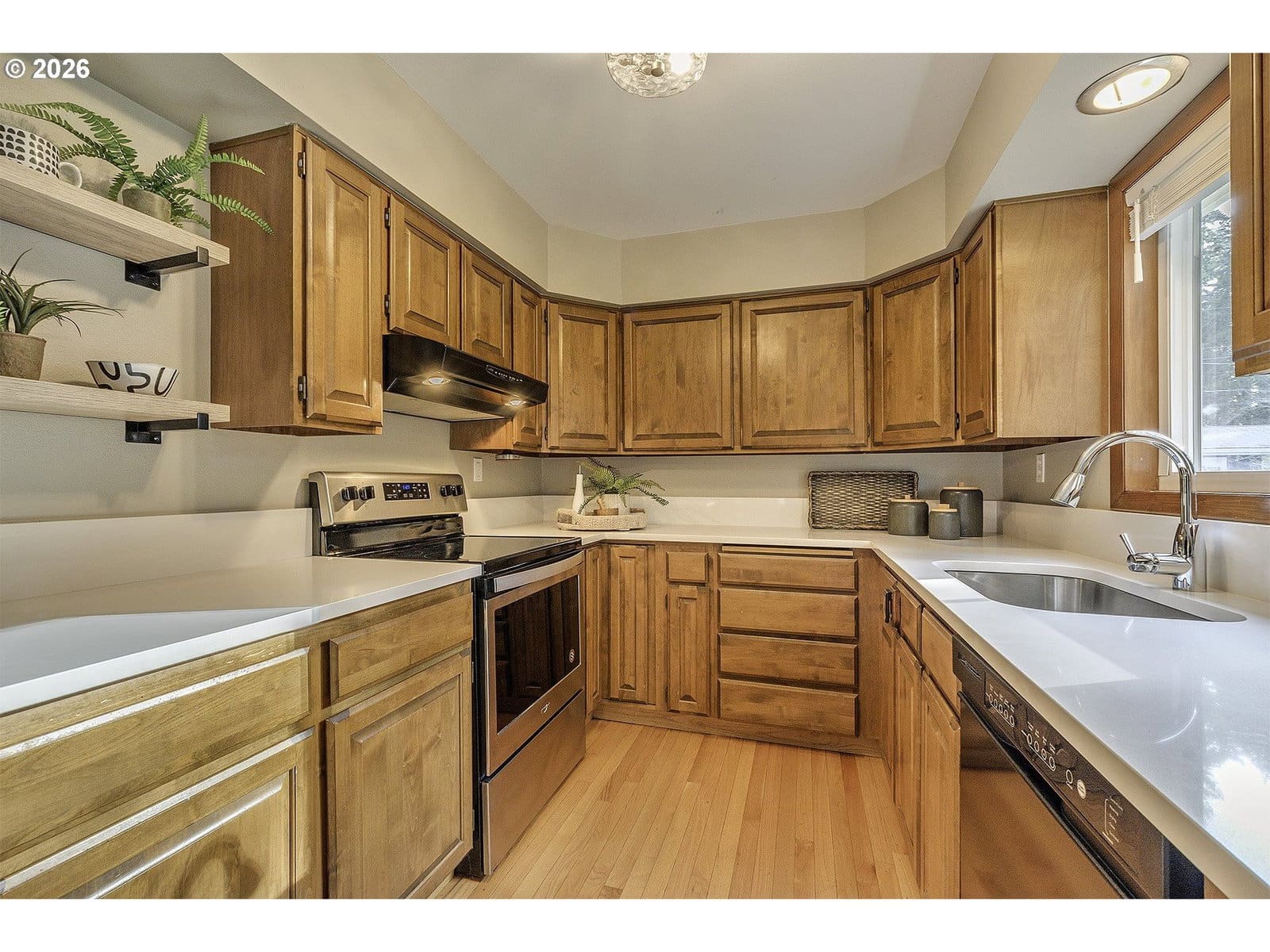 Located on .28 acre corner lot, this charming one-level has lots of possibilities! Attached 3-car tandem garage + huge approx 1,600sf attached shop. This home features a practical layout & comfortable living areas. Spacious living room w/frplc & beadboard opens to dining area w/slider. Kitchen has quartz countertop & refrigerator. Updated main bathroom w/quartz countertop, tiled tub surround & tiled floor. Laundry room has wall of built-in cabinets. Fenced backyard w/shop access & proom to relax, garden & enjoy the outdoors. 3-car tandem garage plus the spacious shop adds flexibility for more garage space, projects, storage, or hobbies & includes a workbench & shelves. RV Parking. Heat pump. Roof (approx. 10 yrs). Located near schools, community parks, Lake Grove Swim Park, shopping, dining, I-5 & 217 freeway access.